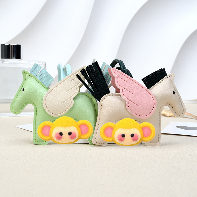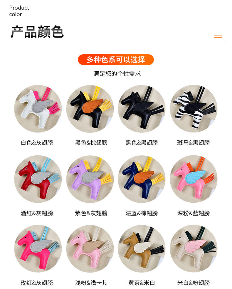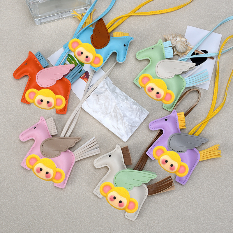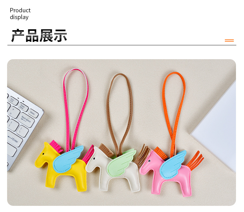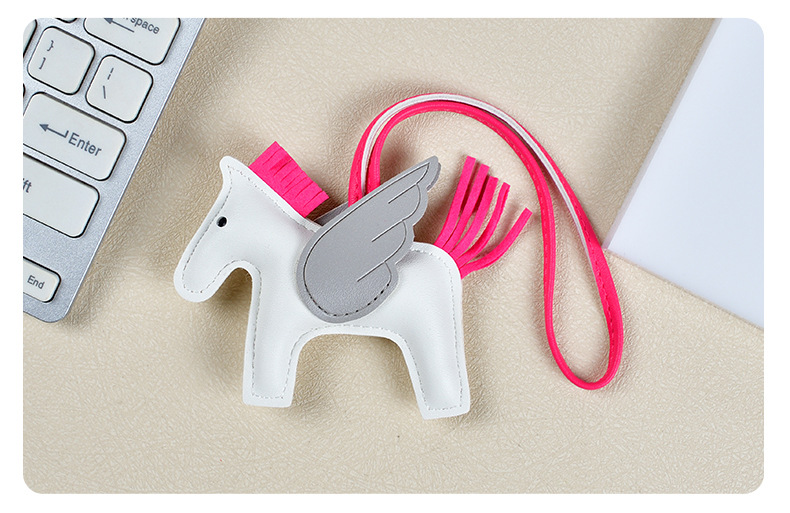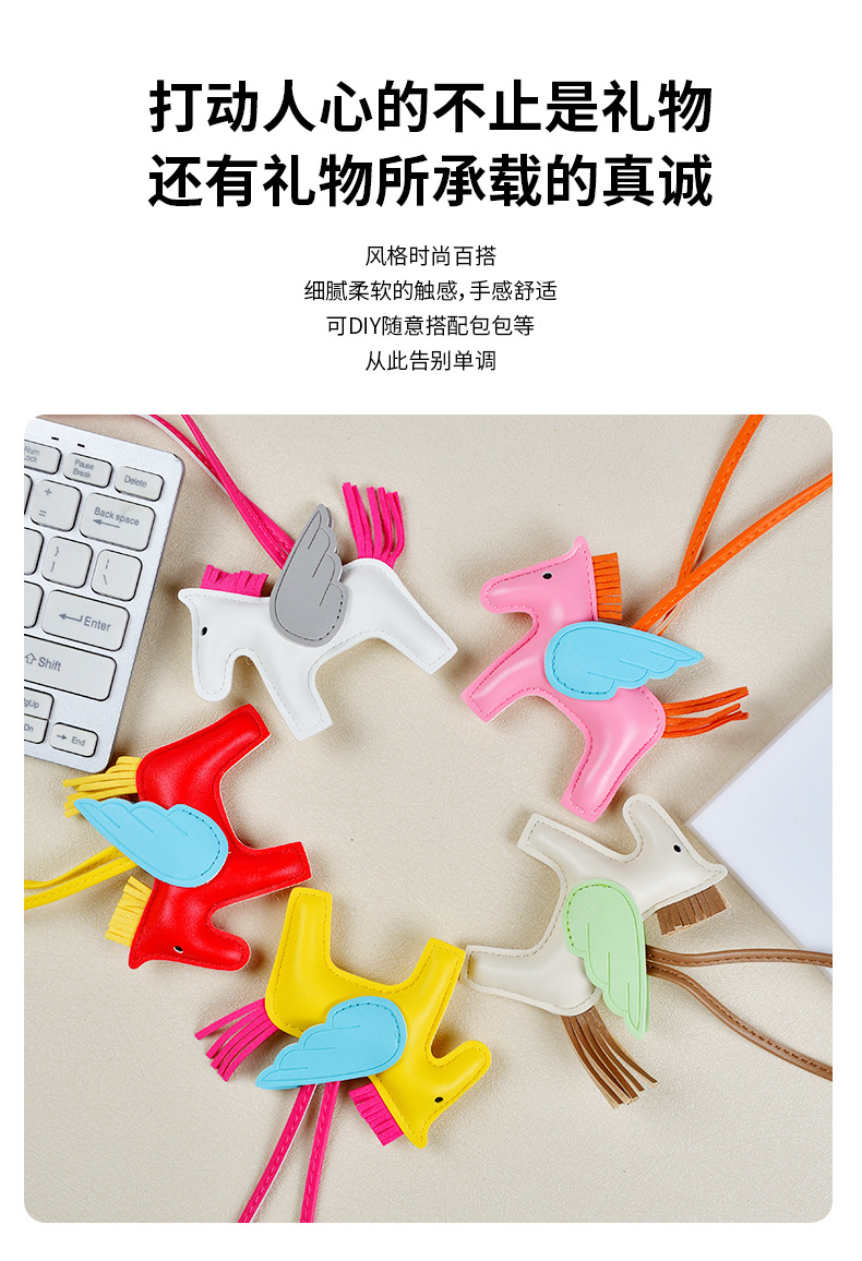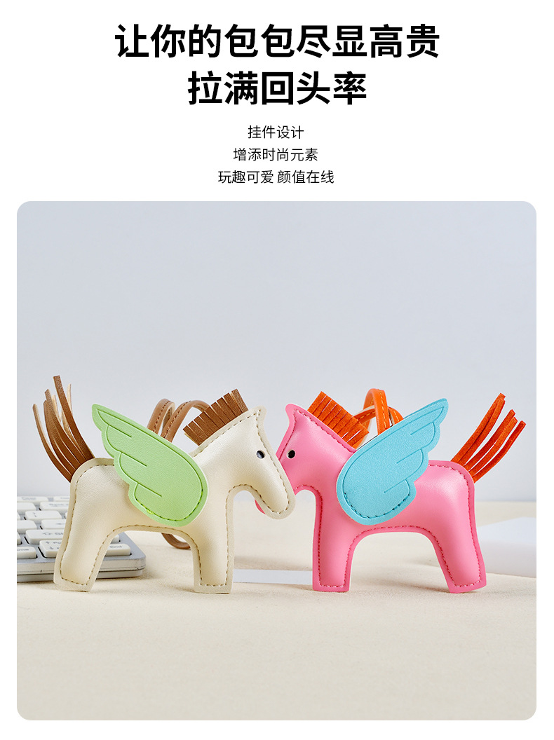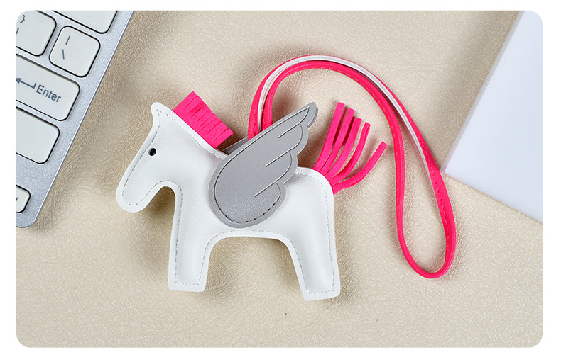 H家小飞马包包挂件可爱流苏撞色卡通挂饰汽车钥匙扣皮革小马吊饰