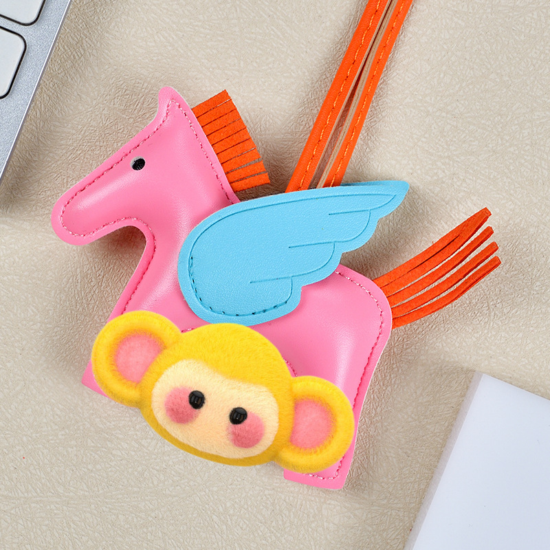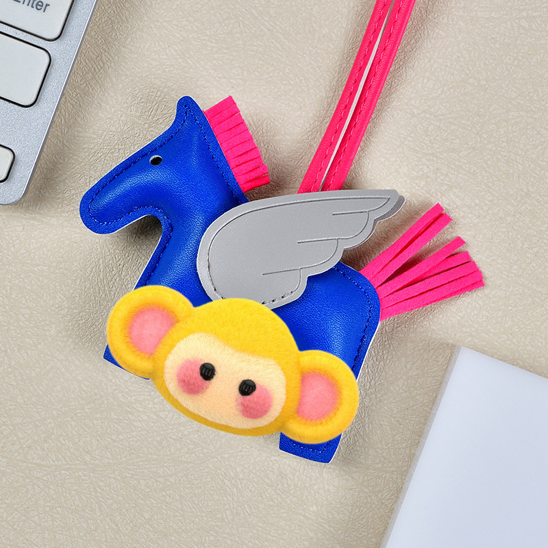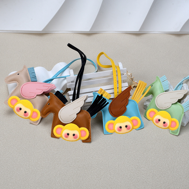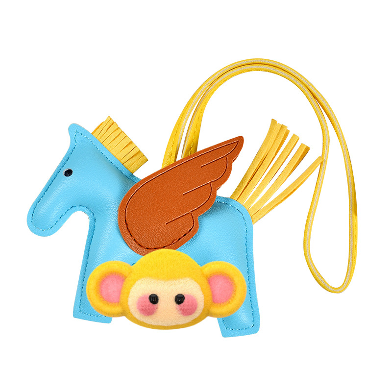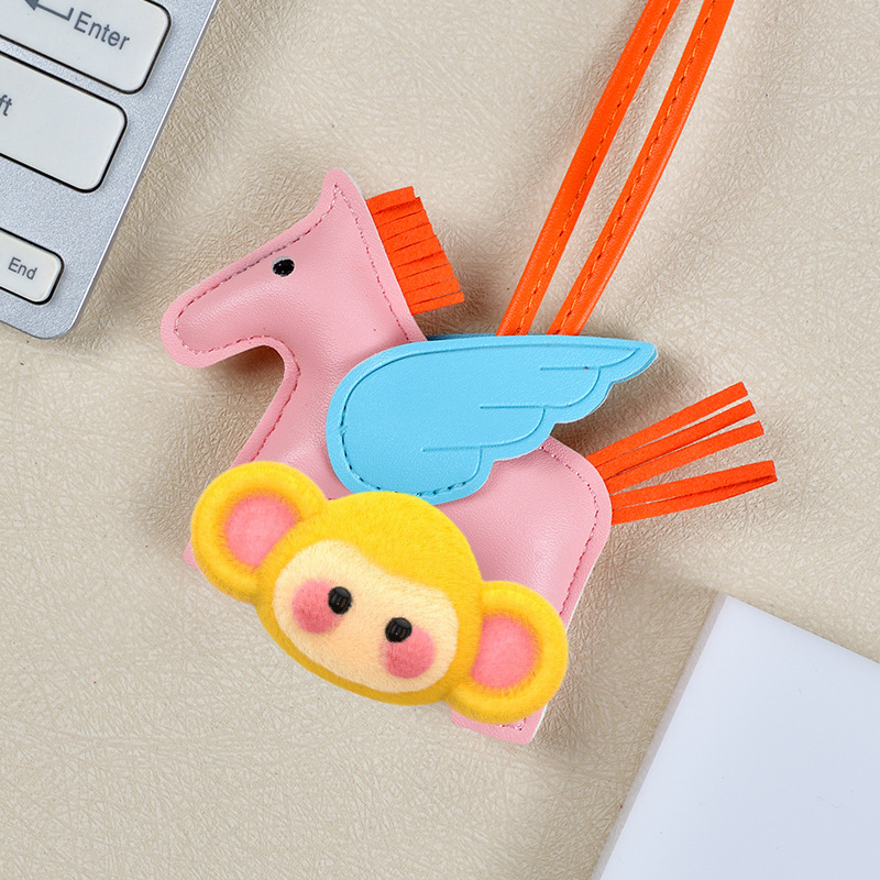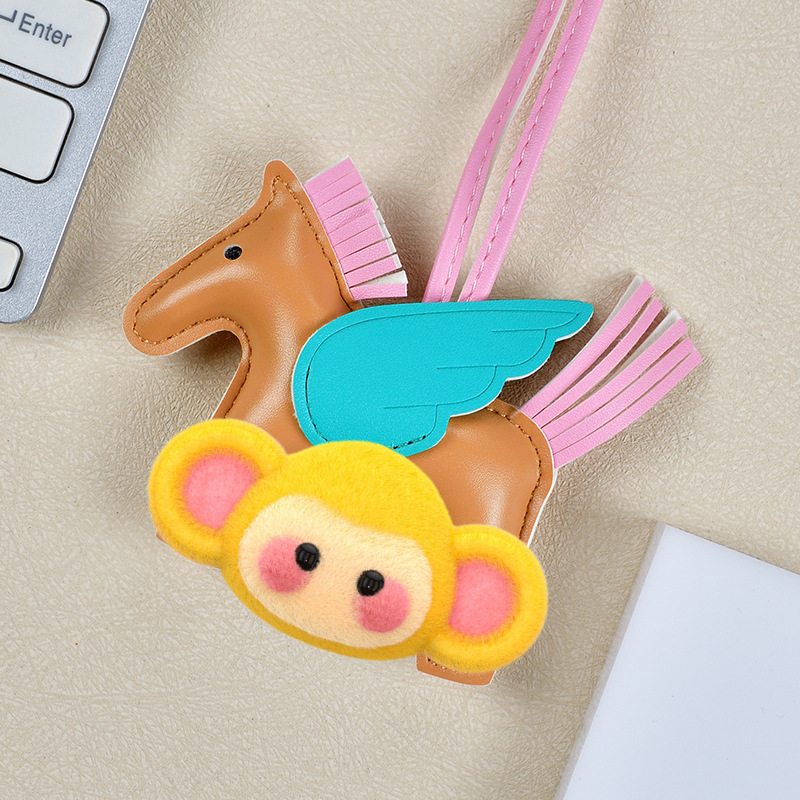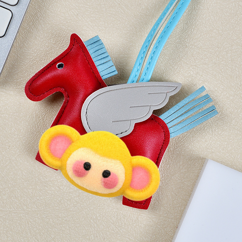 H家小飞马包包挂件可爱流苏撞色卡通挂饰汽车钥匙扣皮革小马吊饰