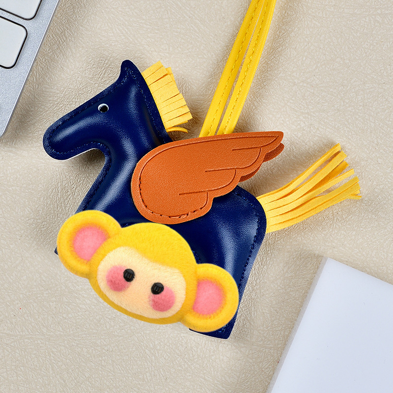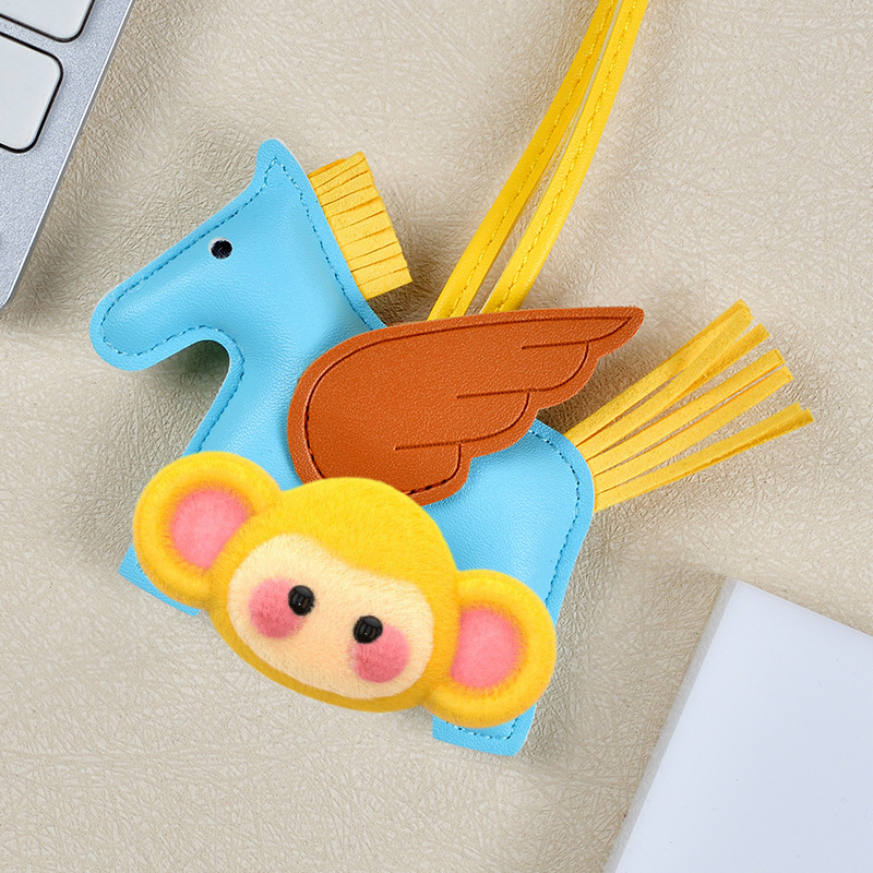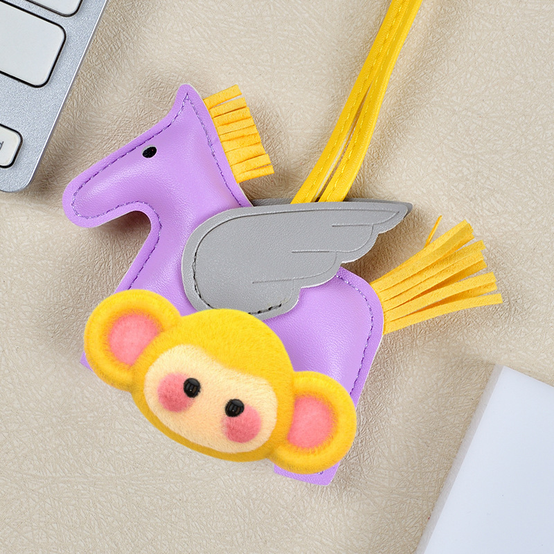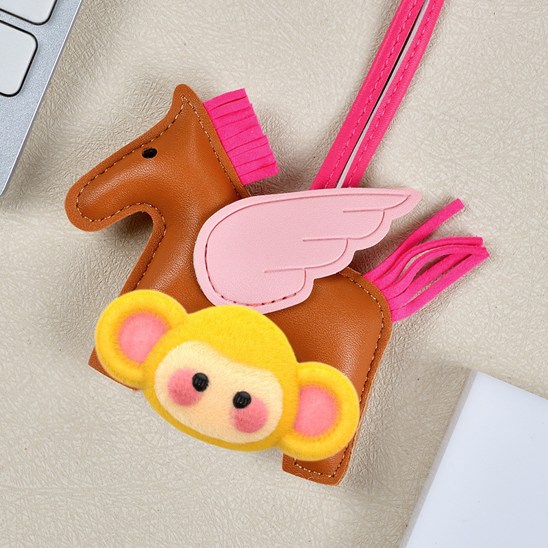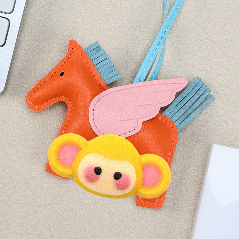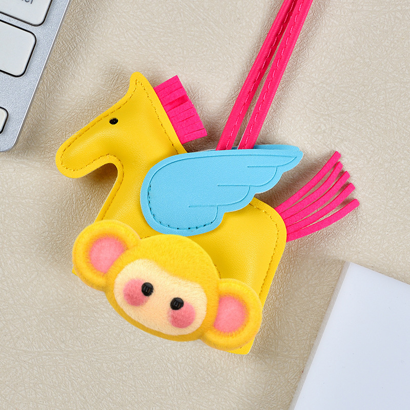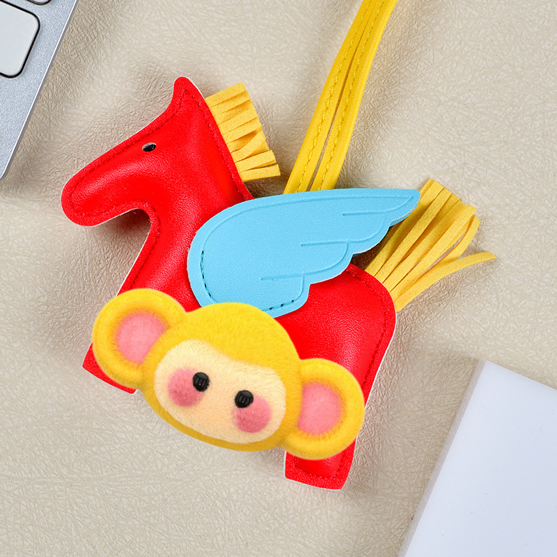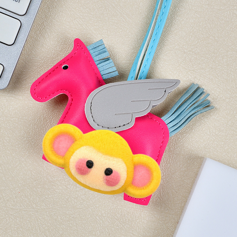 H家小飞马包包挂件可爱流苏撞色卡通挂饰汽车钥匙扣皮革小马吊饰