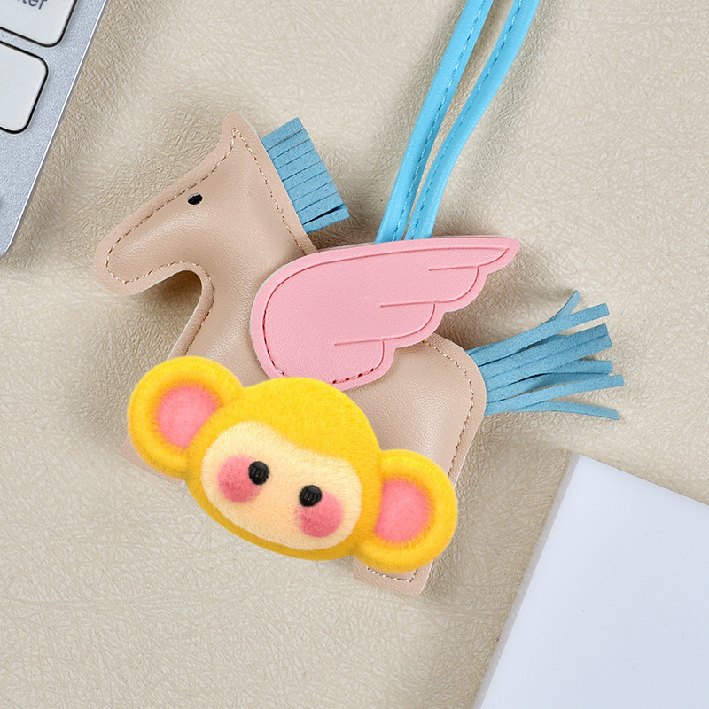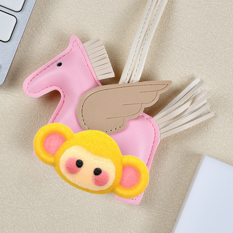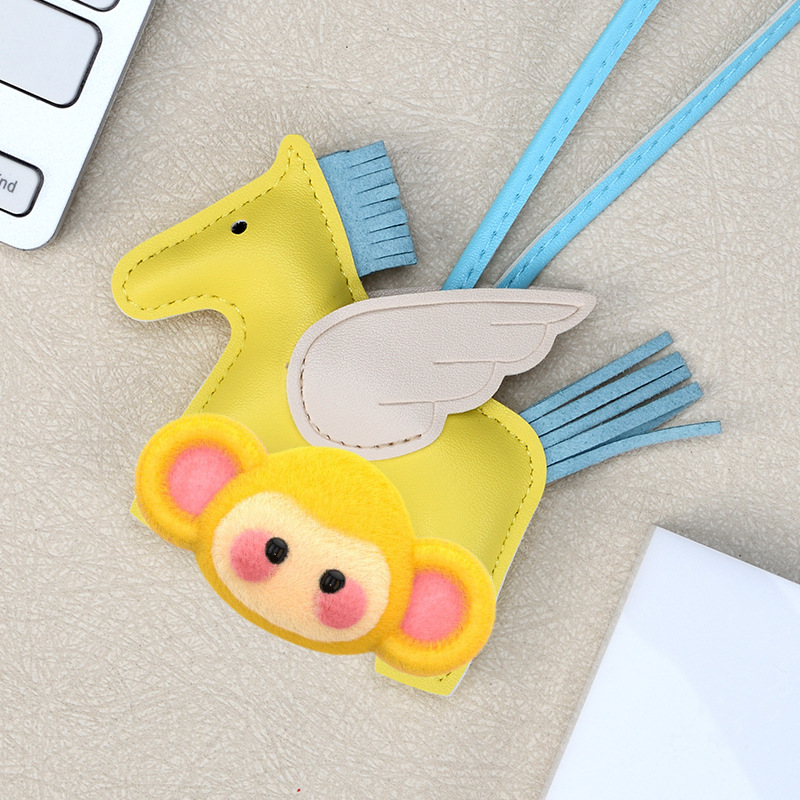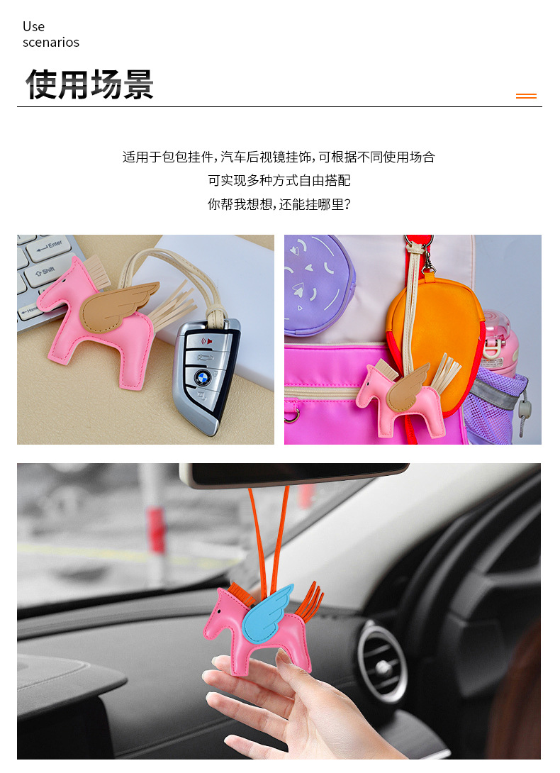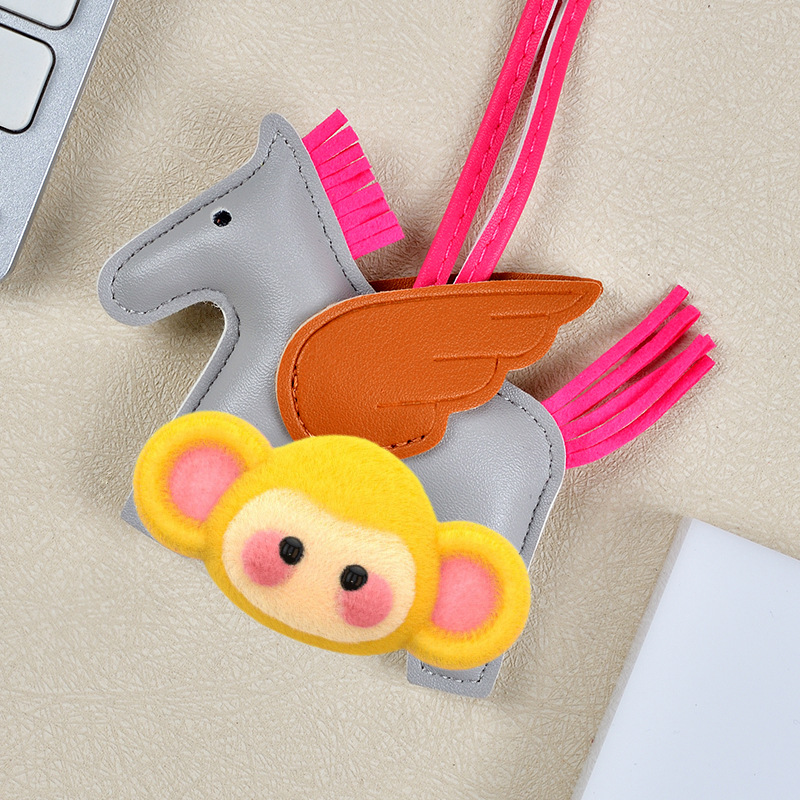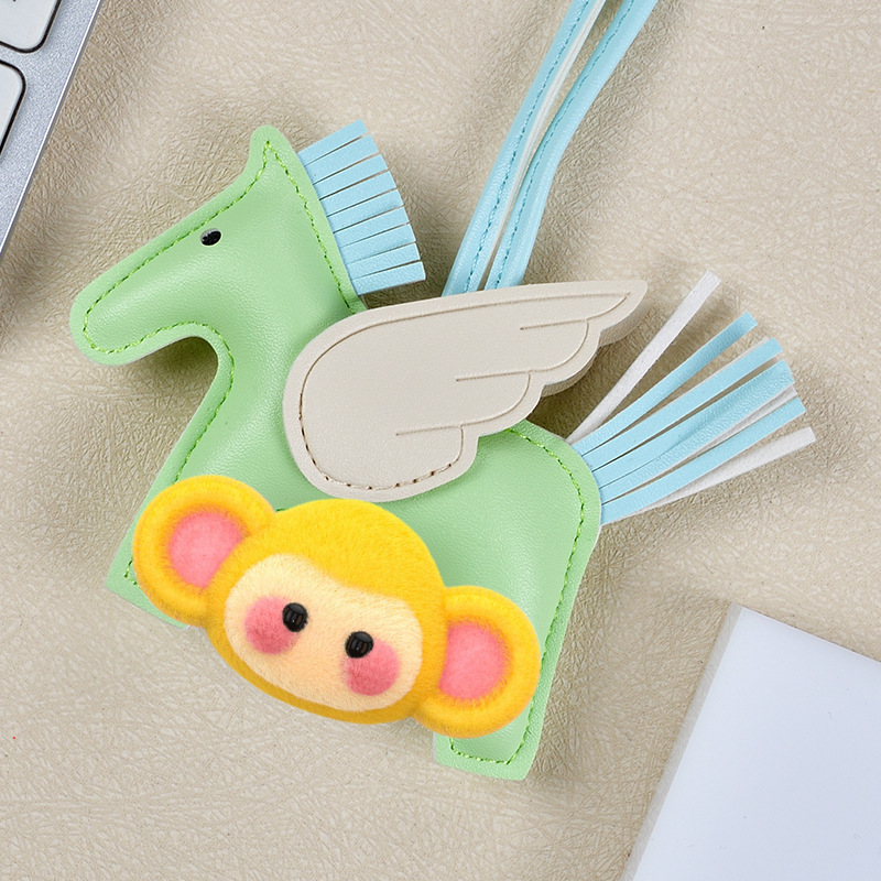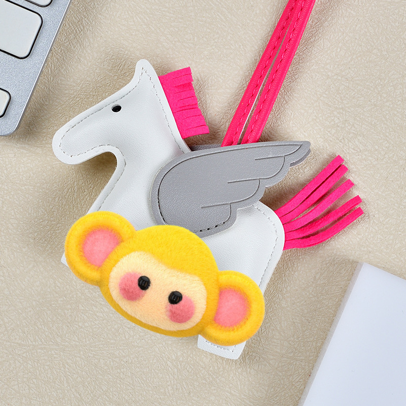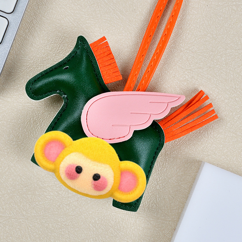 H家小飞马包包挂件可爱流苏撞色卡通挂饰汽车钥匙扣皮革小马吊饰