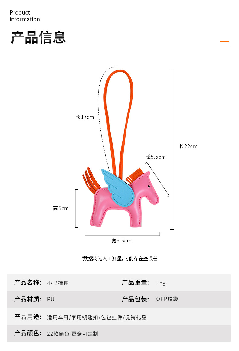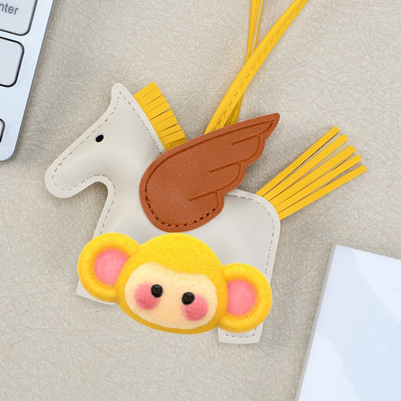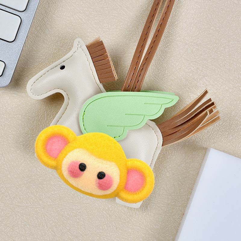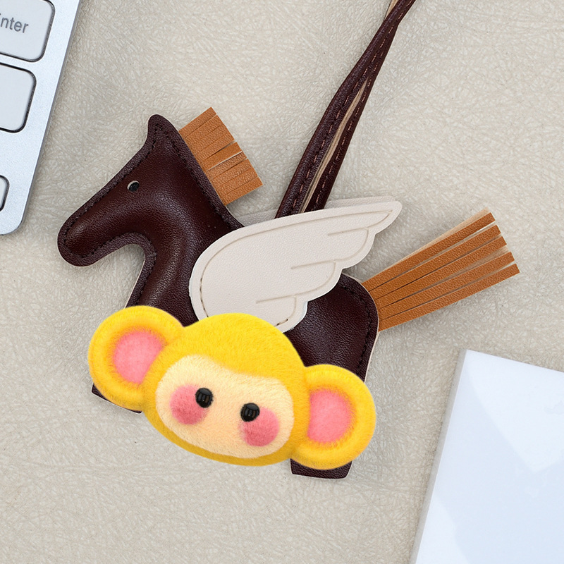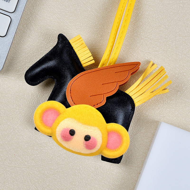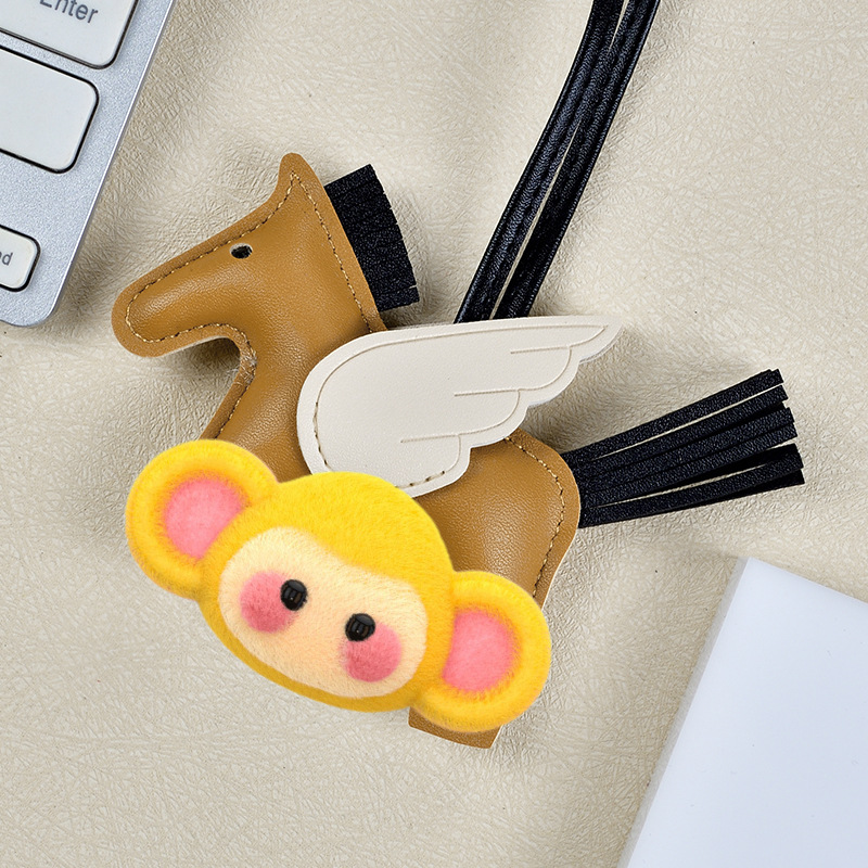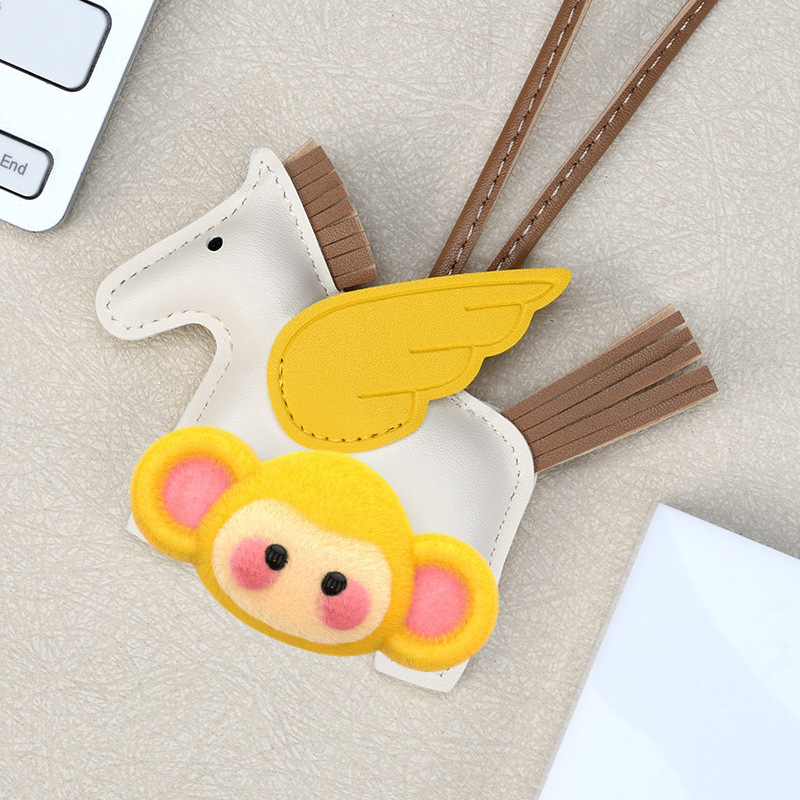 H家小飞马包包挂件可爱流苏撞色卡通挂饰汽车钥匙扣皮革小马吊饰