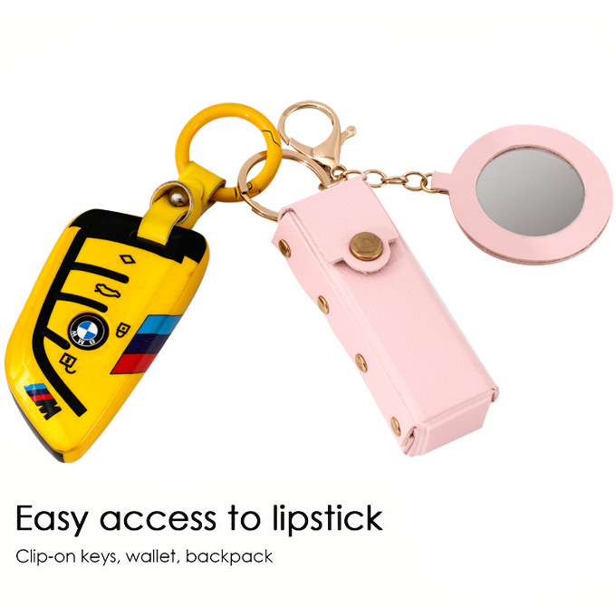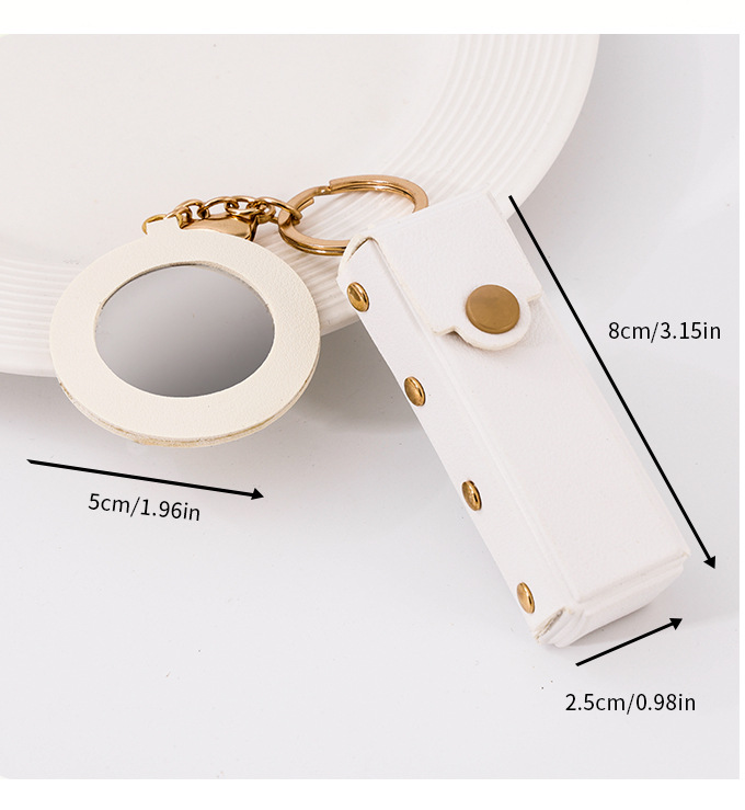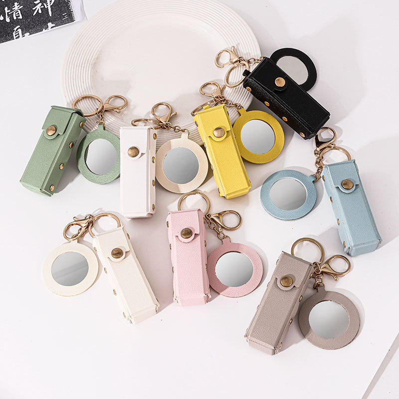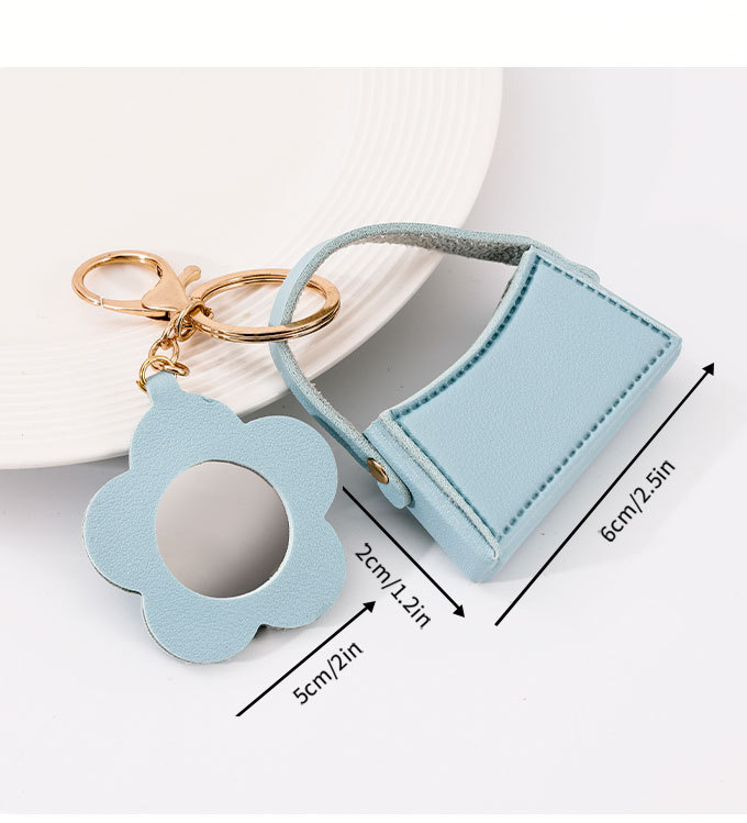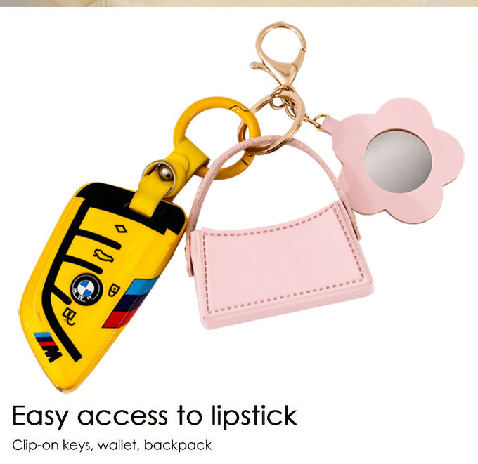 跨境零钱口红包创意镜子钥匙扣小挂件PU皮革汽车包包挂饰配件现货