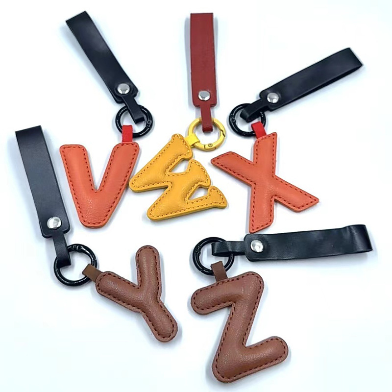 PU皮革挂件跨境外贸亚马逊批发ins风配饰网红26字母钥匙扣包挂件