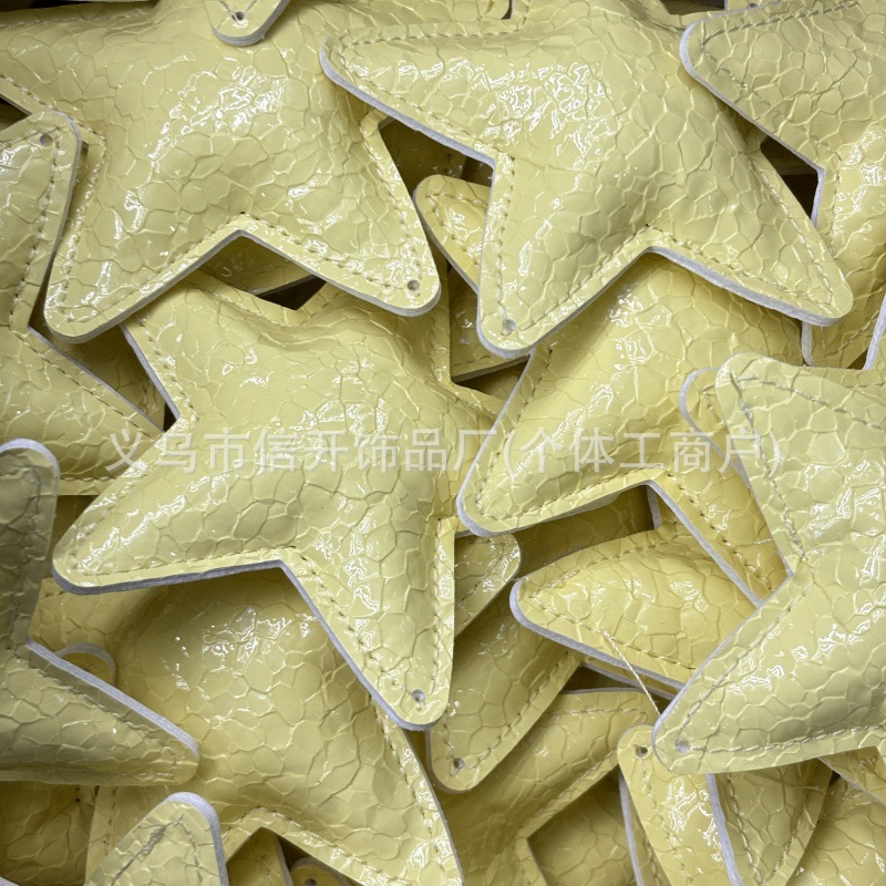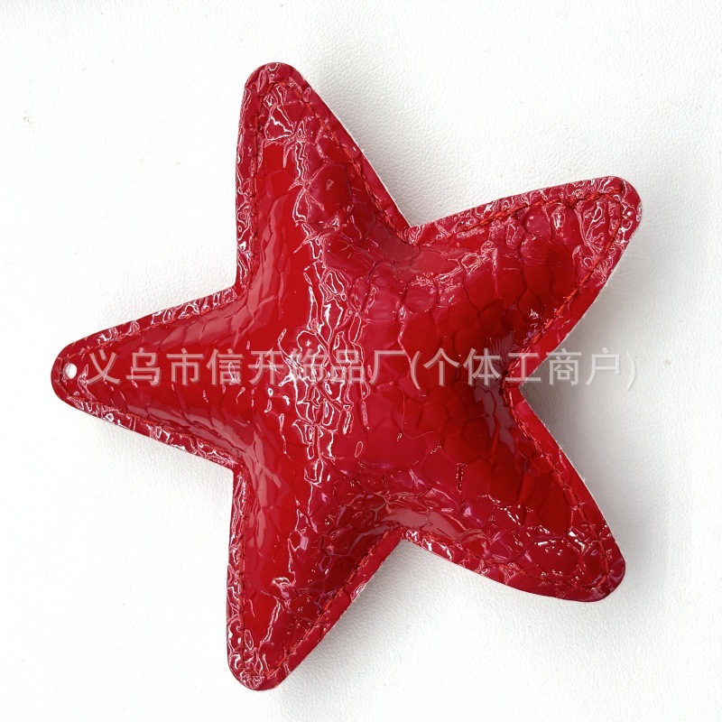 带孔新色亮面褶皱皮质五角星 手工diy自制包挂车钥匙链手机链挂件