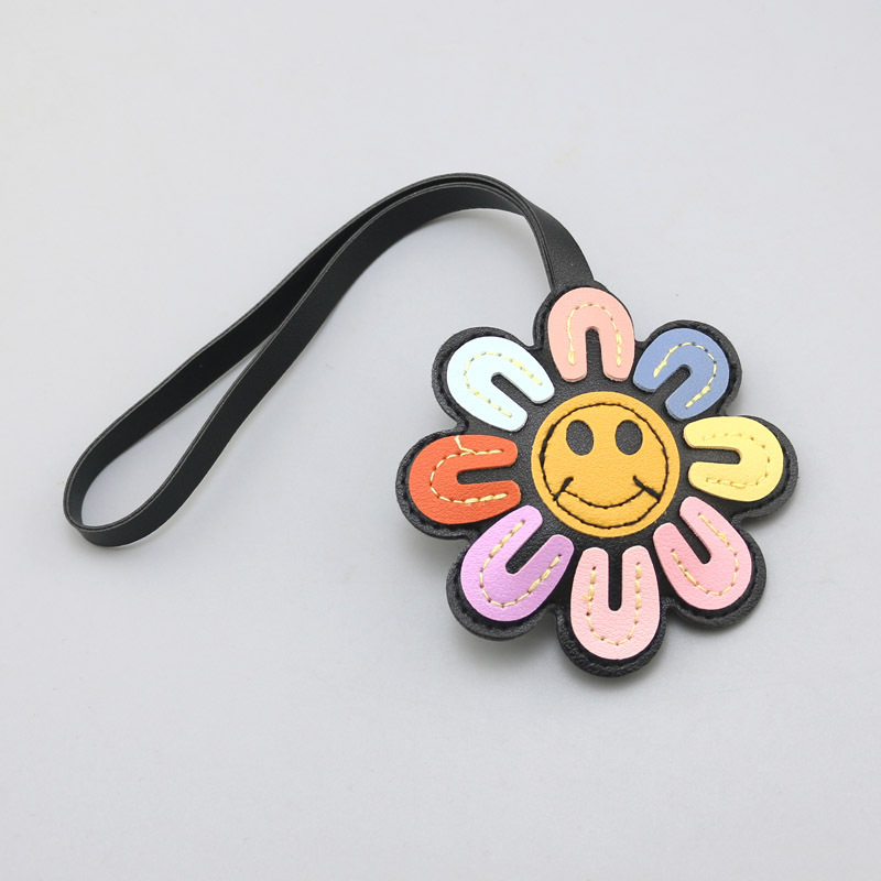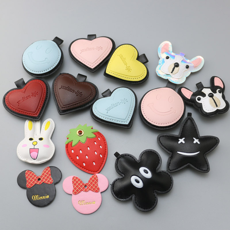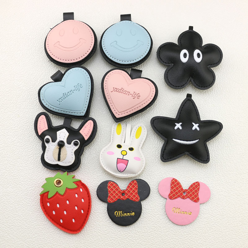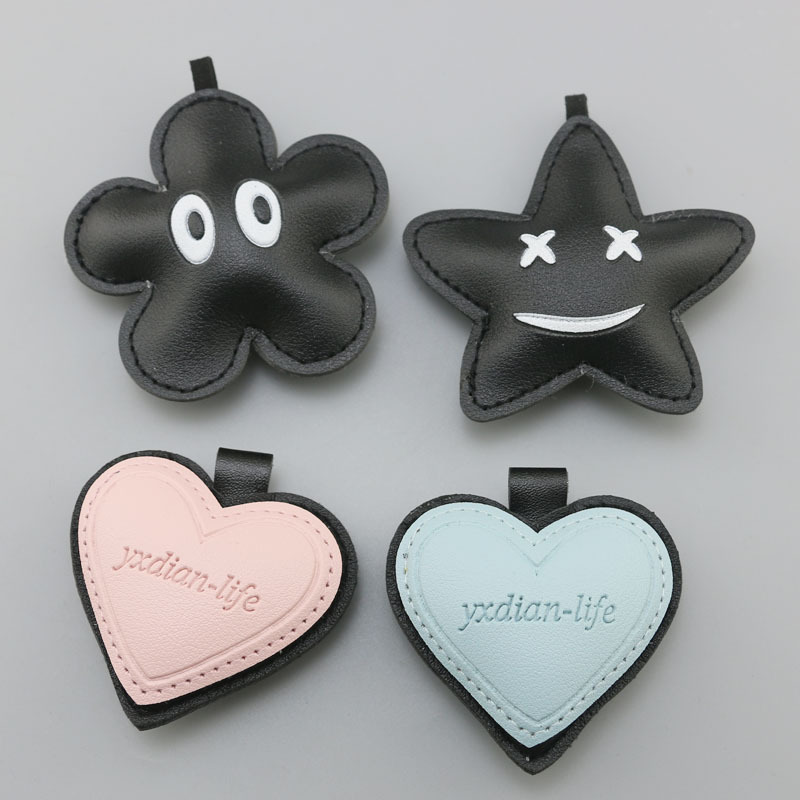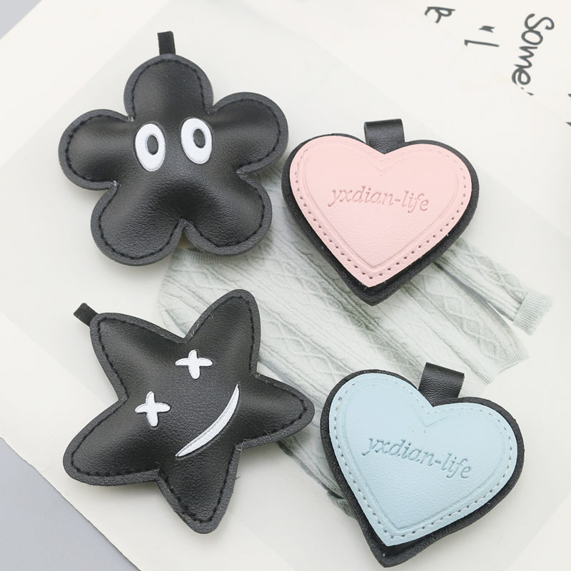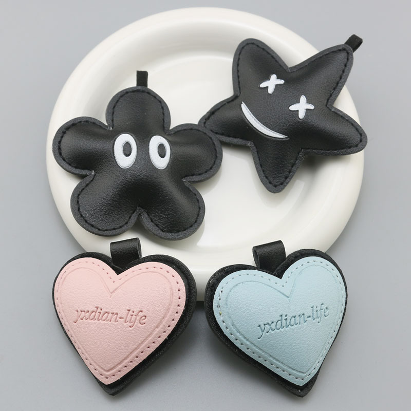 DIY饰品配件 皮革立体黑色花朵五角星爱心兔子挂件钥匙扣包包挂饰