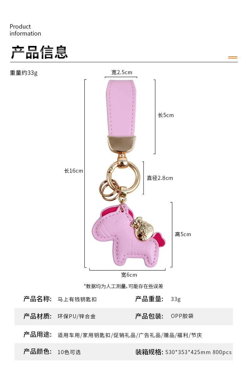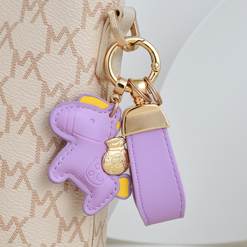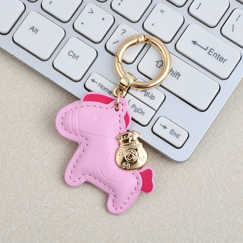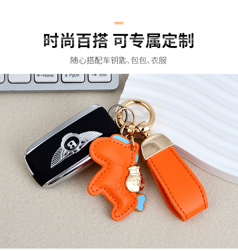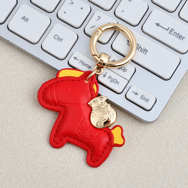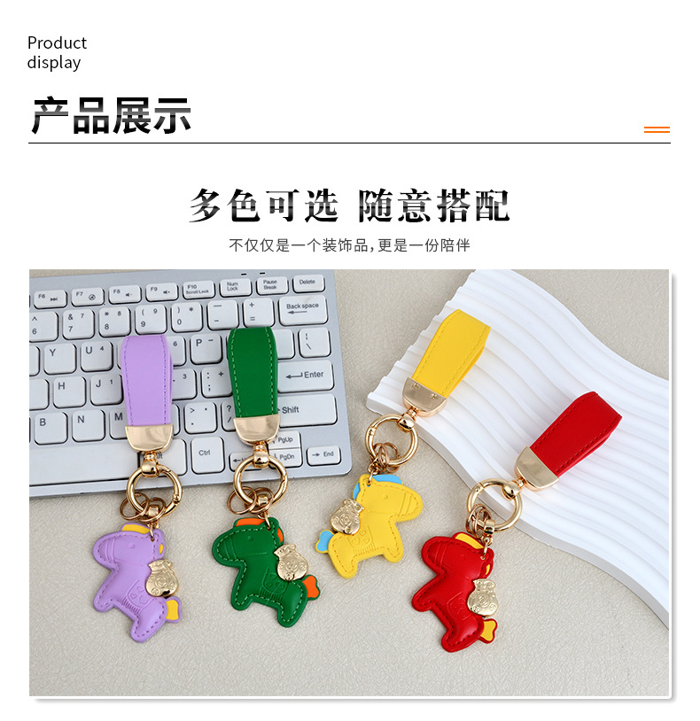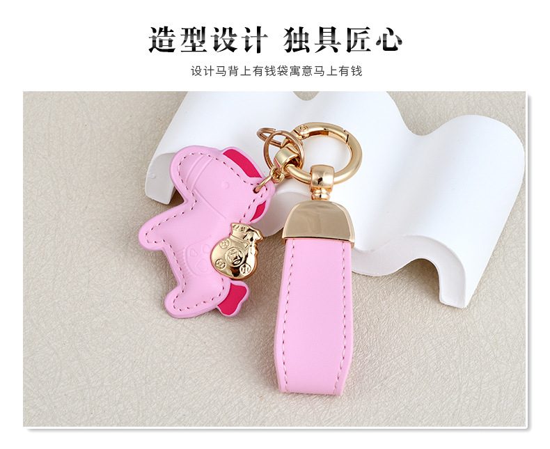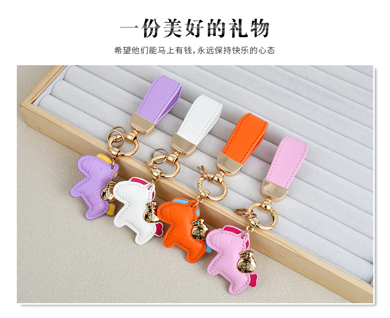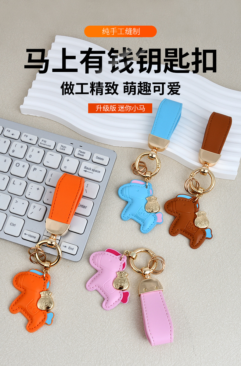 马上有钱小马钥匙扣挂件情侣皮革包包挂饰电动摩托车钥匙挂件