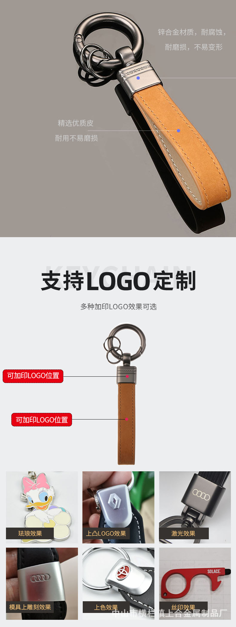 金属汽车钥匙扣小挂件可印logo五金商务小礼品皮革钥匙扣配件