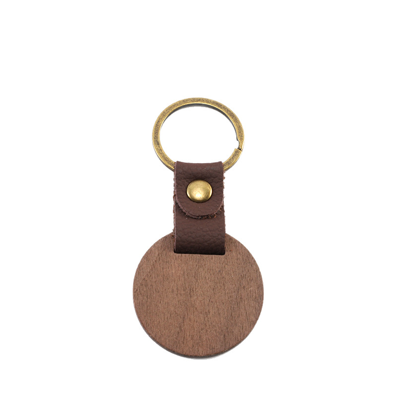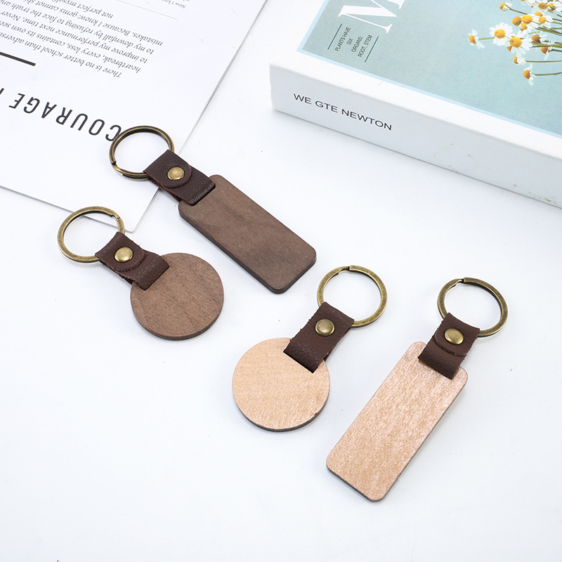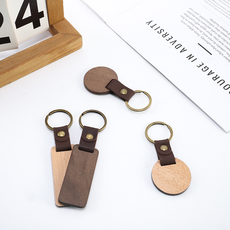 真皮榉木黑胡桃木质钥匙扣挂件创意diy钥匙扣 节生日礼物激光刻字