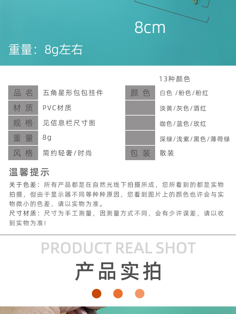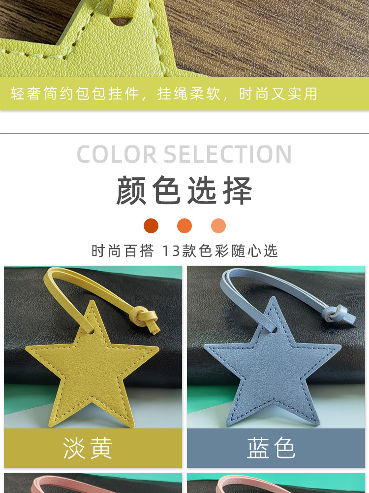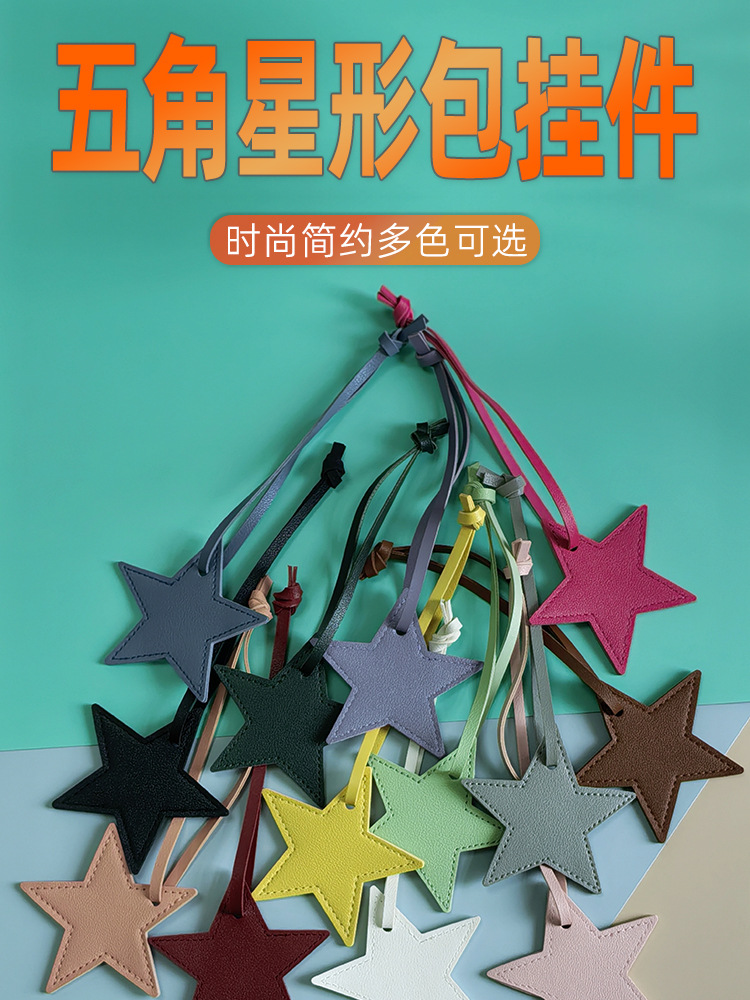 现货跨境热销pu五角星形包包挂件简约星星皮革包包挂饰钥匙扣挂件
