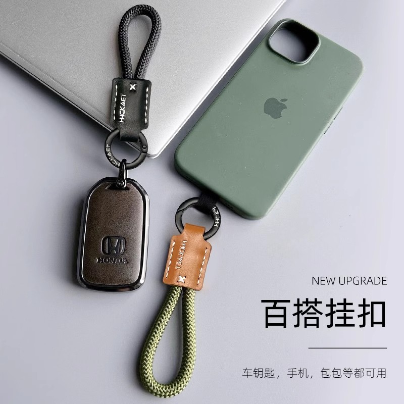 牛皮编织绳钥匙扣挂件高品质汽车钥匙链圈环男女士手绳书包挂饰