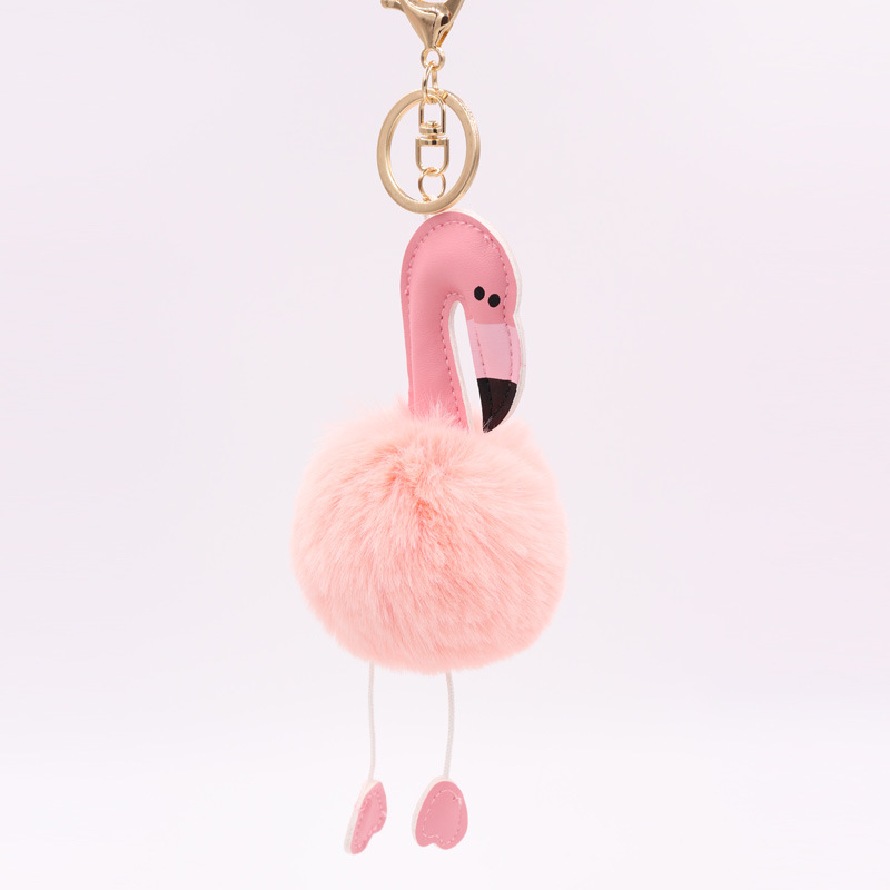 创意PU火烈鸟毛球钥匙扣挂件 女士皮草包包挂件汽车钥匙扣批发