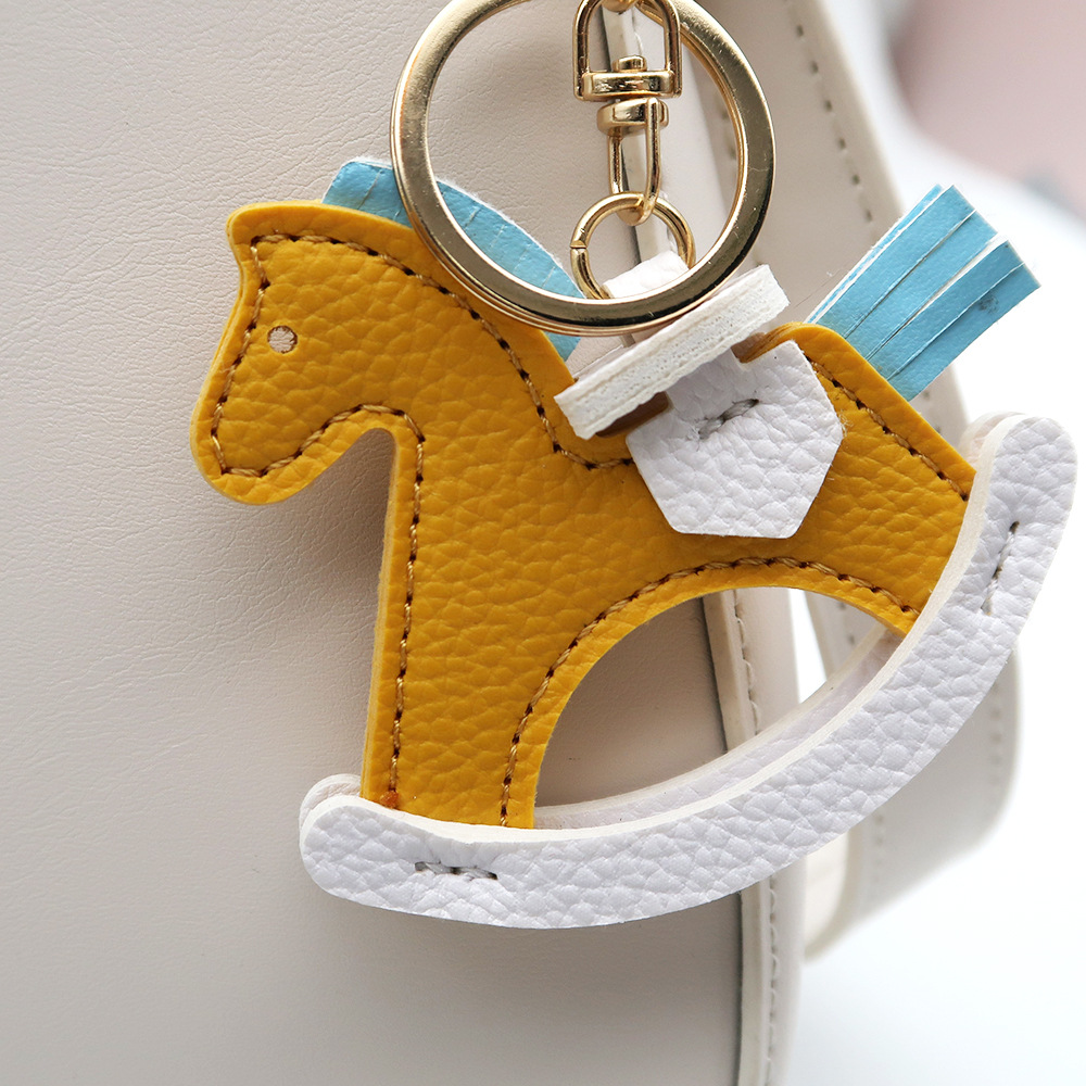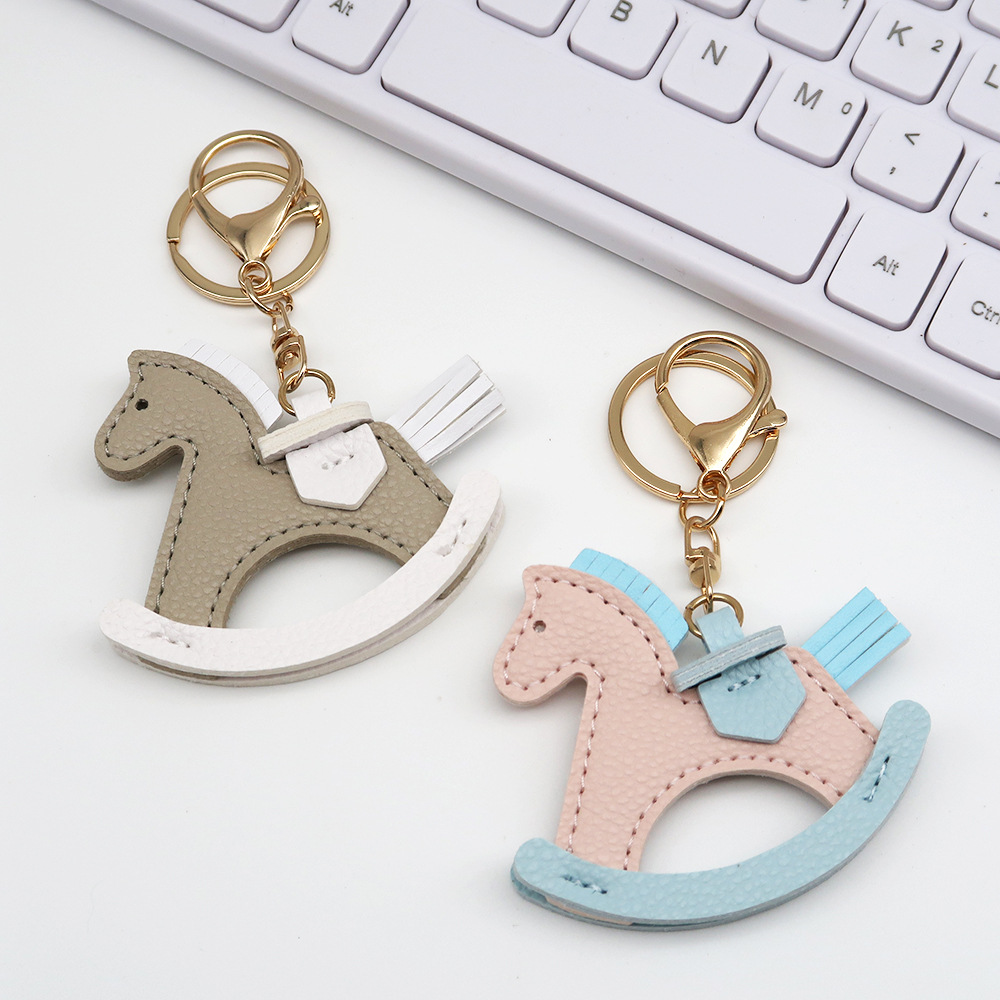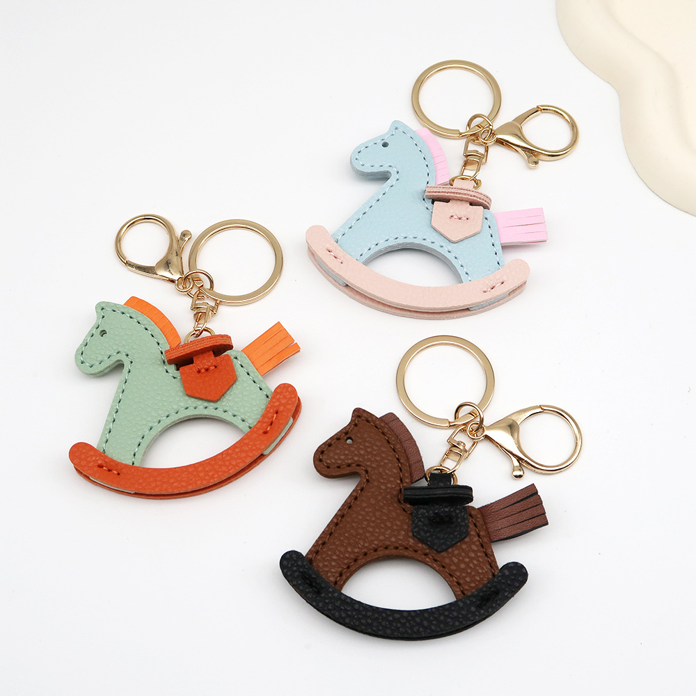 抖音热销小马挂件包包挂饰皮质摇摇马钥匙扣配饰卡通小木马钥匙链