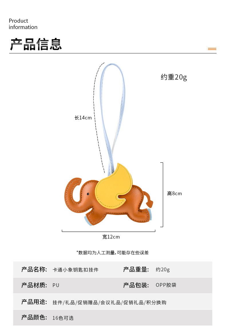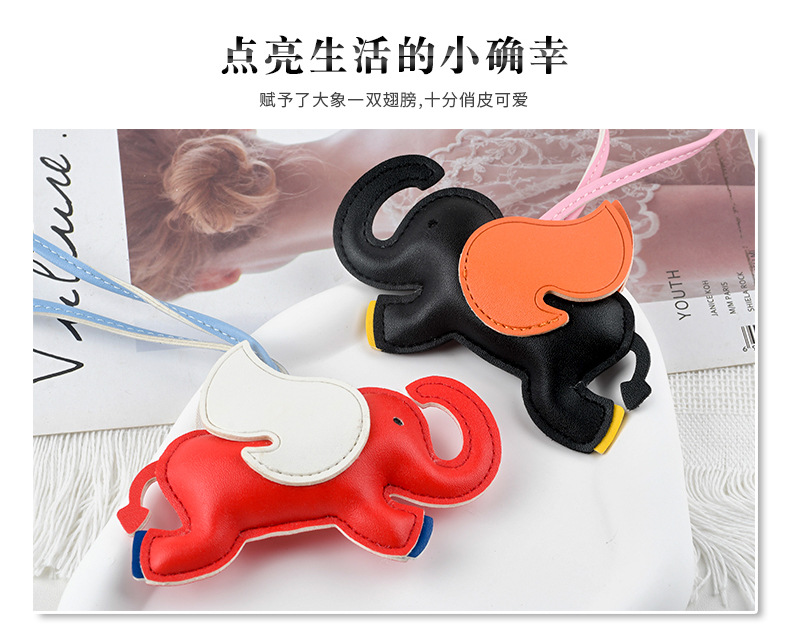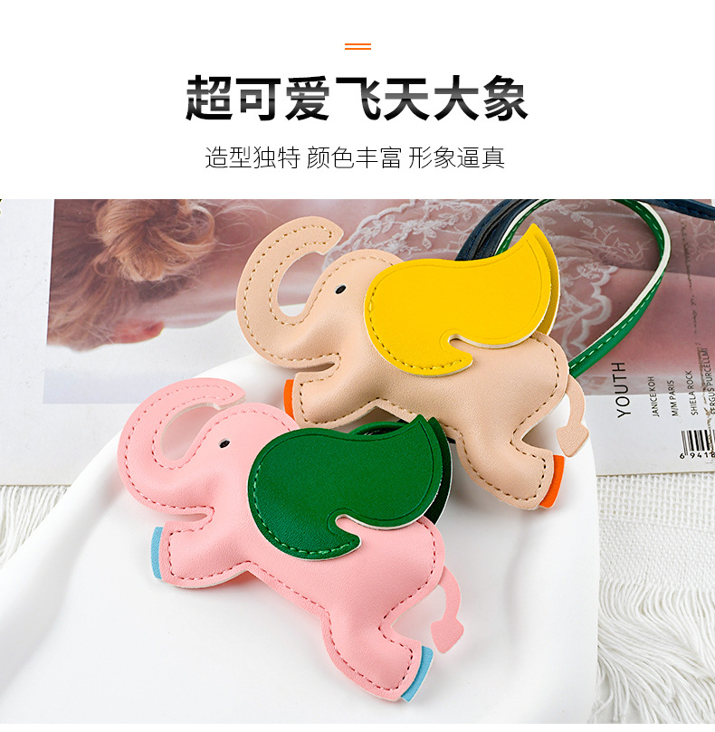 卡通皮革小飞象包包挂件充棉大象PU动物挂饰汽车钥匙扣菜篮子吊饰