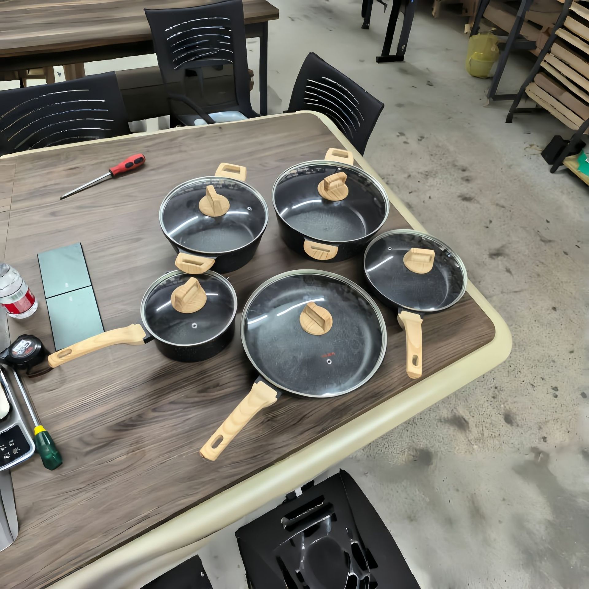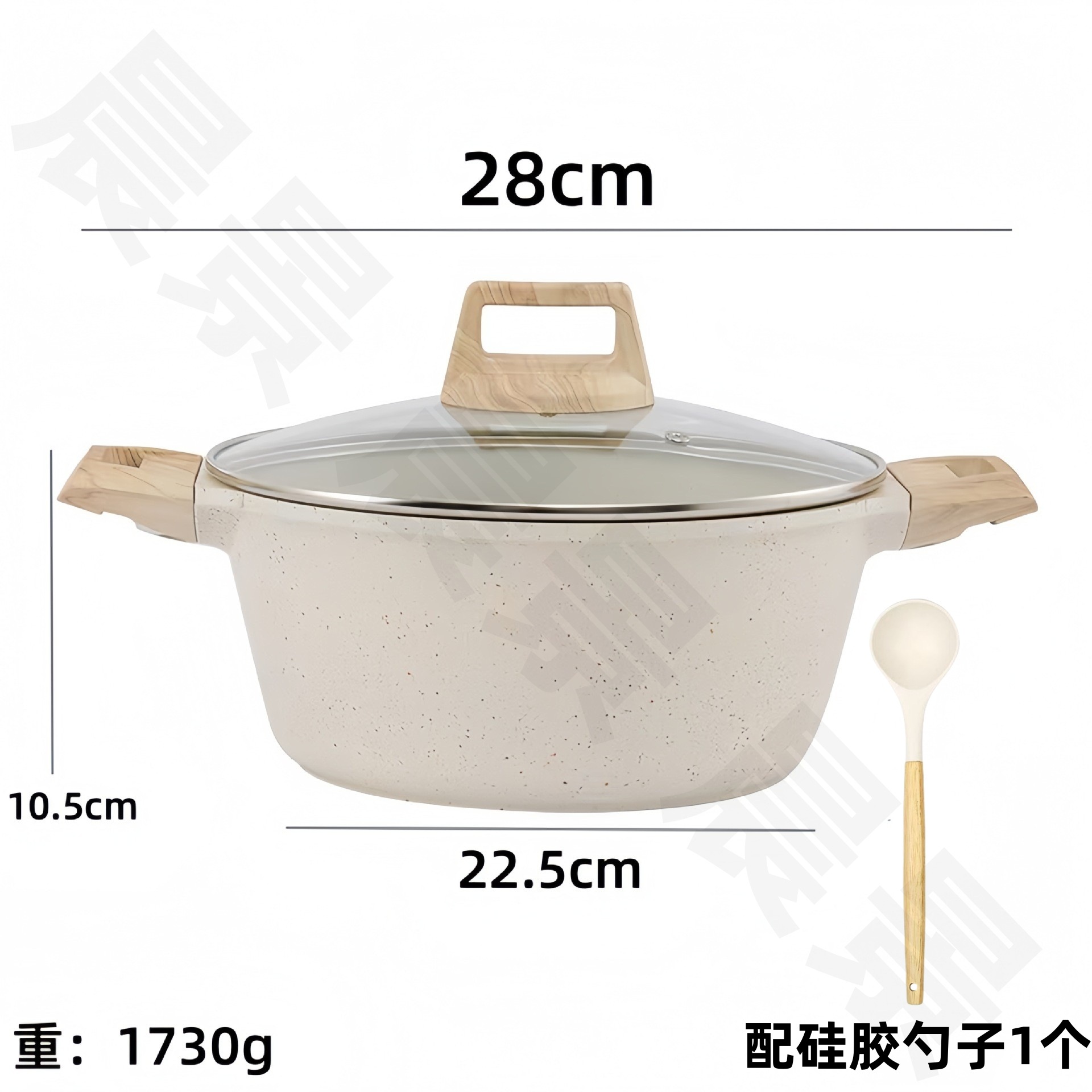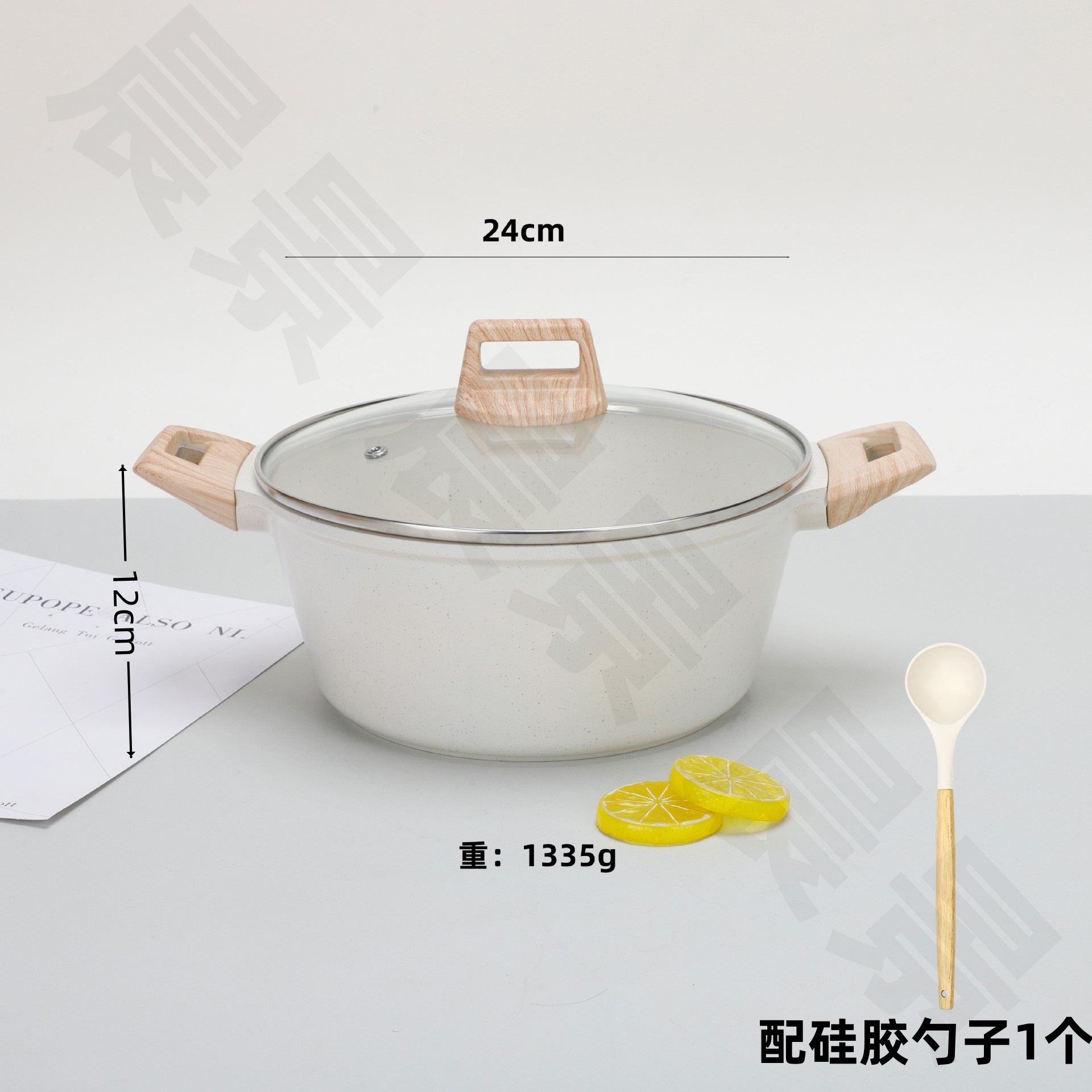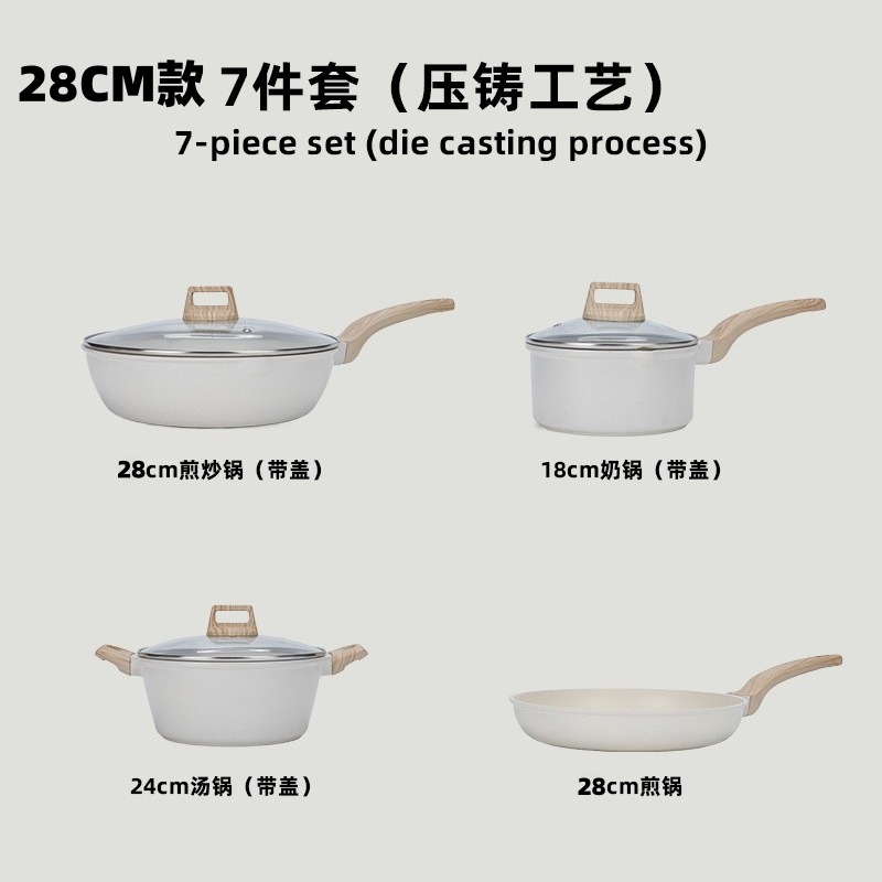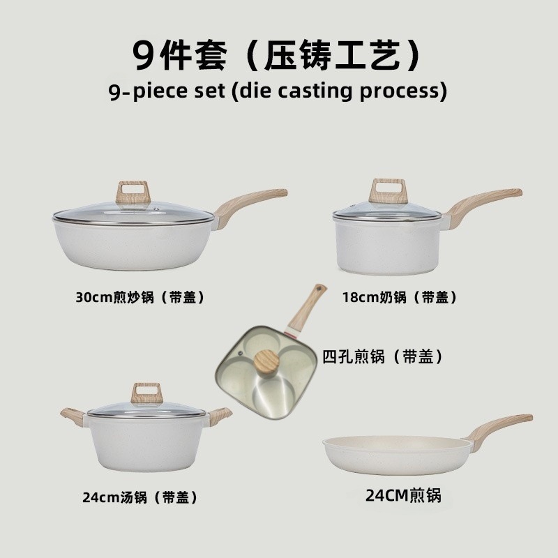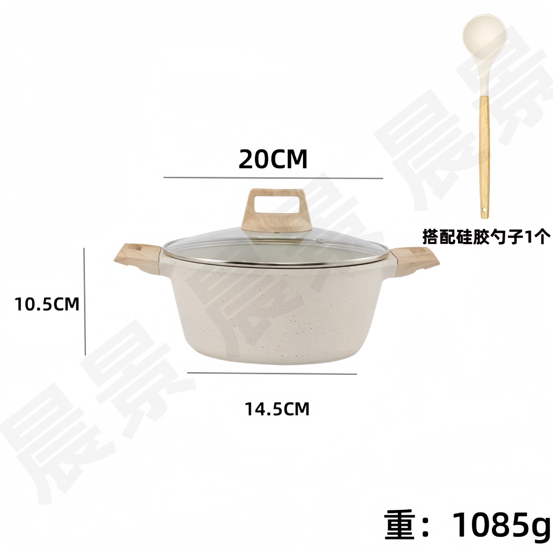 跨境锅具套组花岗岩家用三件套麦饭石五件套不粘锅厨房炒锅汤锅