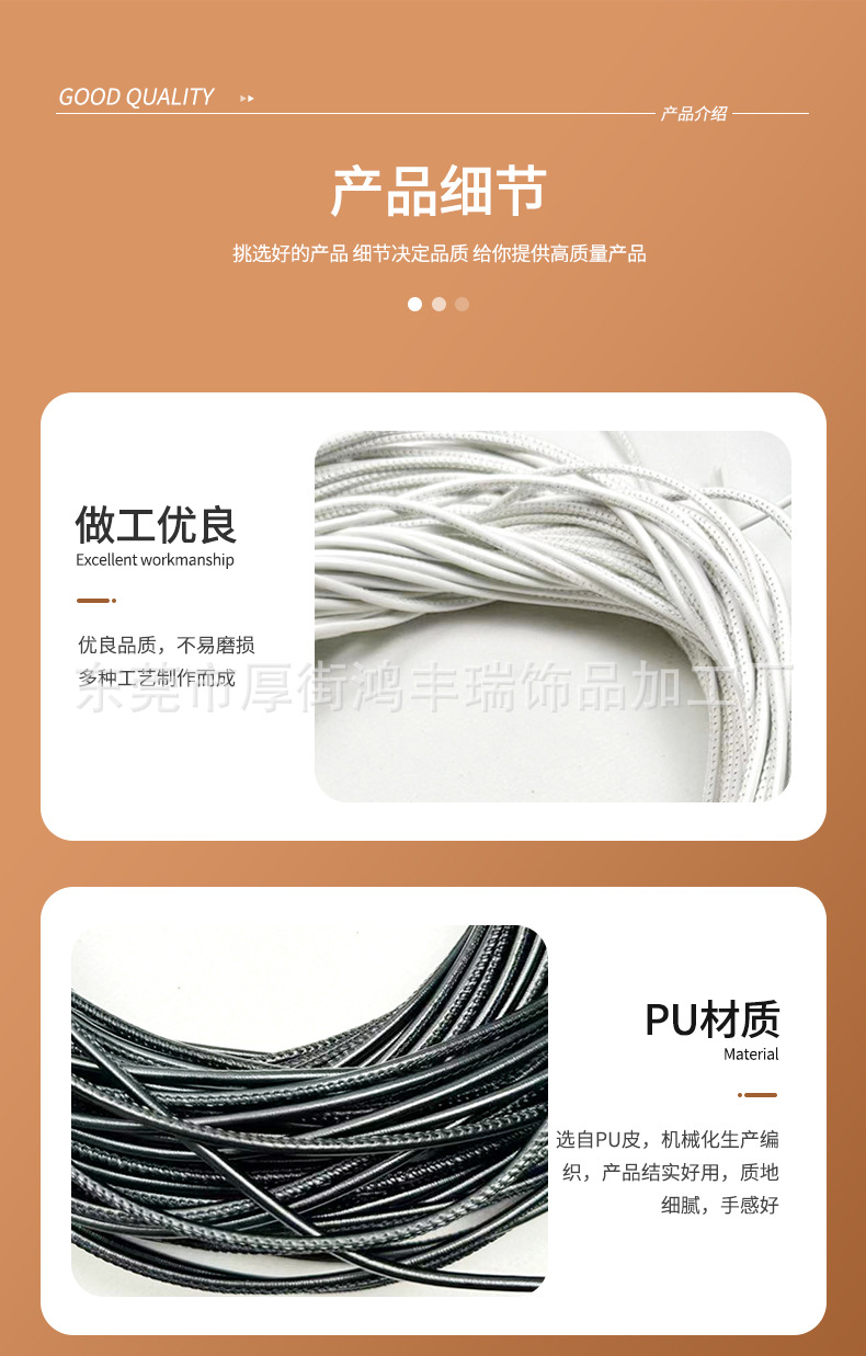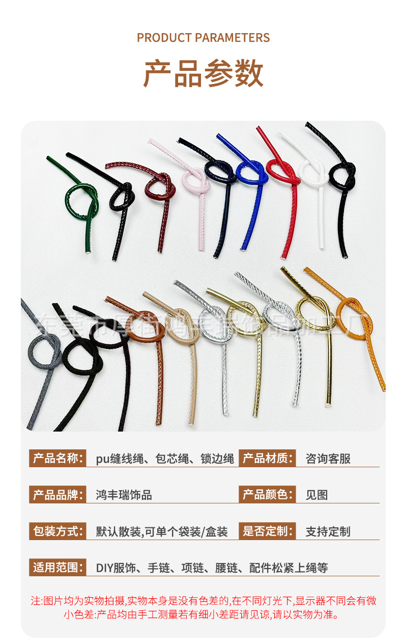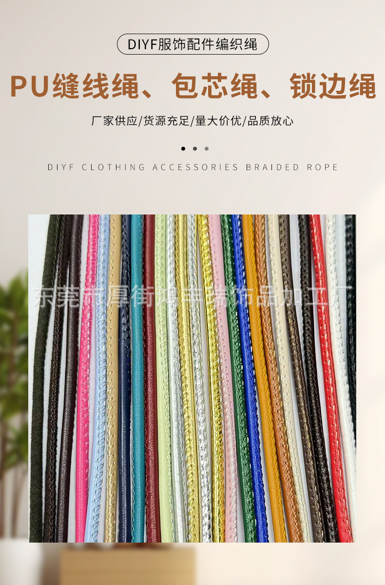 pu缝线绳包芯绳锁边绳挂绳绳带diy配件绳子证件吊绳圆皮绳
