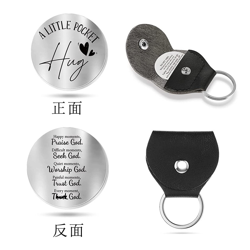 跨境不锈钢双面励志钥匙扣带PU皮革钥匙扣送家人朋友关系纪念品