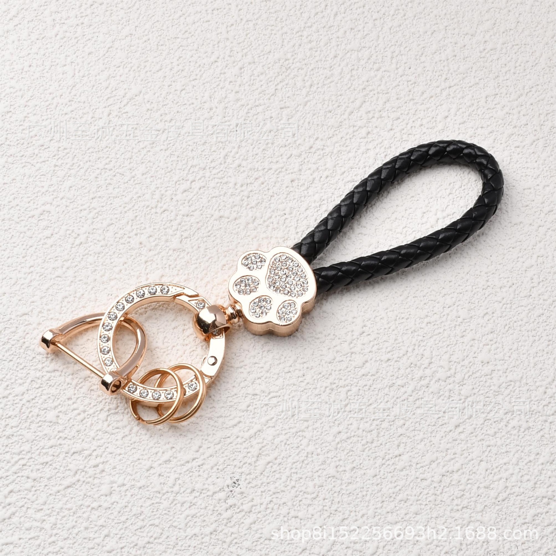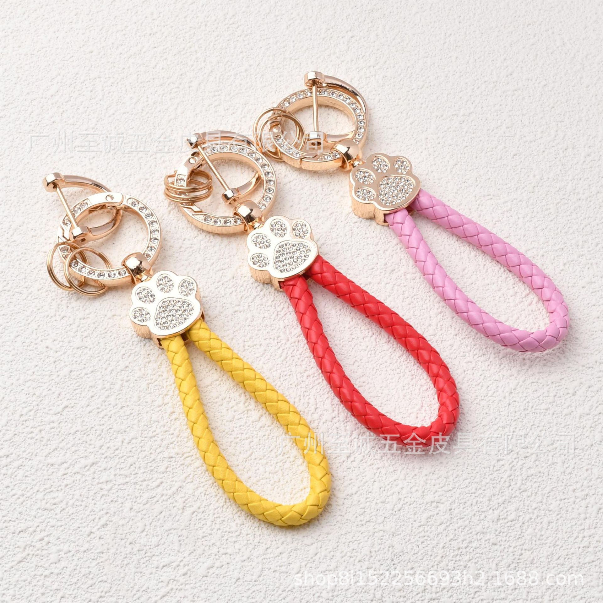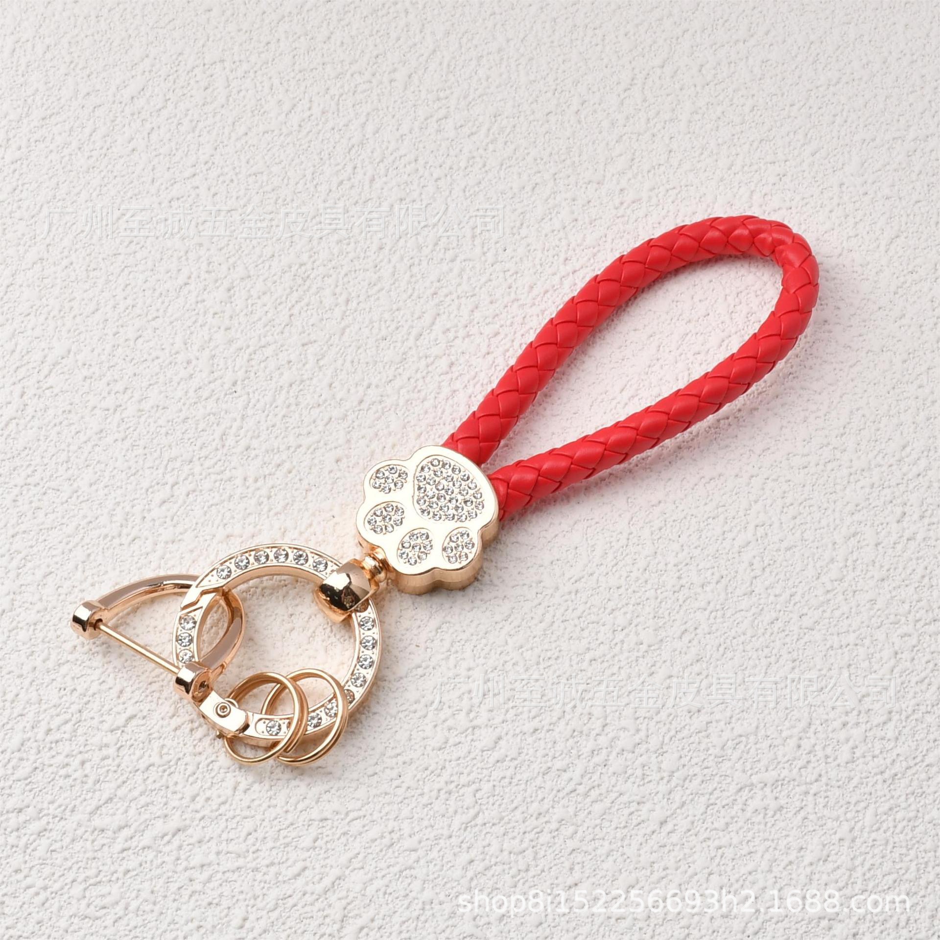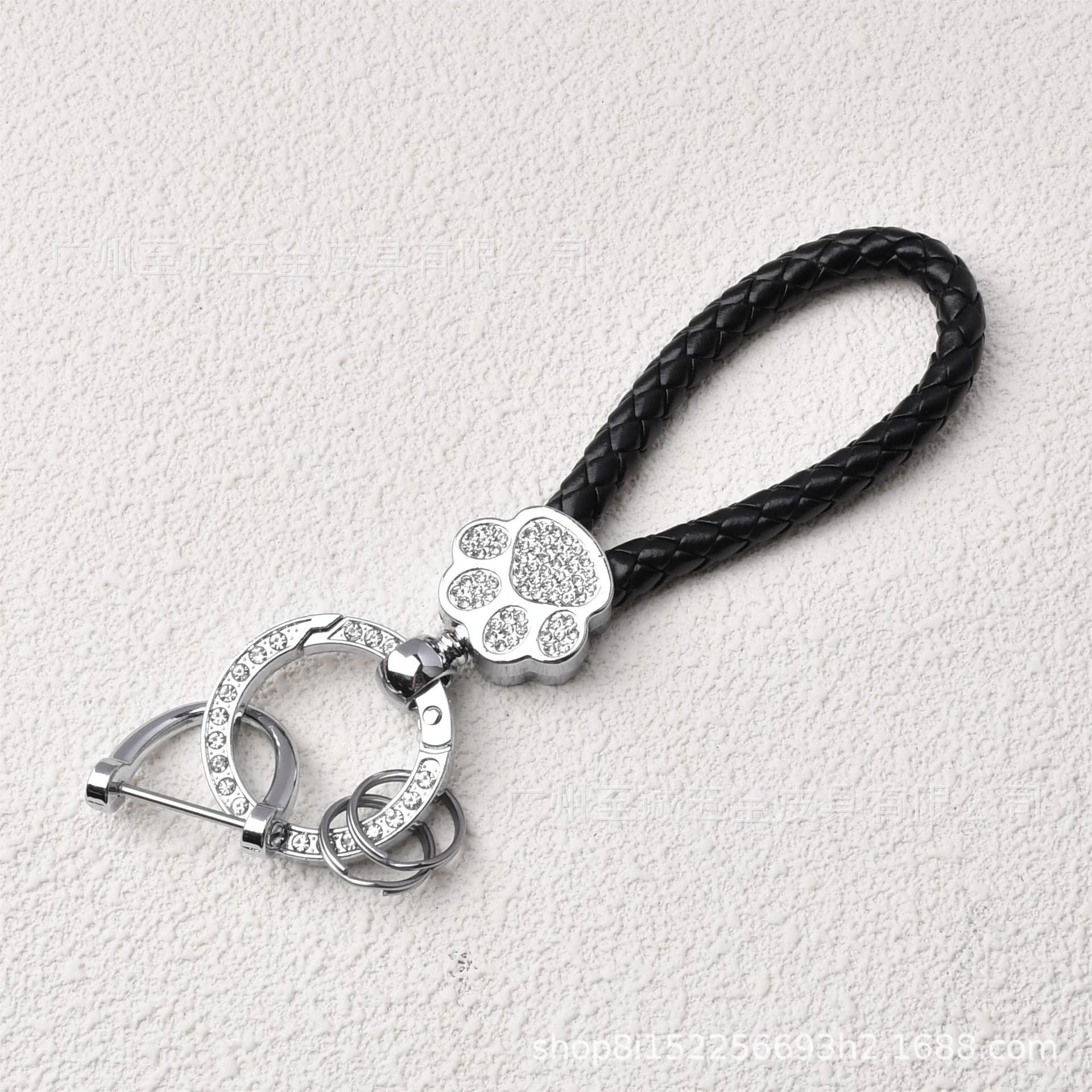 熊掌汽车钥匙扣镶钻猫爪钥匙绳编织挂饰金属钥匙饰品工厂直销