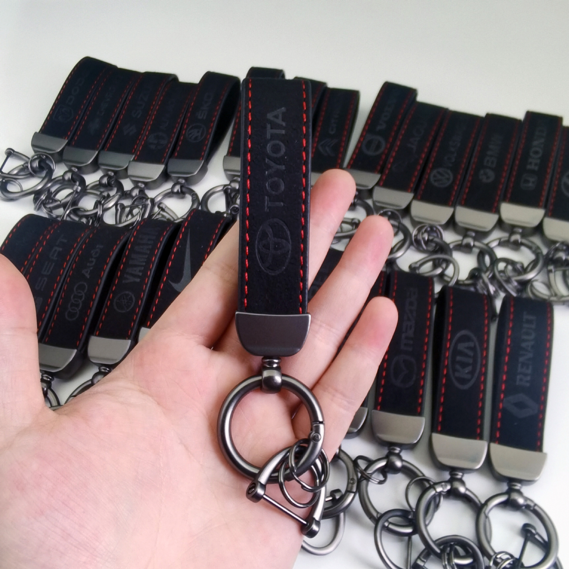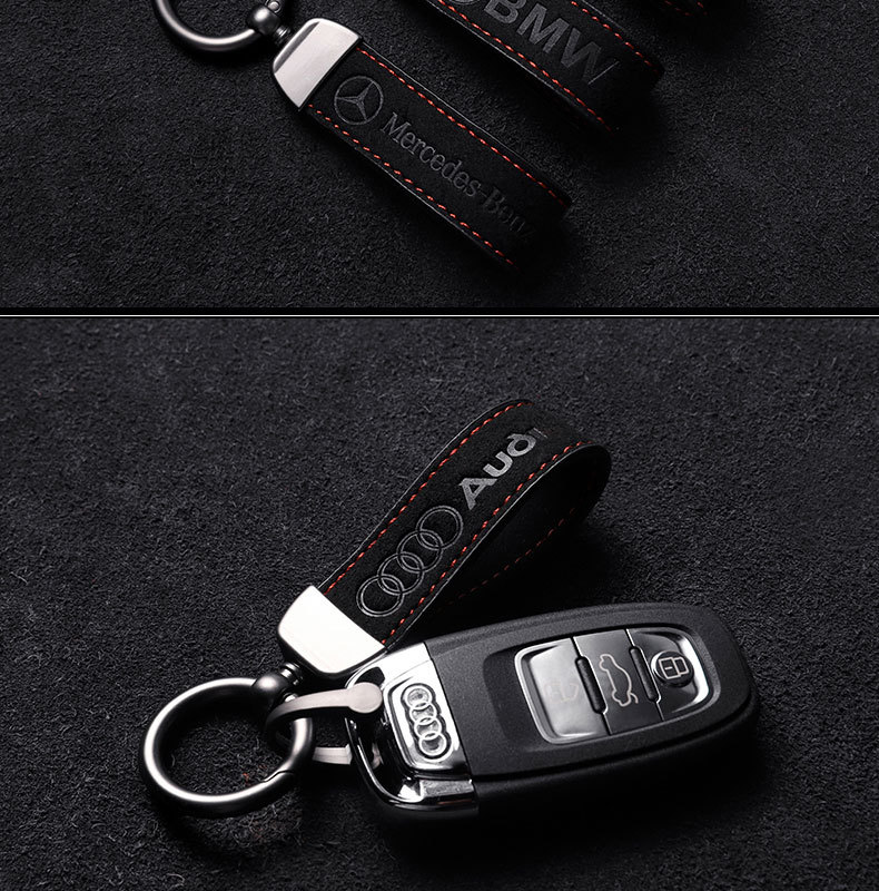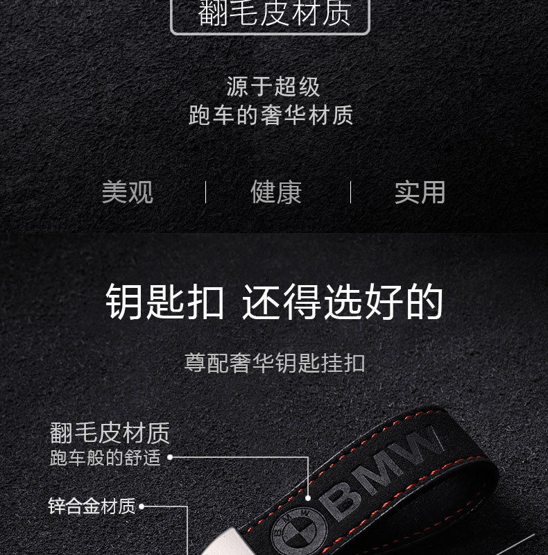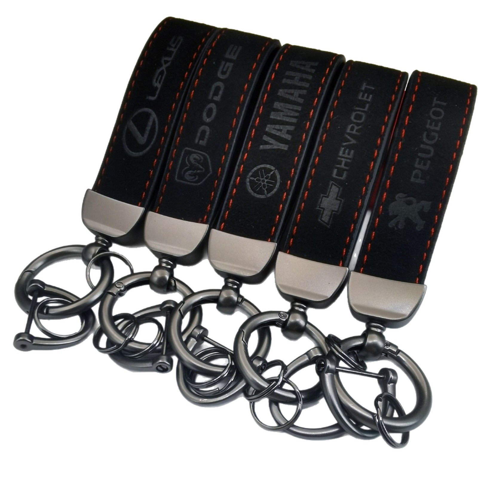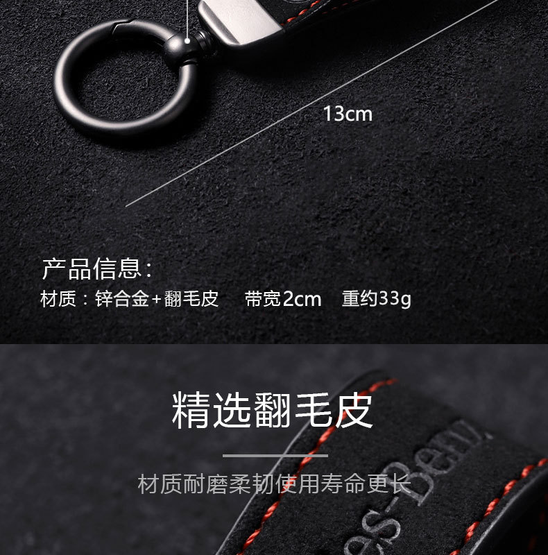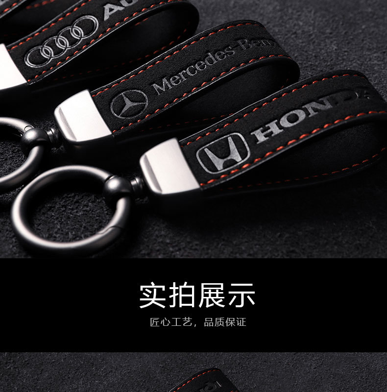 高级翻毛皮汽车钥匙扣挂件车标logo钥匙链金属皮质腰挂钥匙圈批发