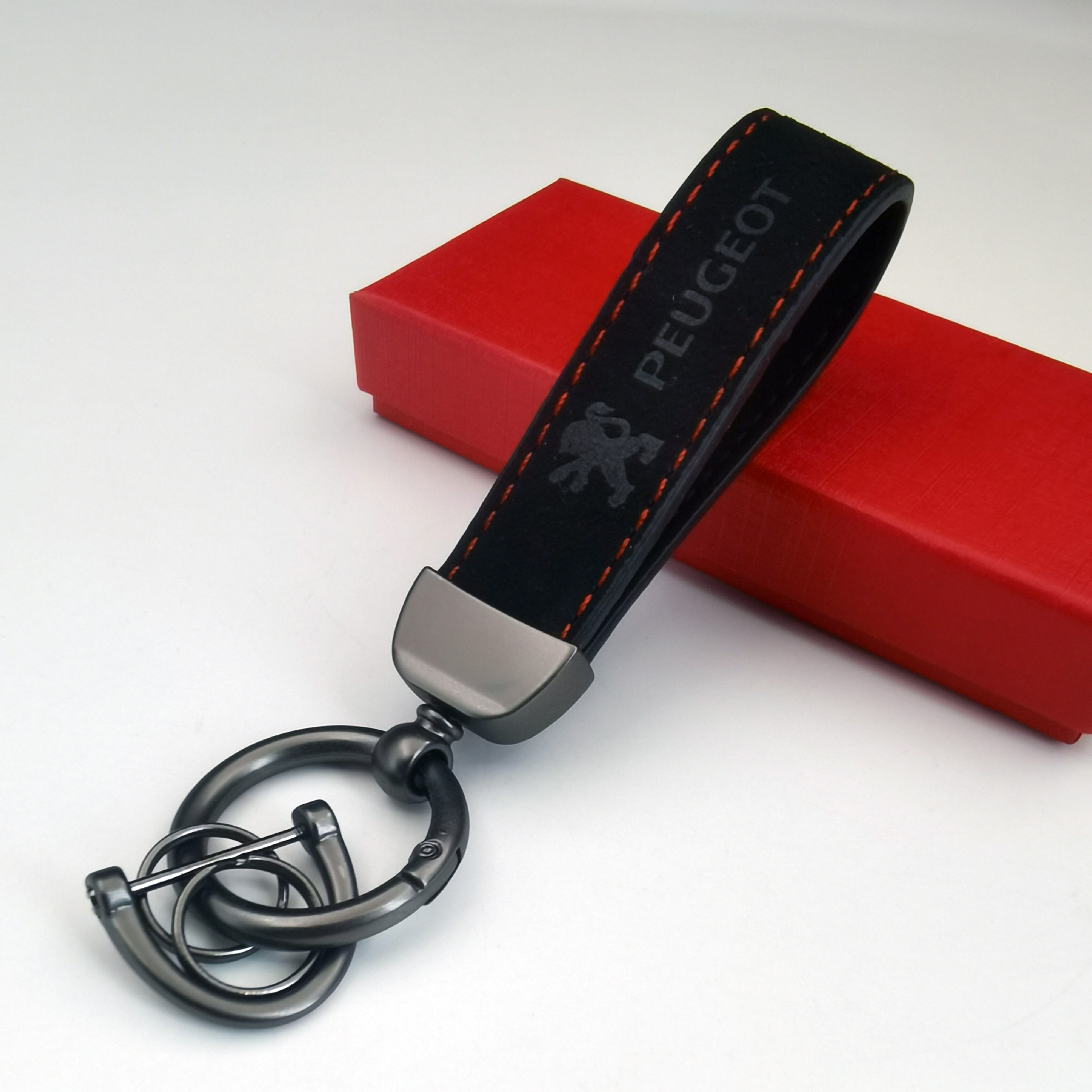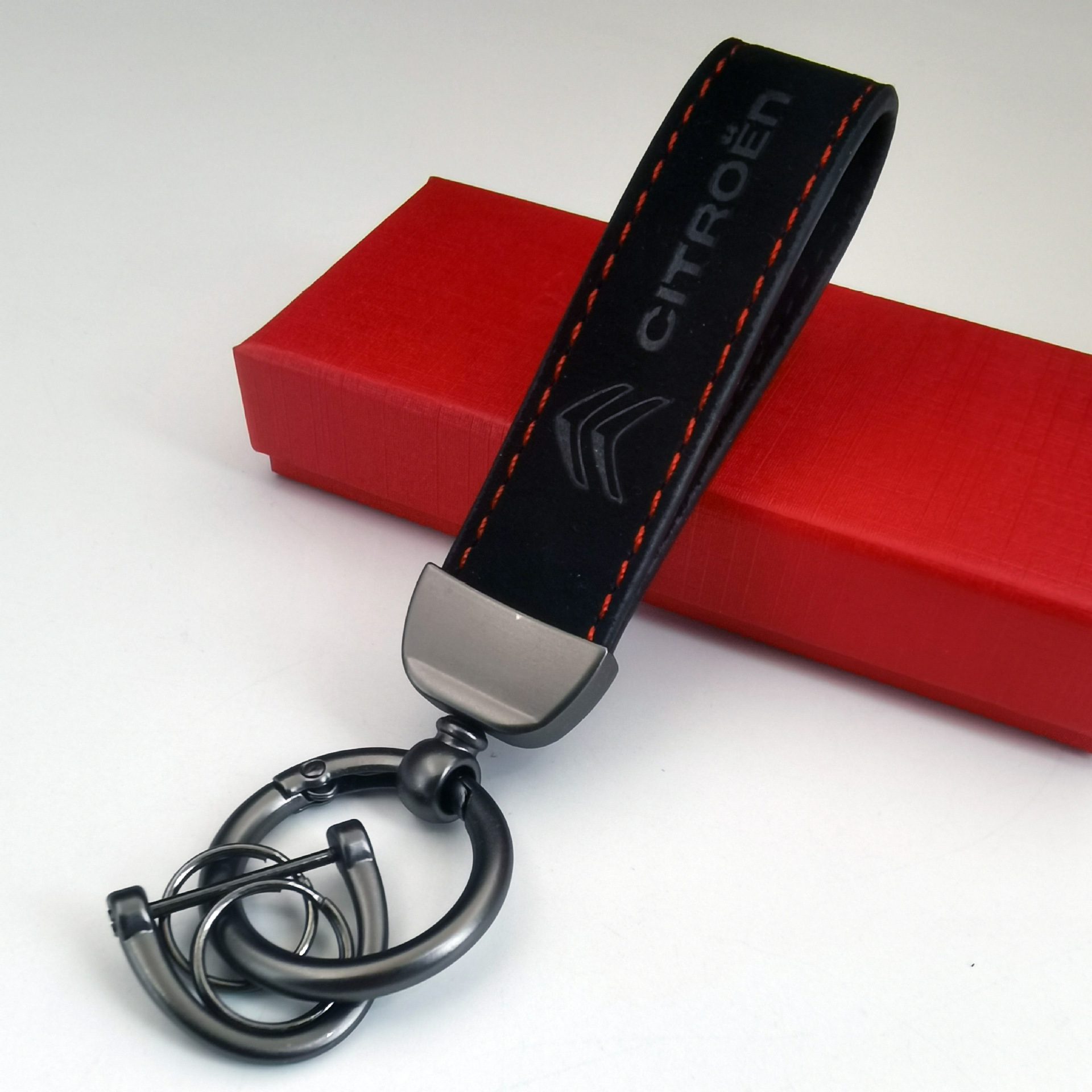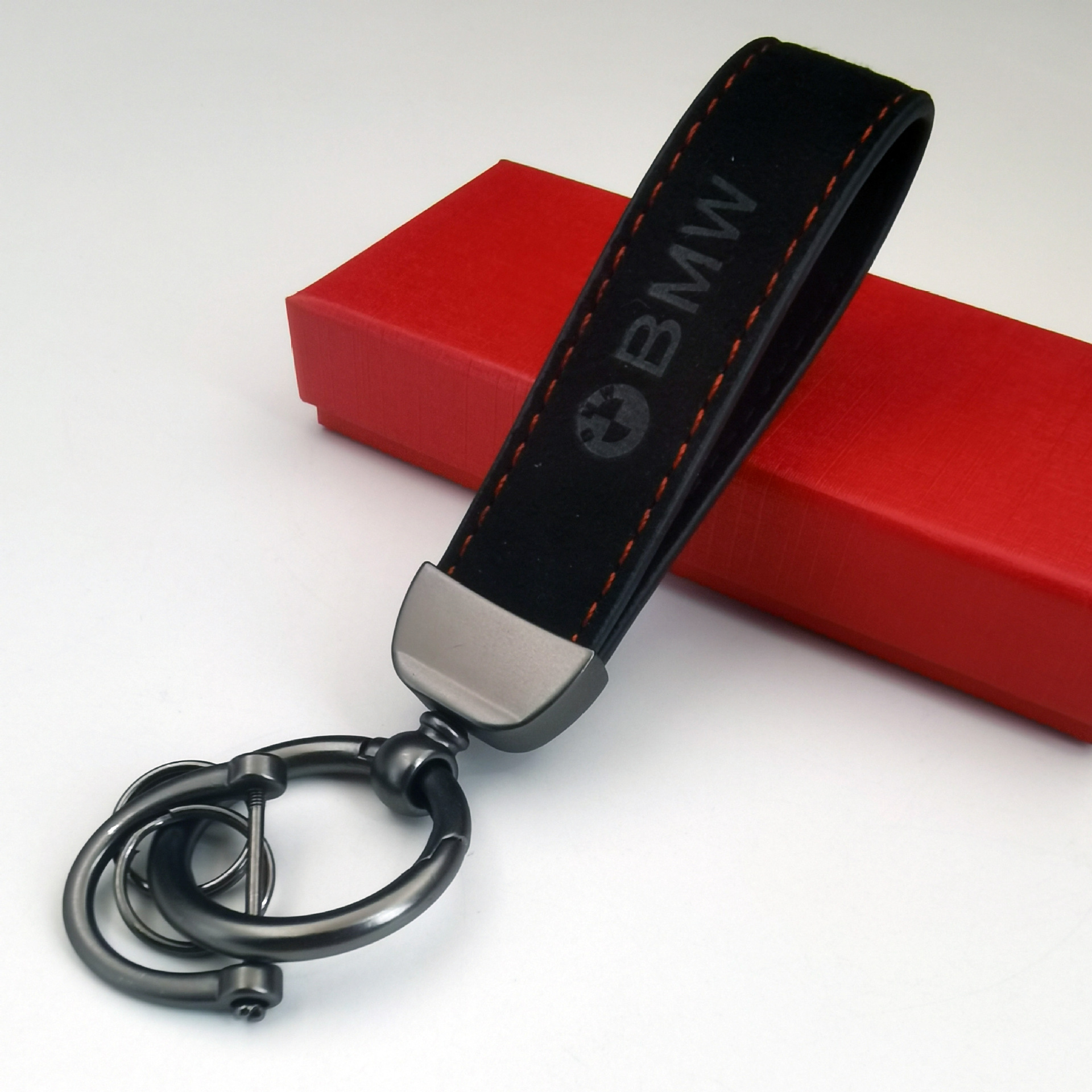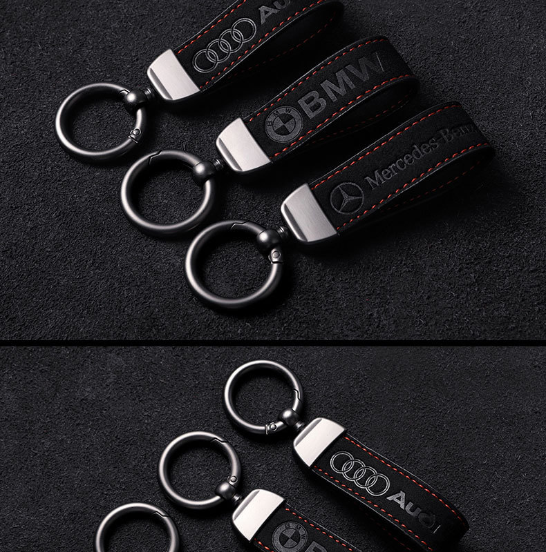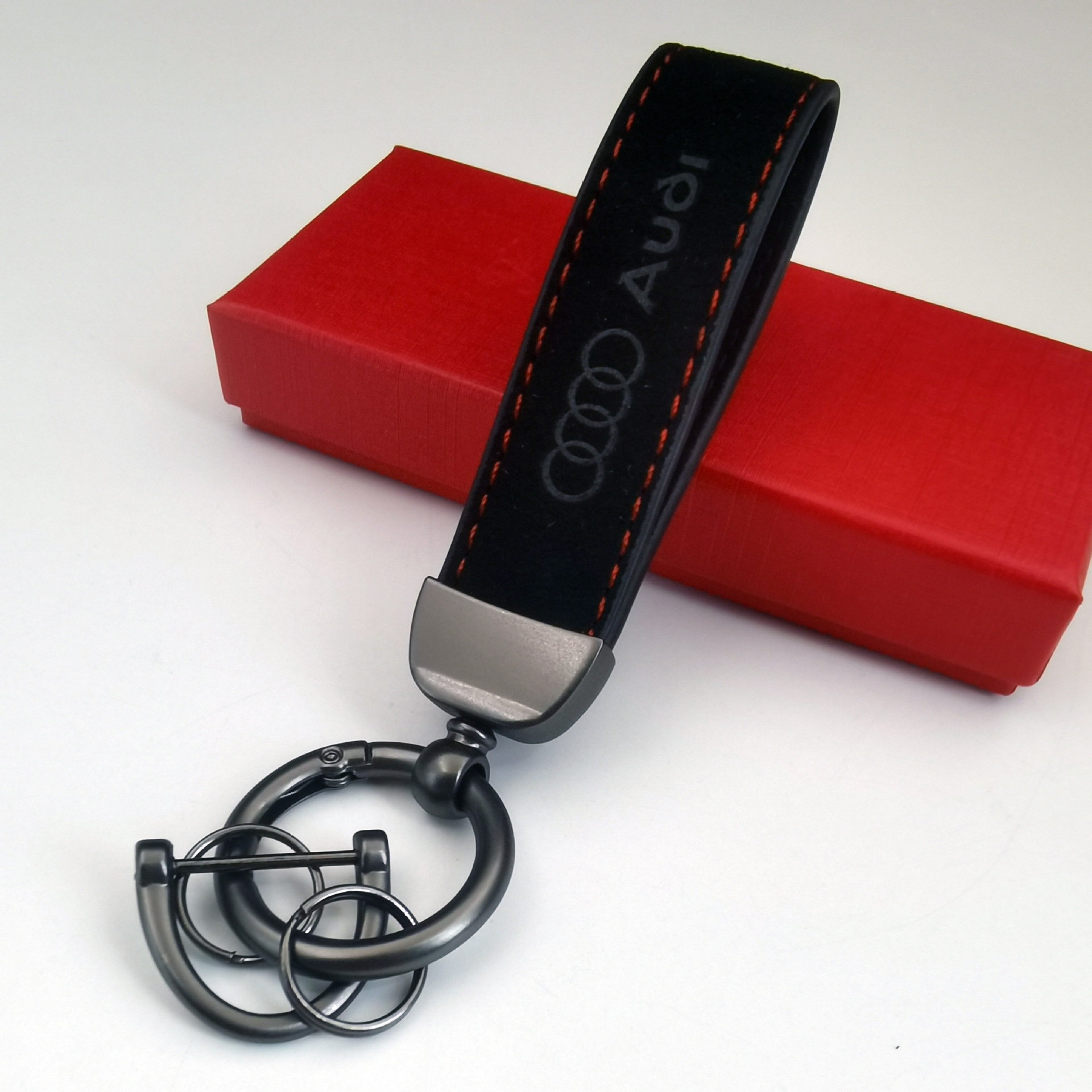 高级翻毛皮汽车钥匙扣挂件车标logo钥匙链金属皮质腰挂钥匙圈批发