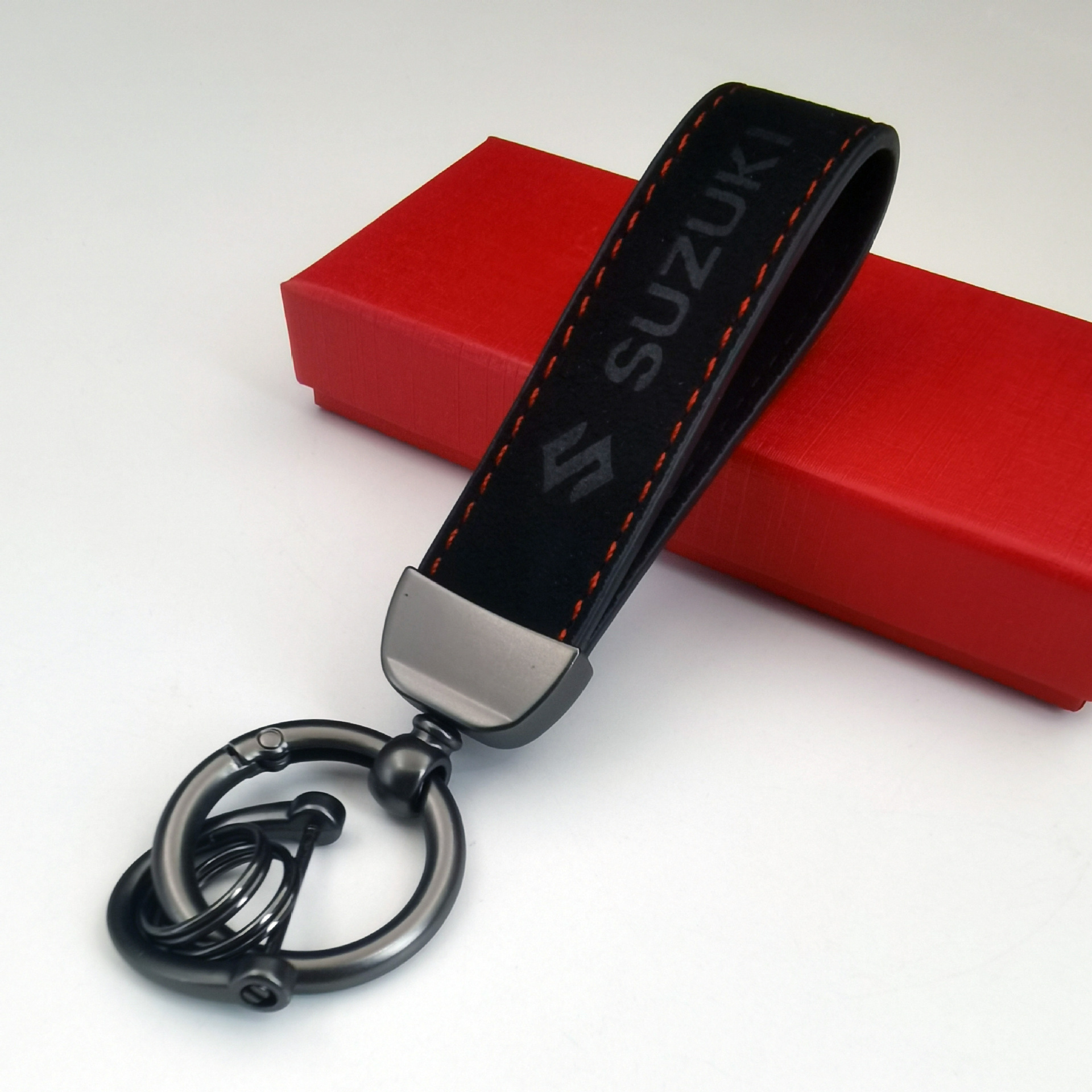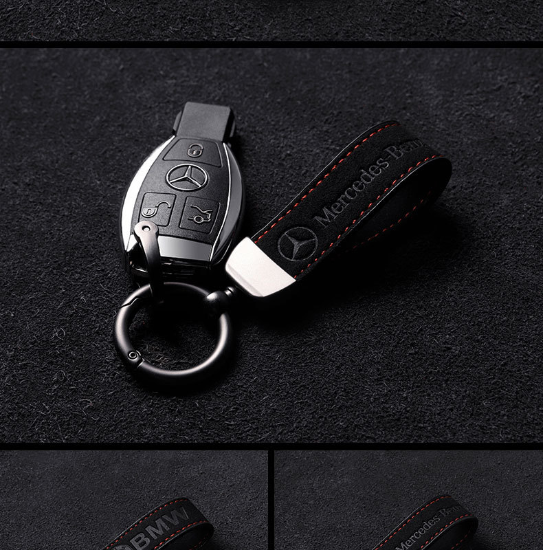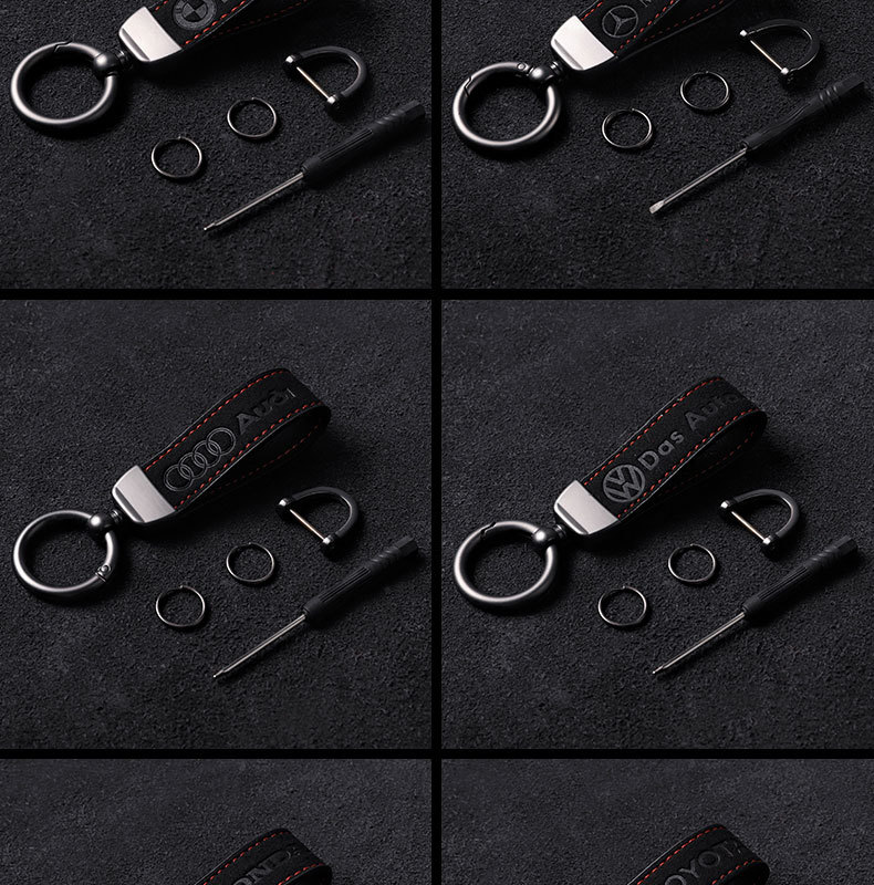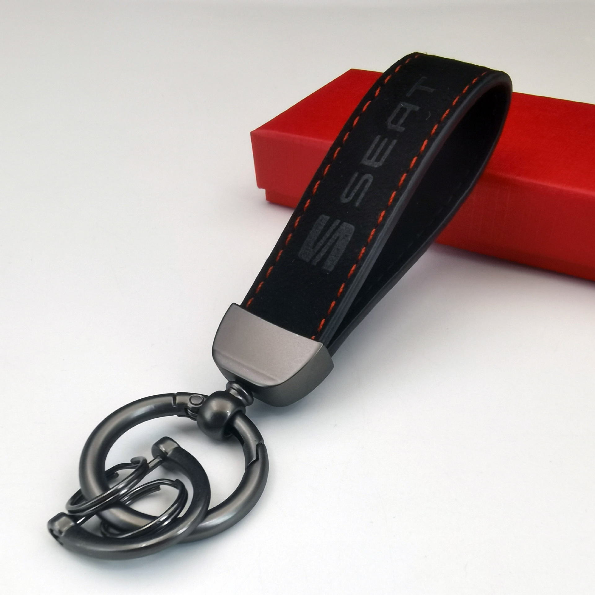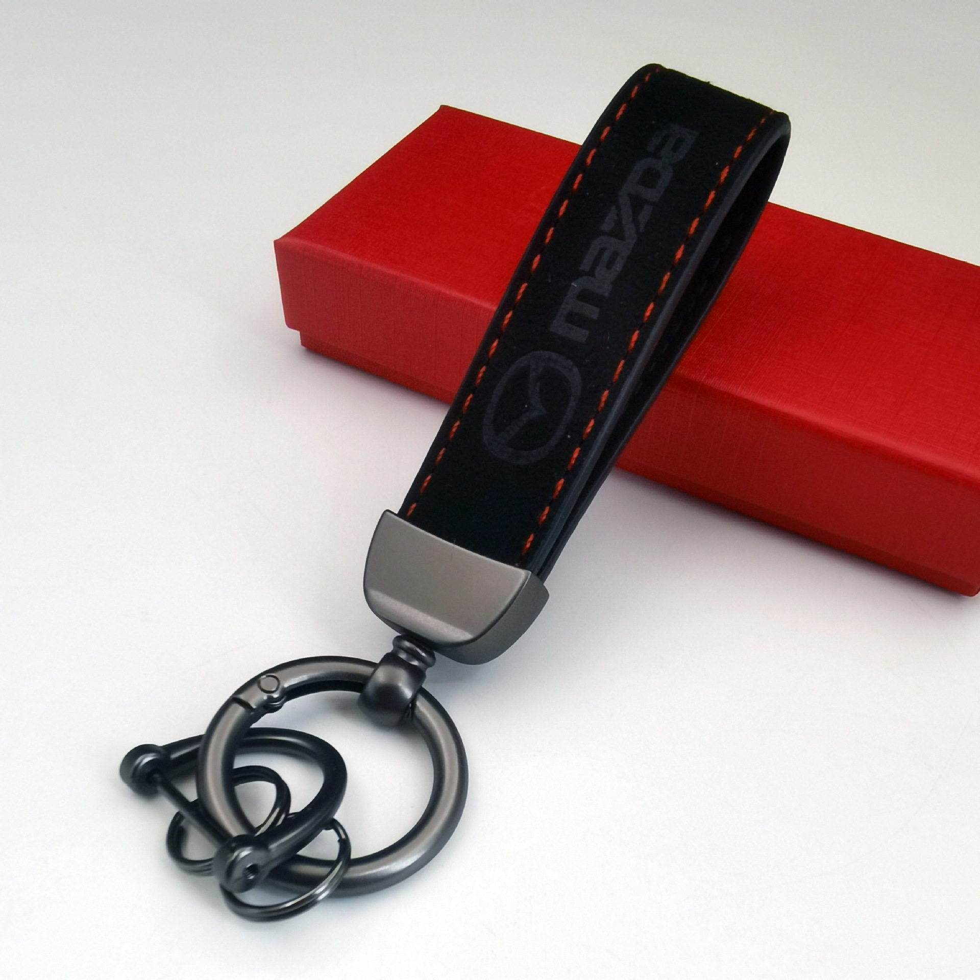高级翻毛皮汽车钥匙扣挂件车标logo钥匙链金属皮质腰挂钥匙圈批发