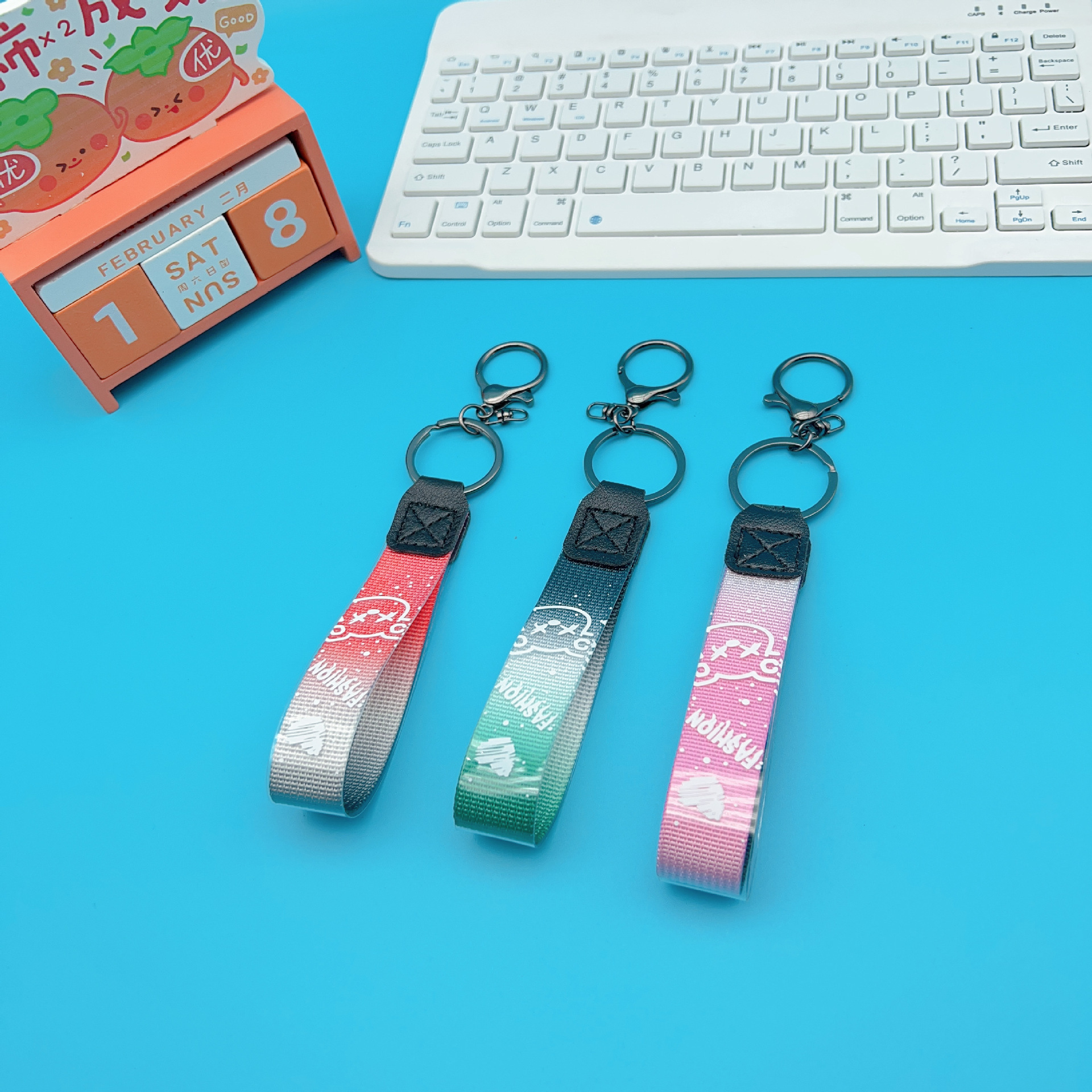 创意卡通皮革渐变皮绳钥匙扣配件精致公仔搭配包挂件汽车配饰批发