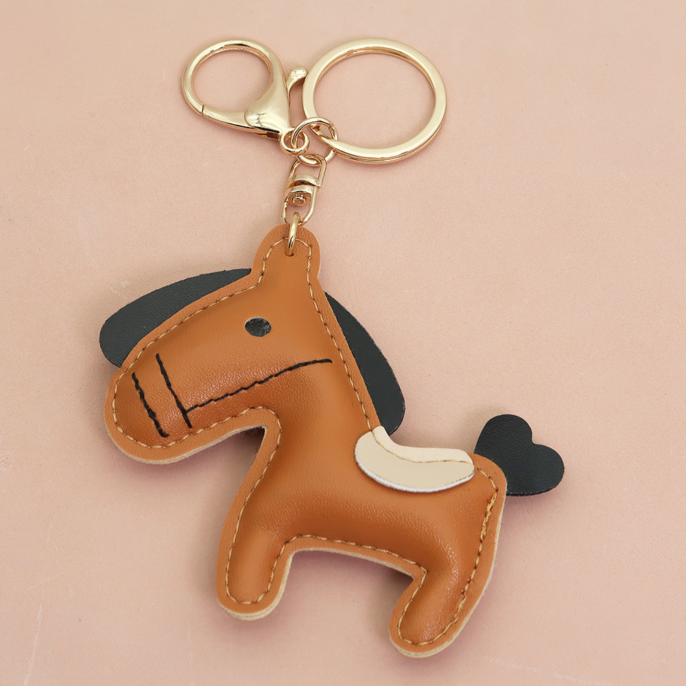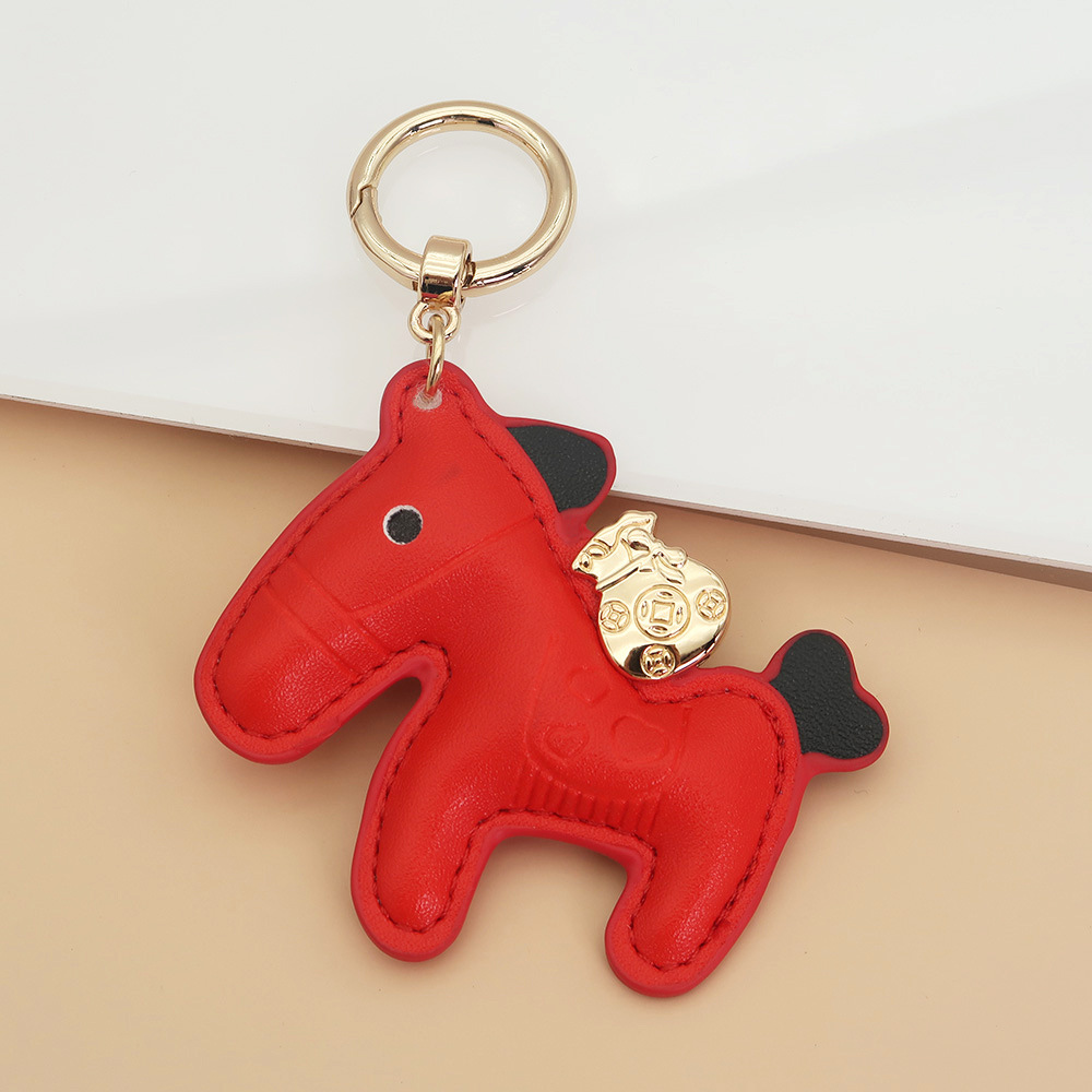 ins手工皮革马上有钱小马挂件钥匙扣新款卡通摇摇马小众挂饰批发