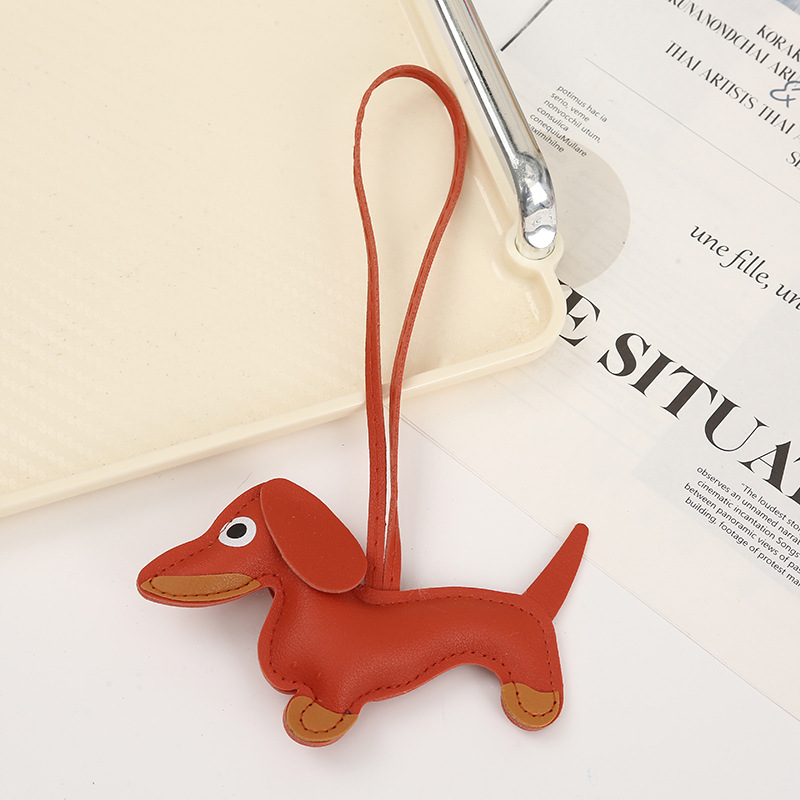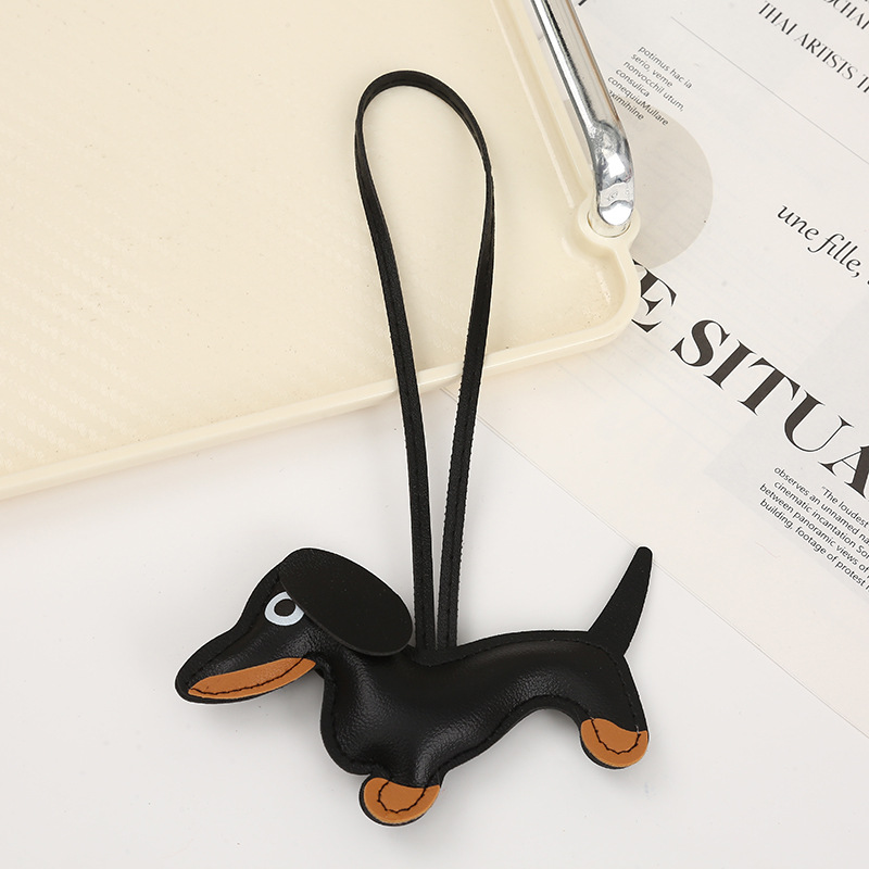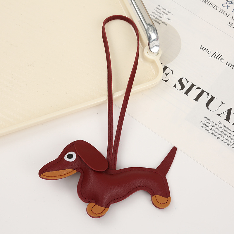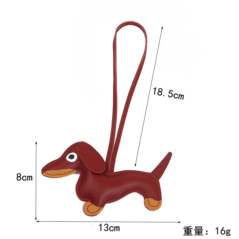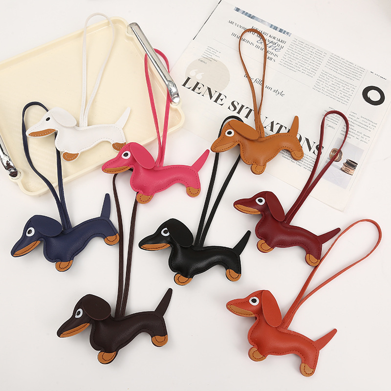2024新款皮质可爱腊肠狗挂件钥匙扣小狗吊饰包包挂件卡通挂饰批发