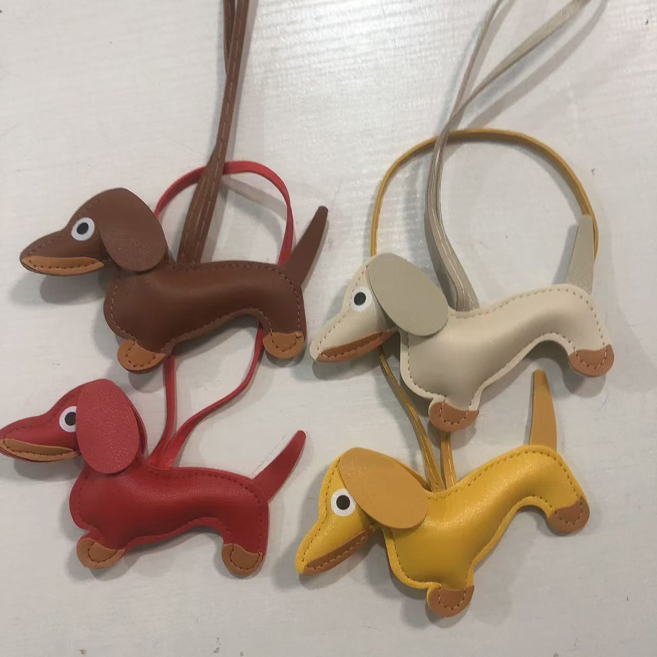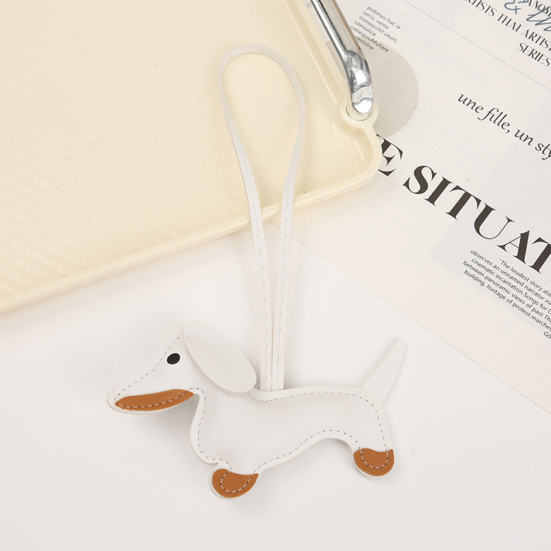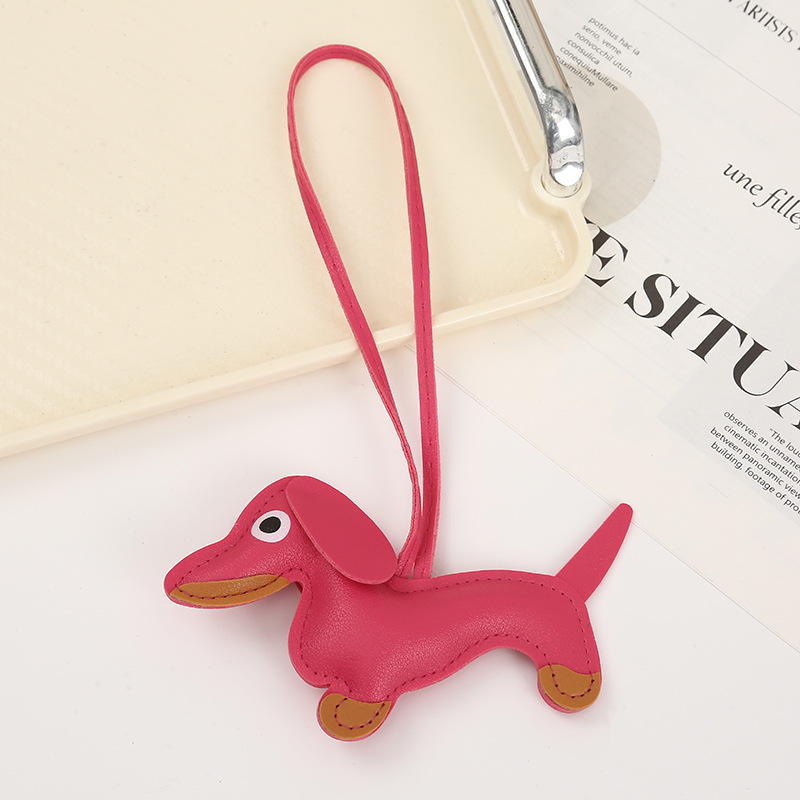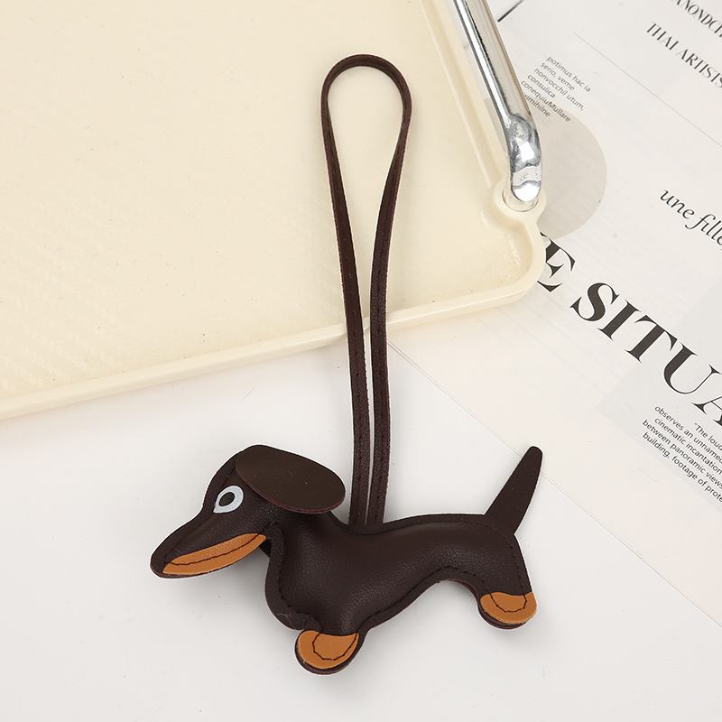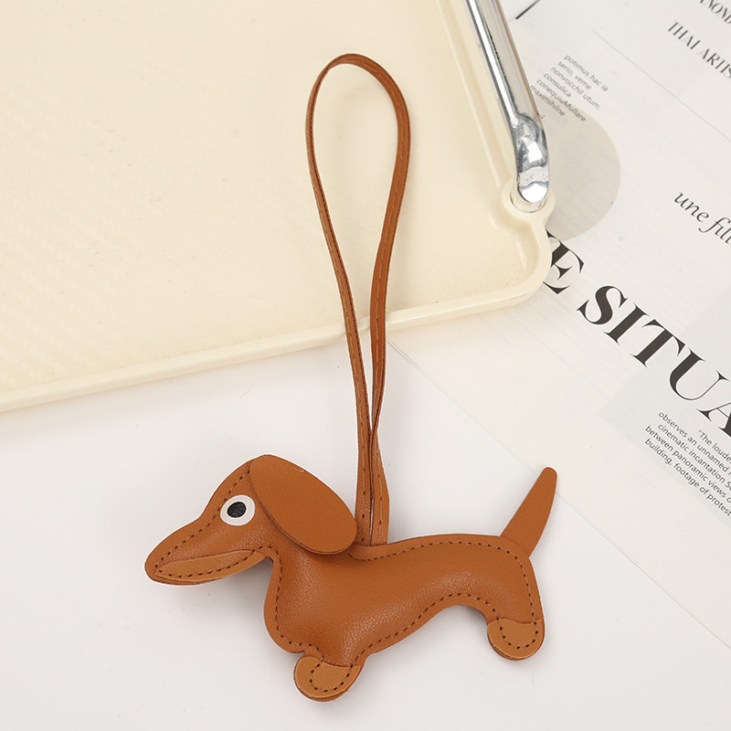 2024新款皮质可爱腊肠狗挂件钥匙扣小狗吊饰包包挂件卡通挂饰批发
