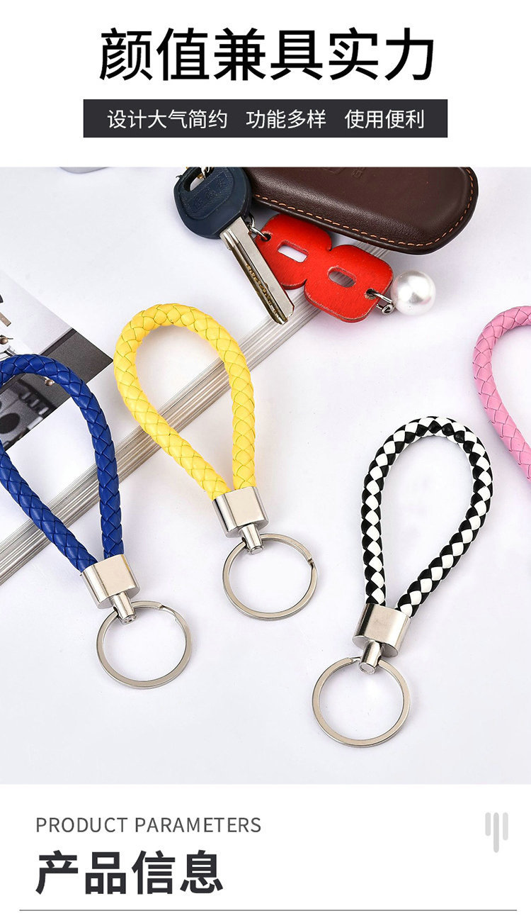 皮绳钥匙扣编织金属钥匙链配件挂饰汽车小饰品包包挂件小礼品批发