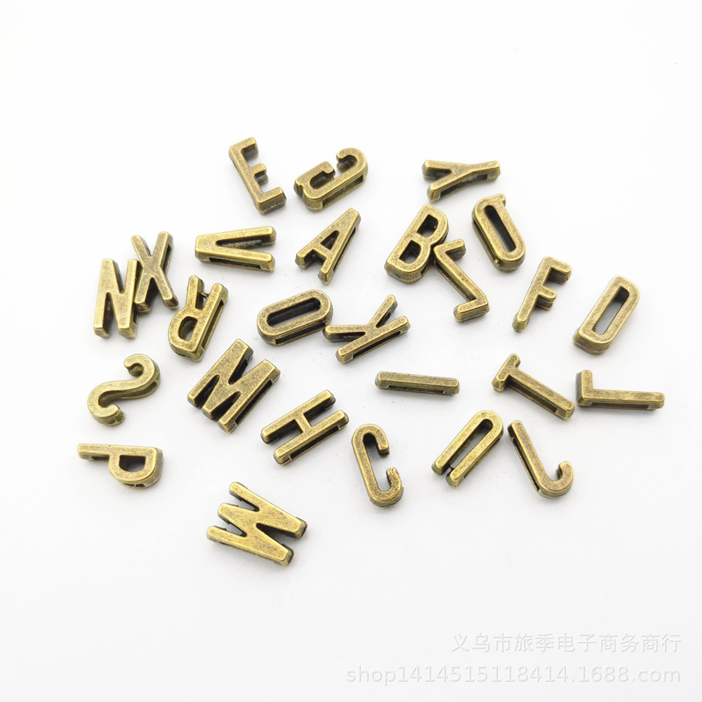 DIY合金饰品配件 适合皮绳 小号穿孔26个英文字母1358