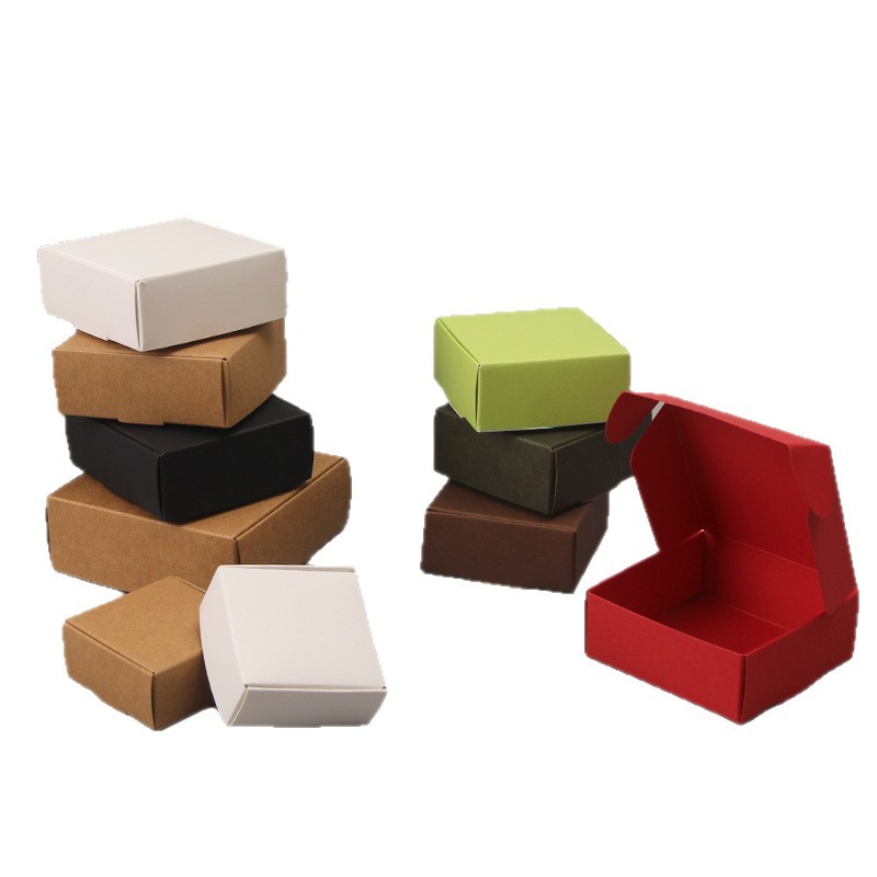跨境现货牛皮纸盒开窗飞机盒白卡黑色小方盒饰品手工皂包装盒定制