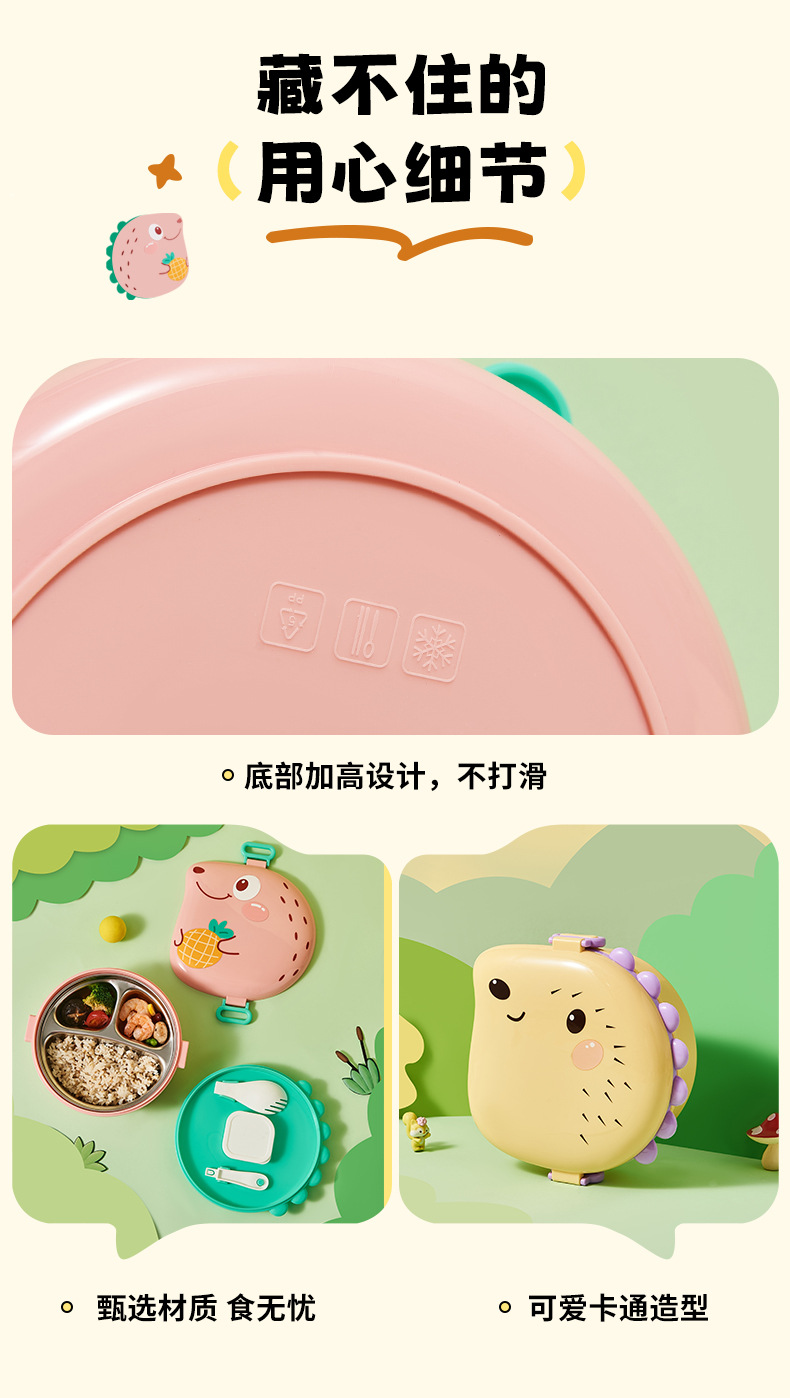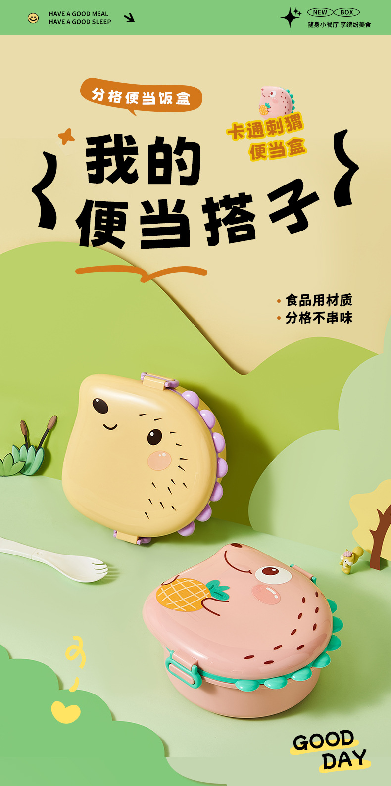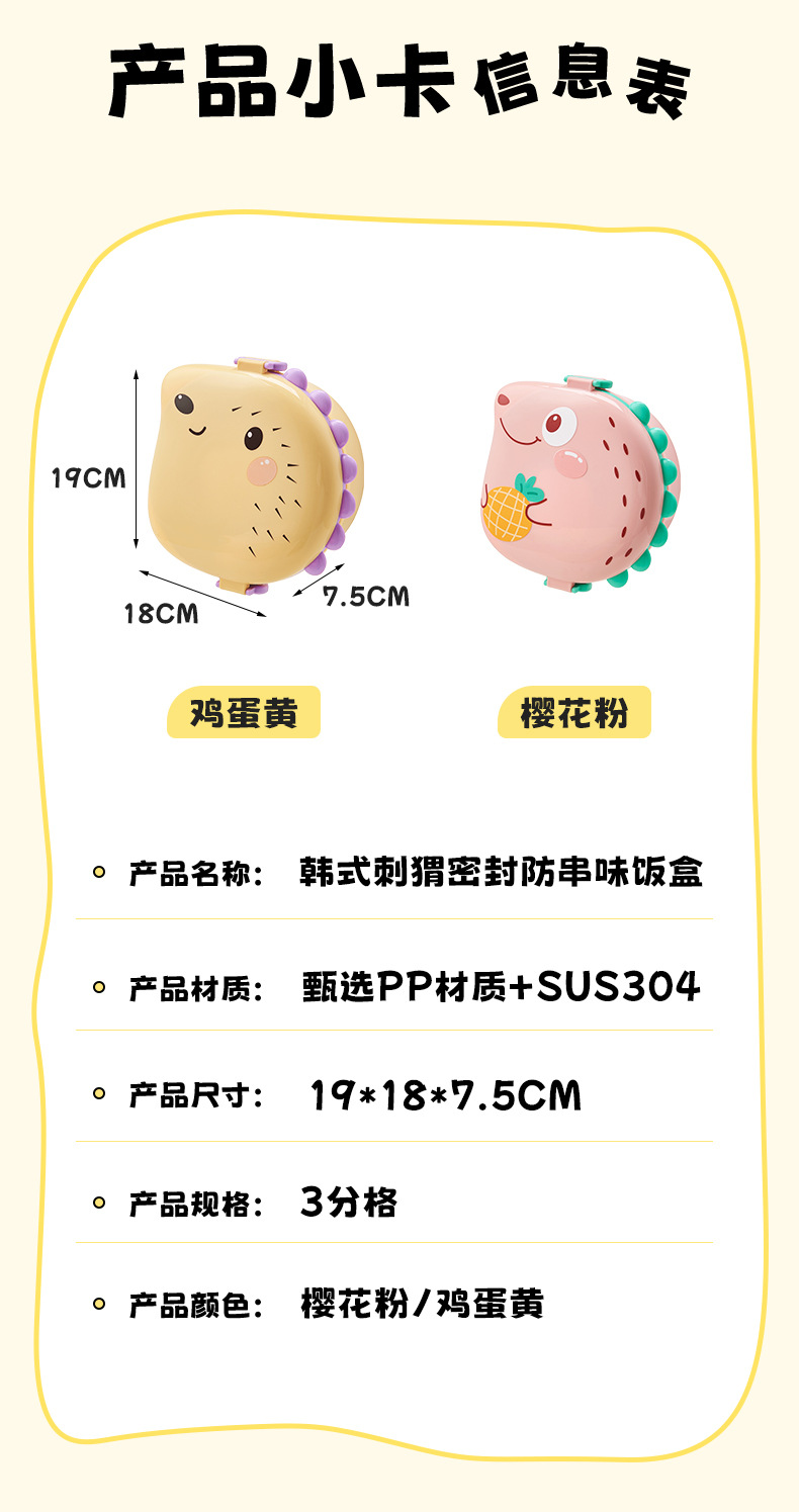 可爱卡通刺猬保温饭盒304不锈钢便携式分格饭盒高颜值儿童便当盒