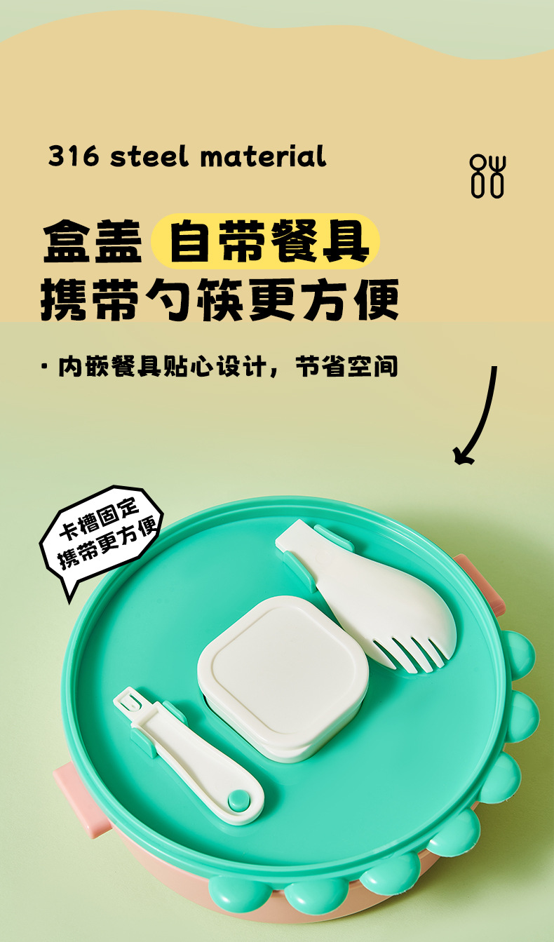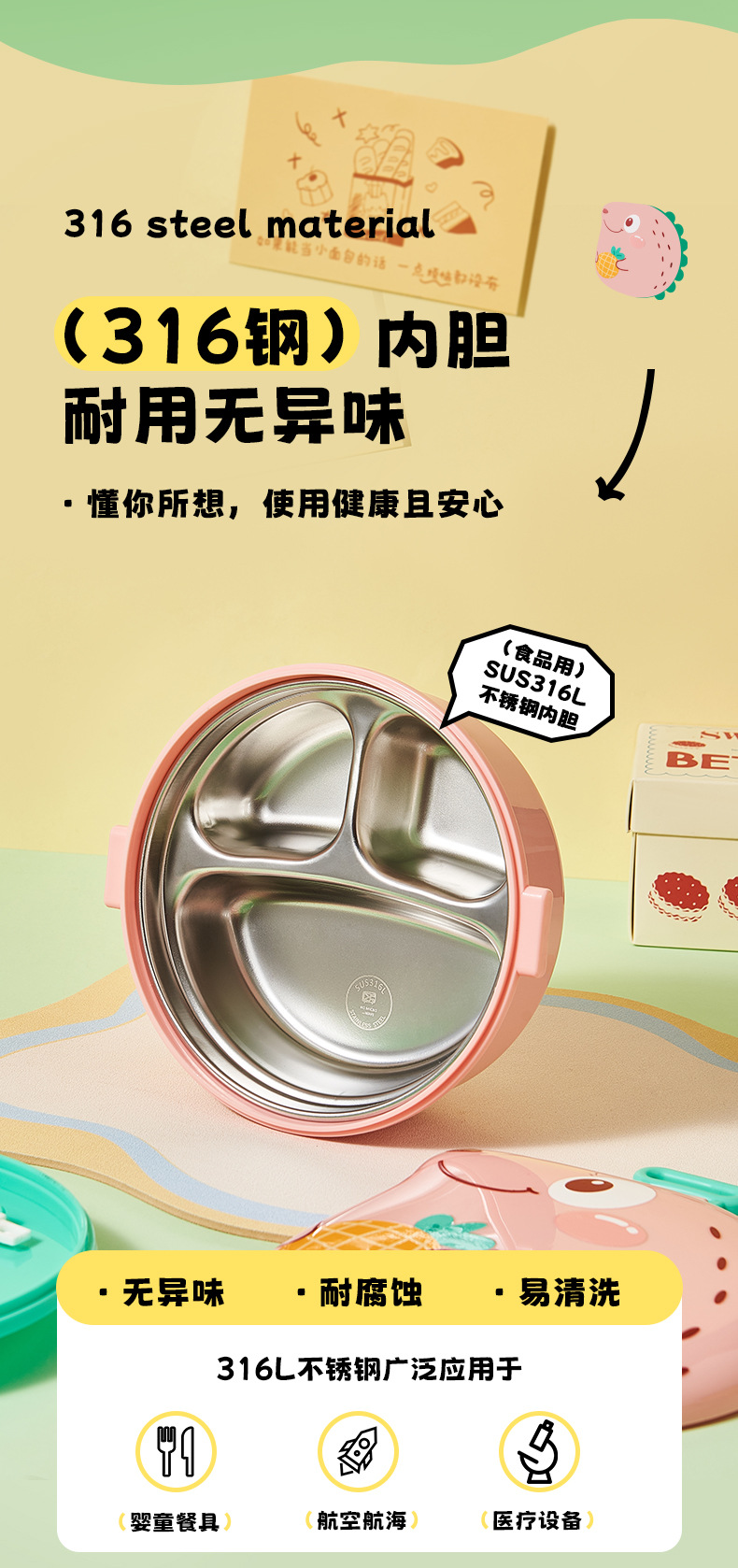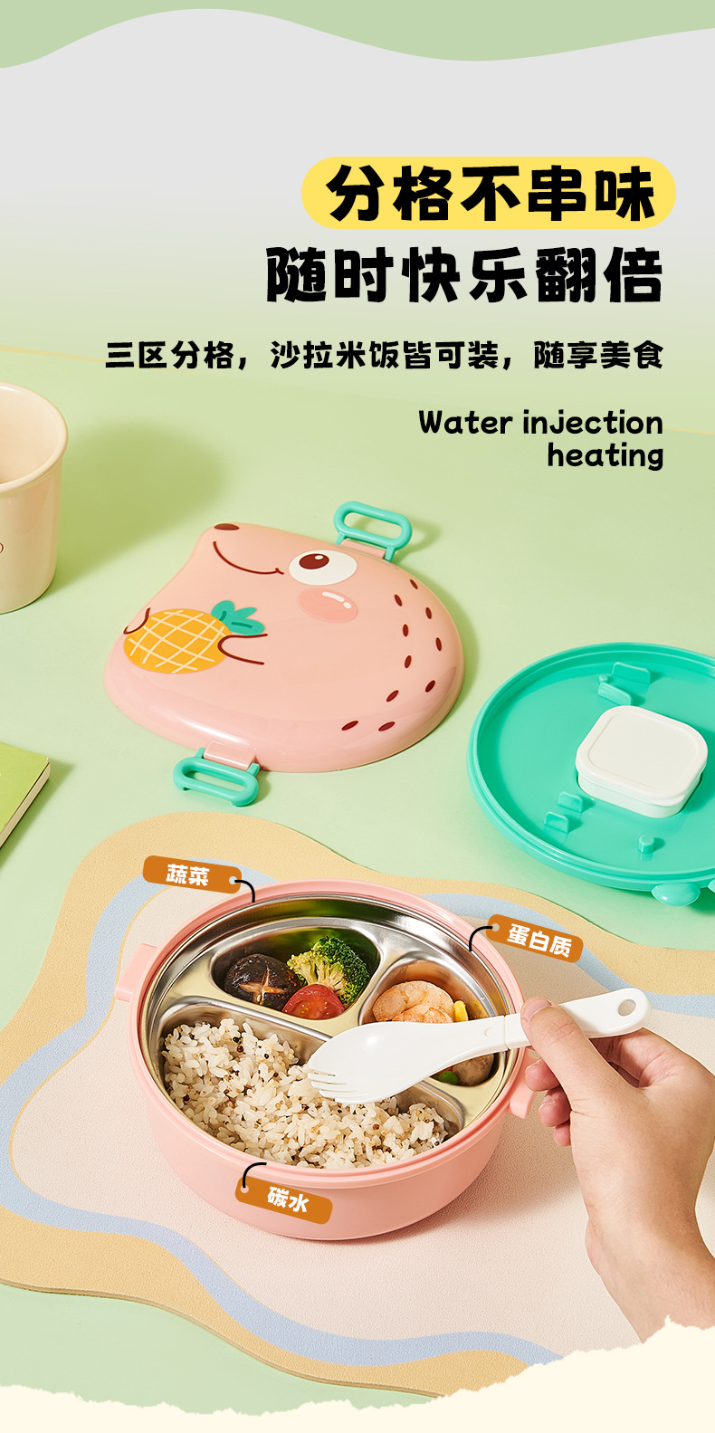 可爱卡通刺猬保温饭盒304不锈钢便携式分格饭盒高颜值儿童便当盒
