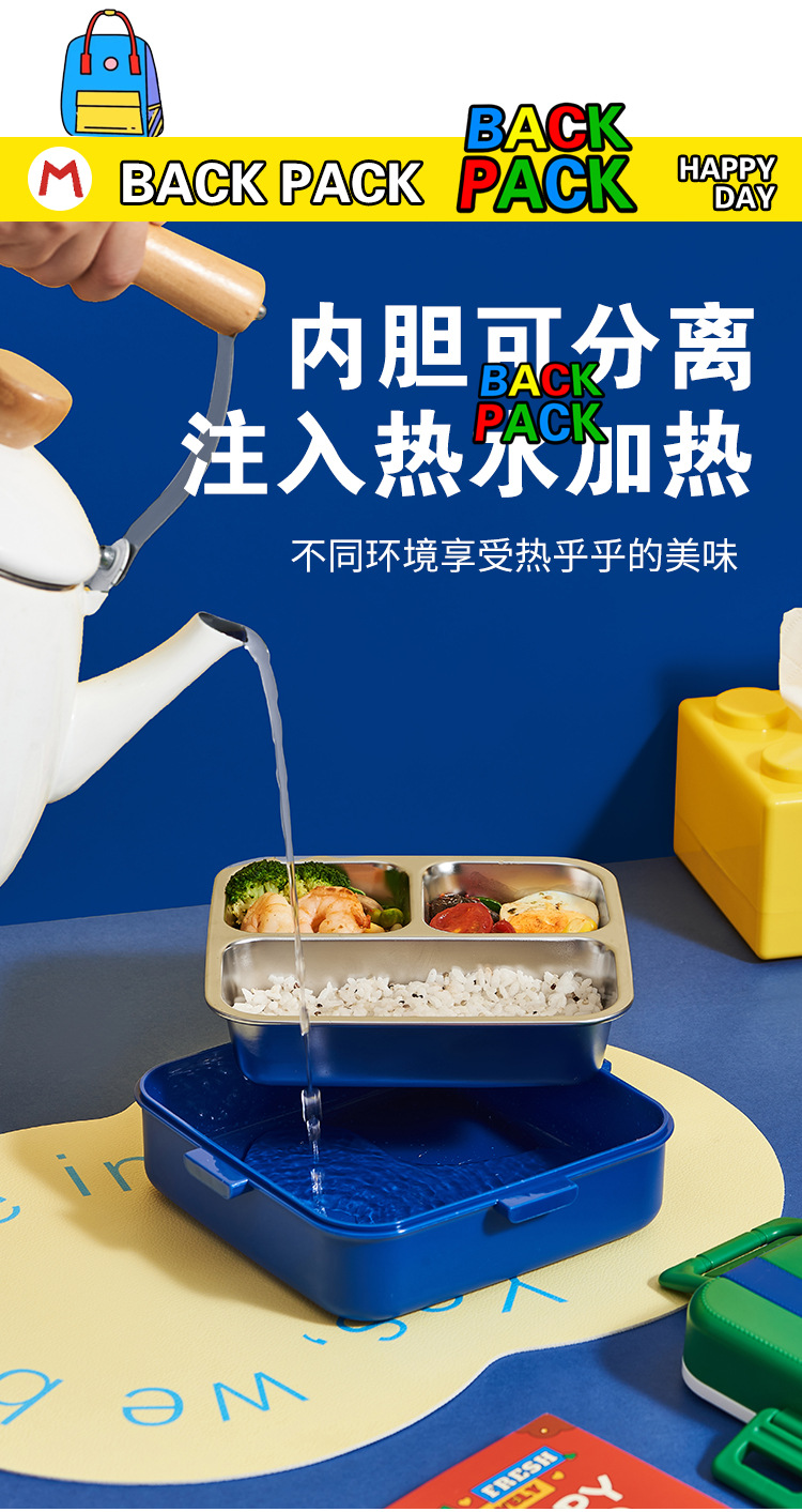 手提书包饭盒不锈钢饭盒带盖密封饭盒学生上班族野餐盒便携便当盒