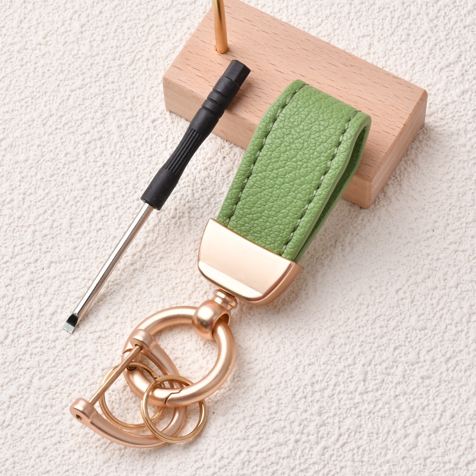 法式短款小羊皮汽车钥匙扣高档山羊纹皮革钥匙链可爱挂件礼品女款