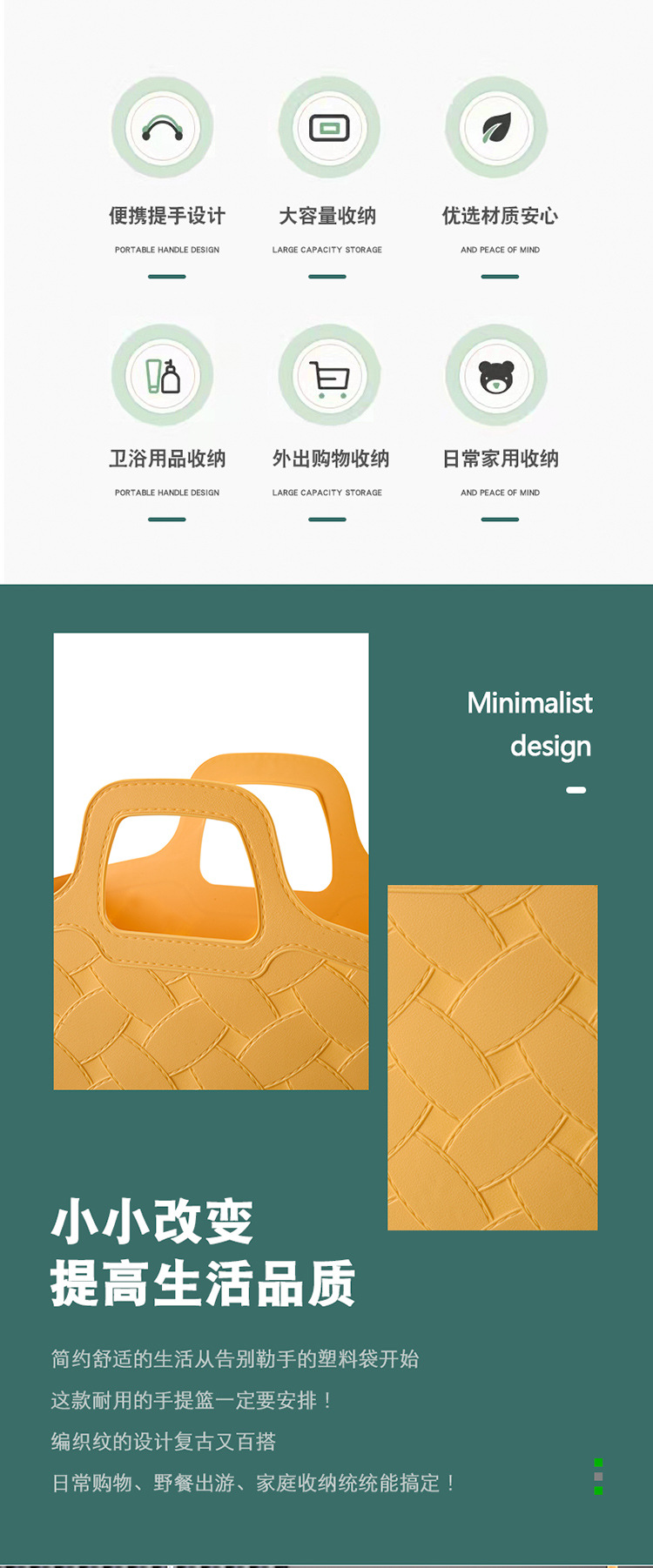 多功能收纳框带手提厨房卫生间户外收纳篮