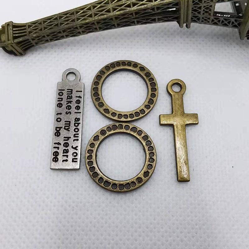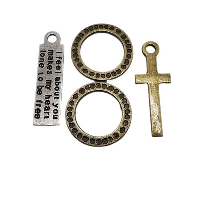 厂家批发项链金属四件套饰品 复古diy牛皮项链钥匙扣配件吊牌圈圈