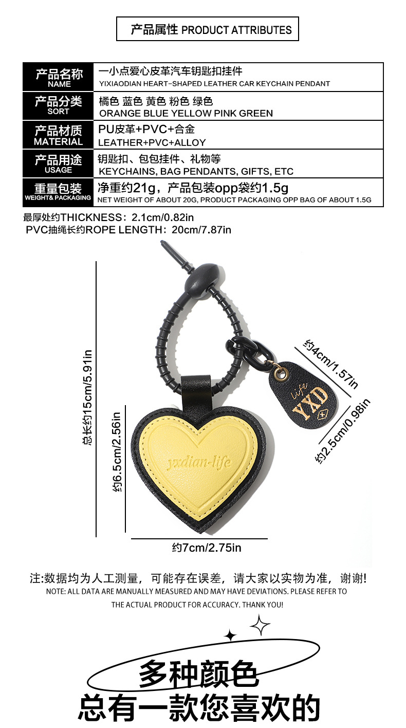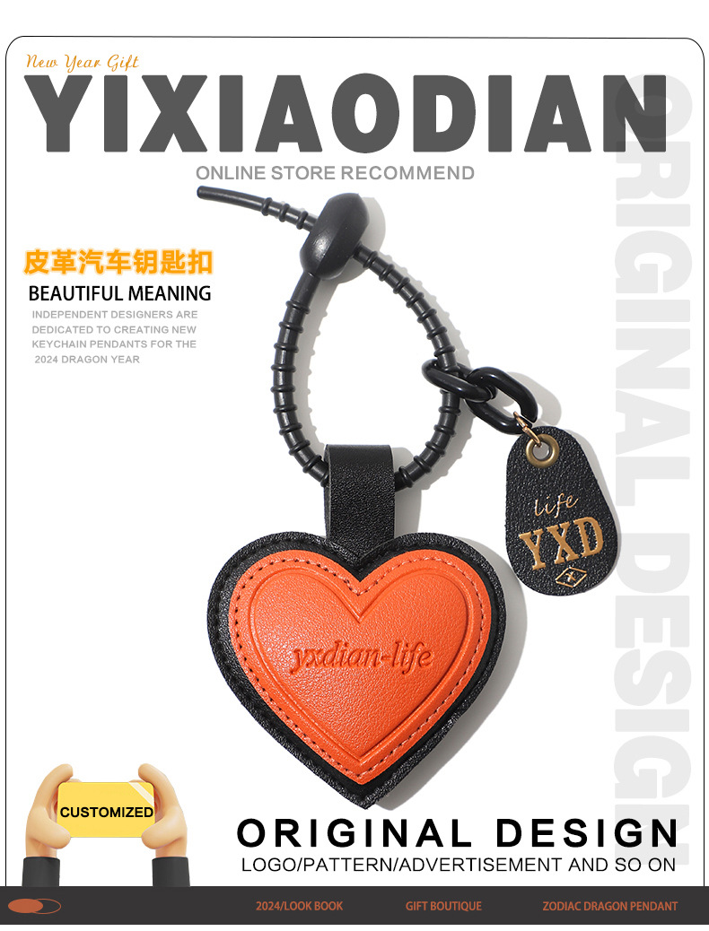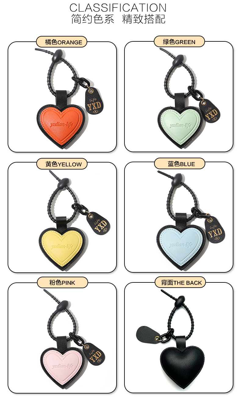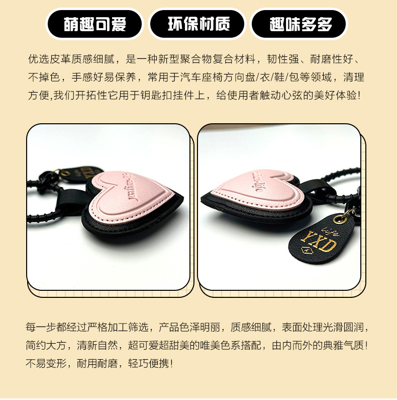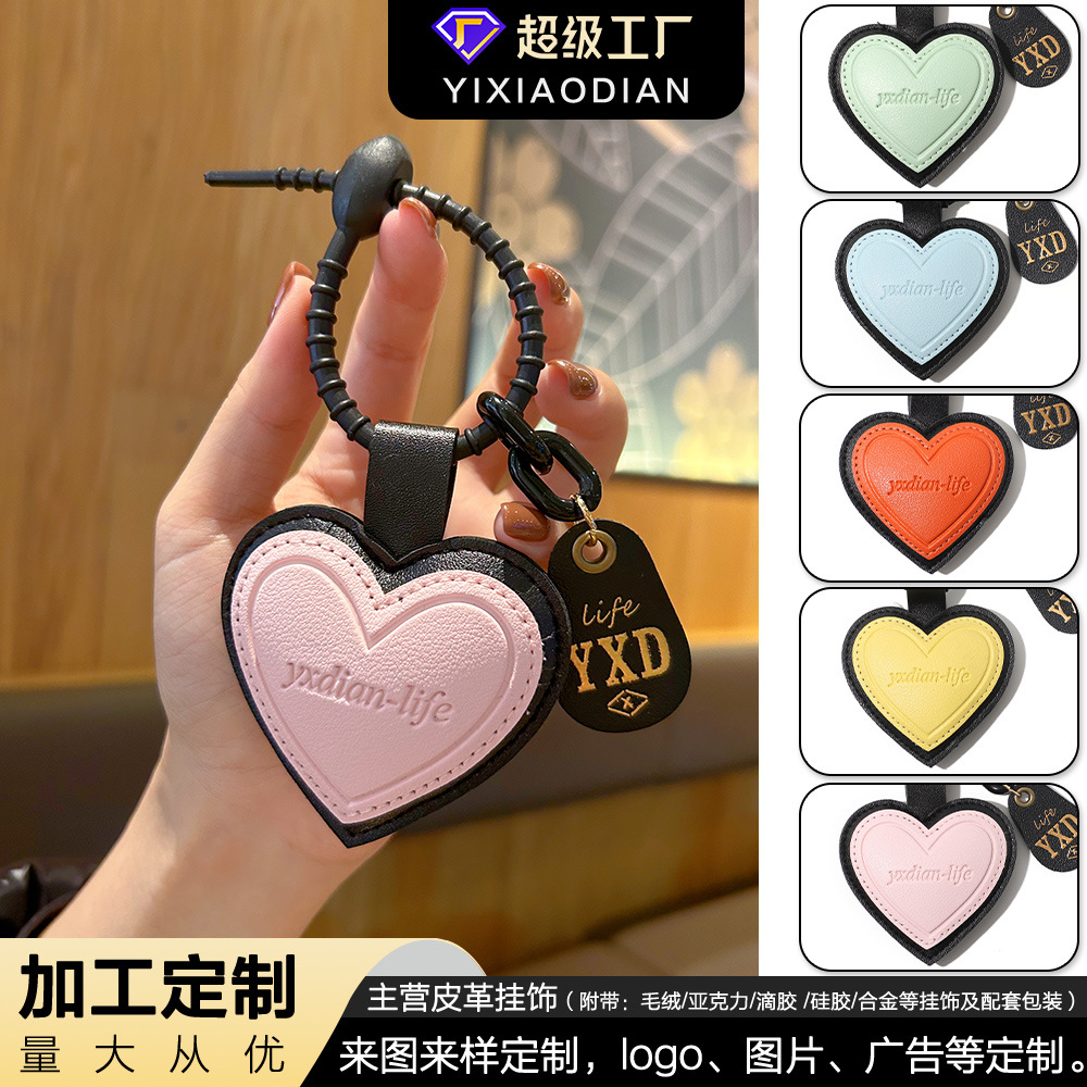 正版设计感pu皮质爱心钥匙扣可爱ins风包包挂件汽车挂饰一件代发