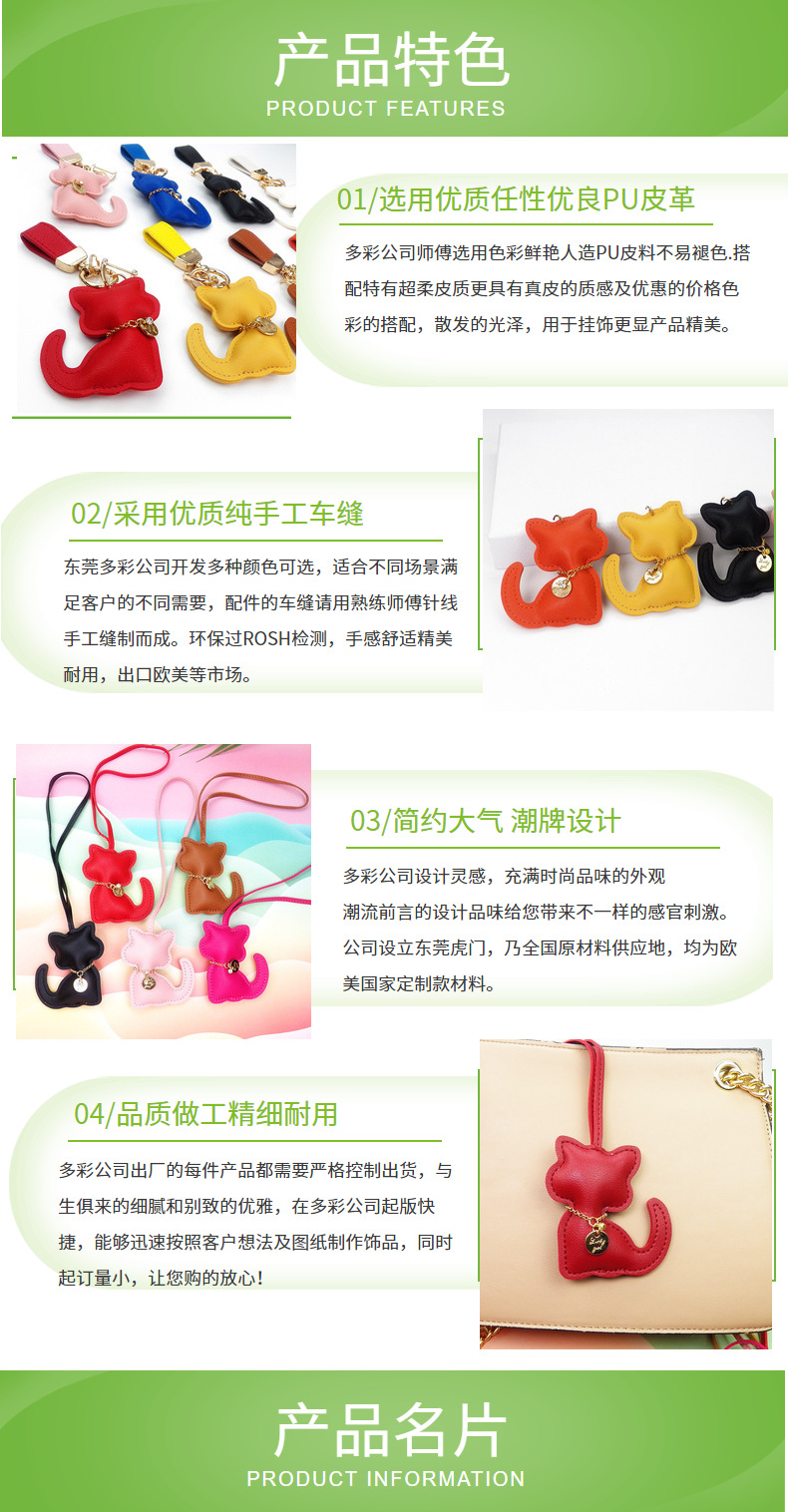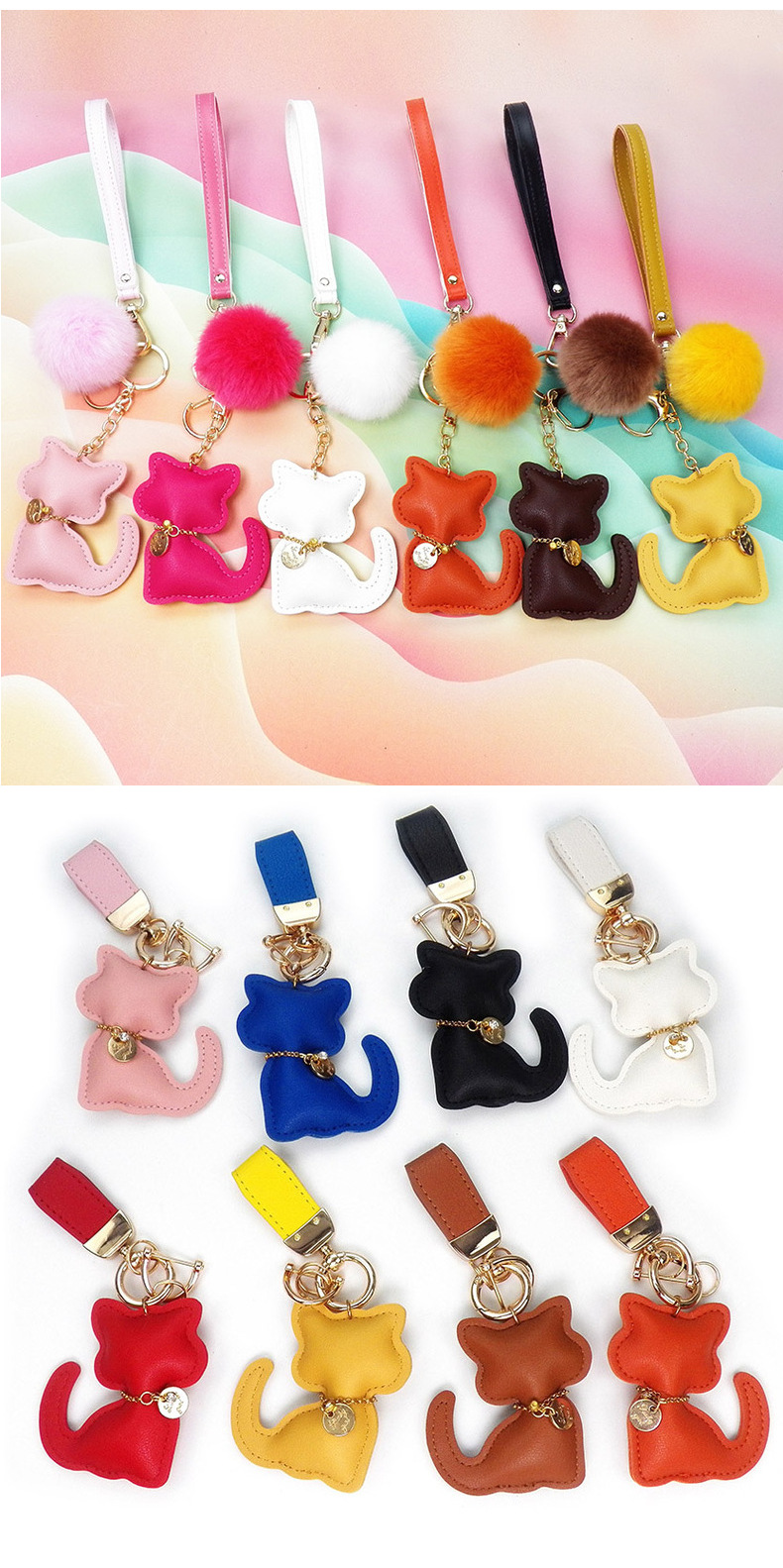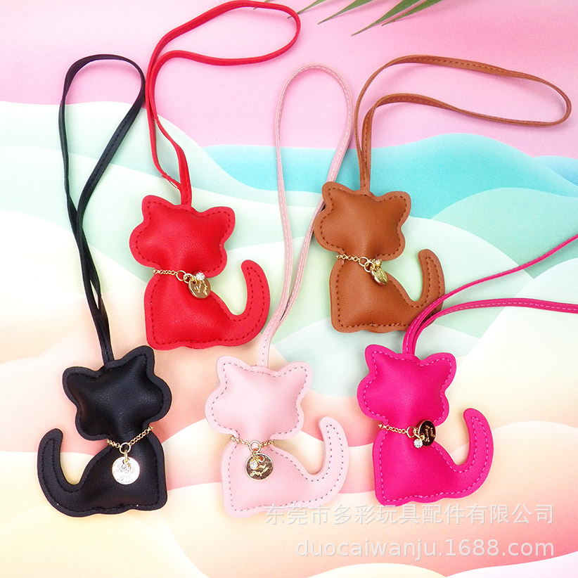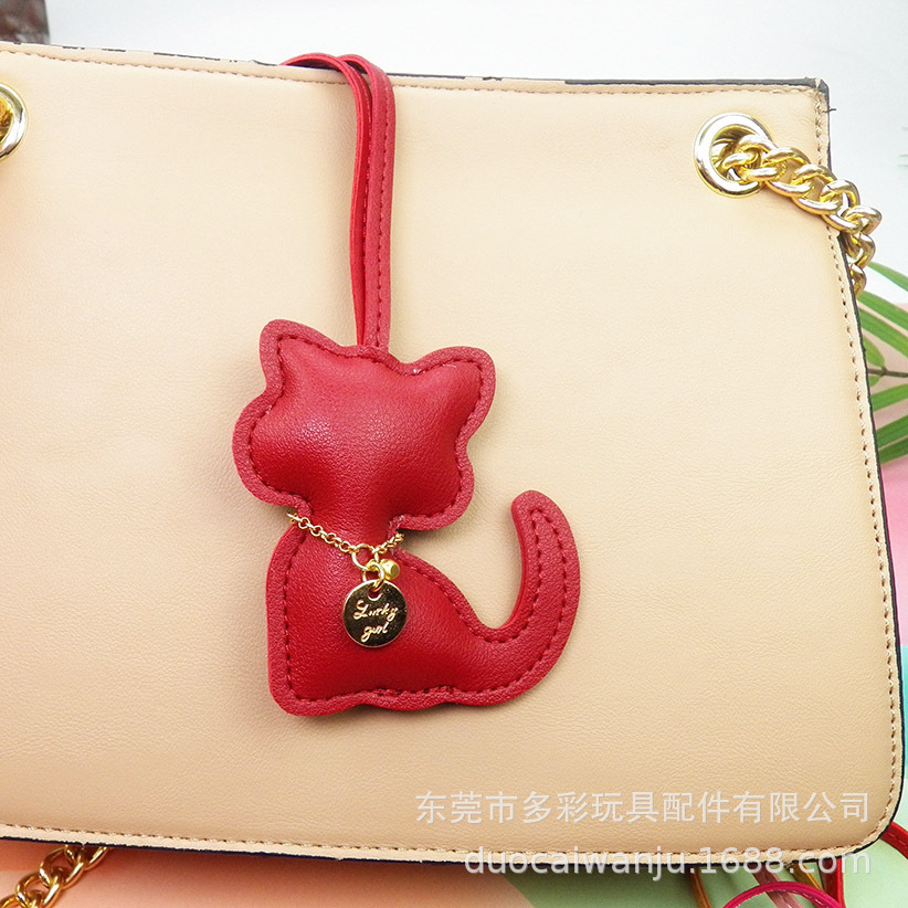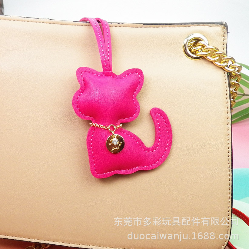猫咪包包挂件卡通动物小猫皮革包配饰汽车钥匙扣挂饰时尚皮革挂件