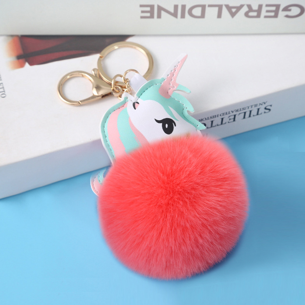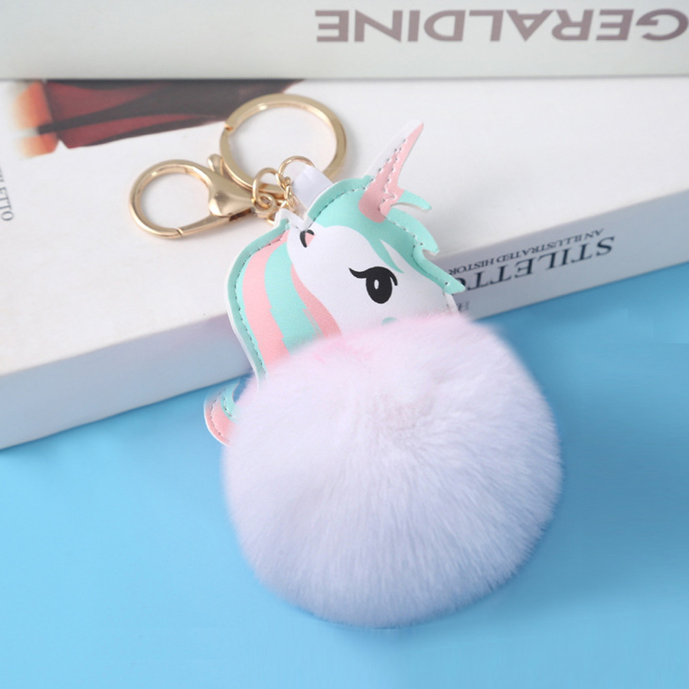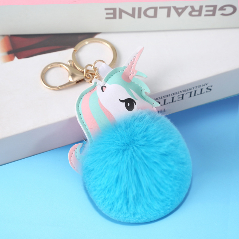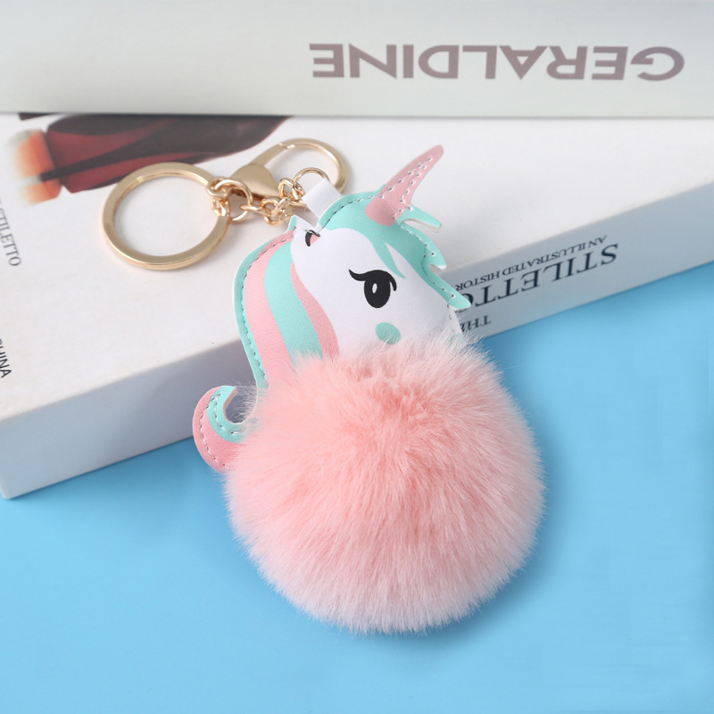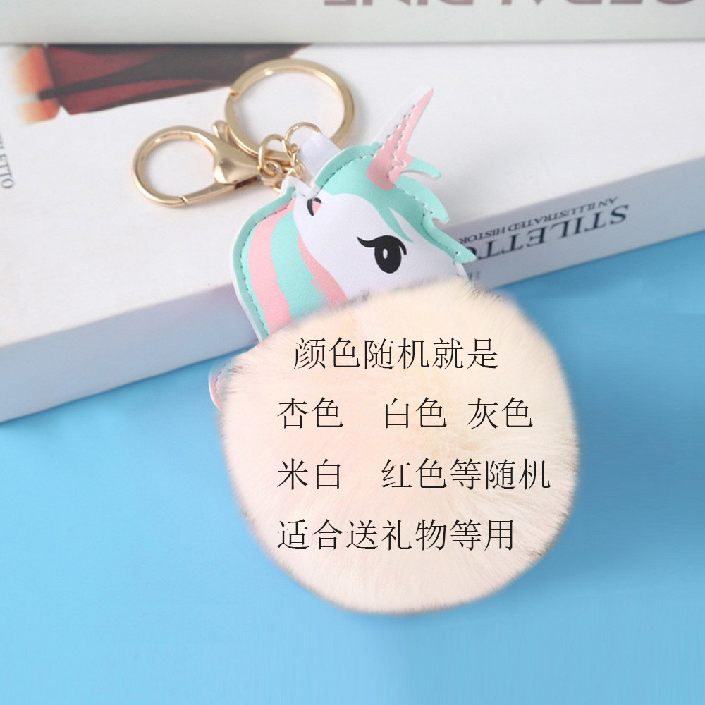 地摊货源PU彩色独角兽毛球钥匙扣 可爱包包吊饰仿獭兔毛书包挂件