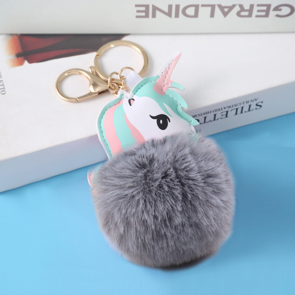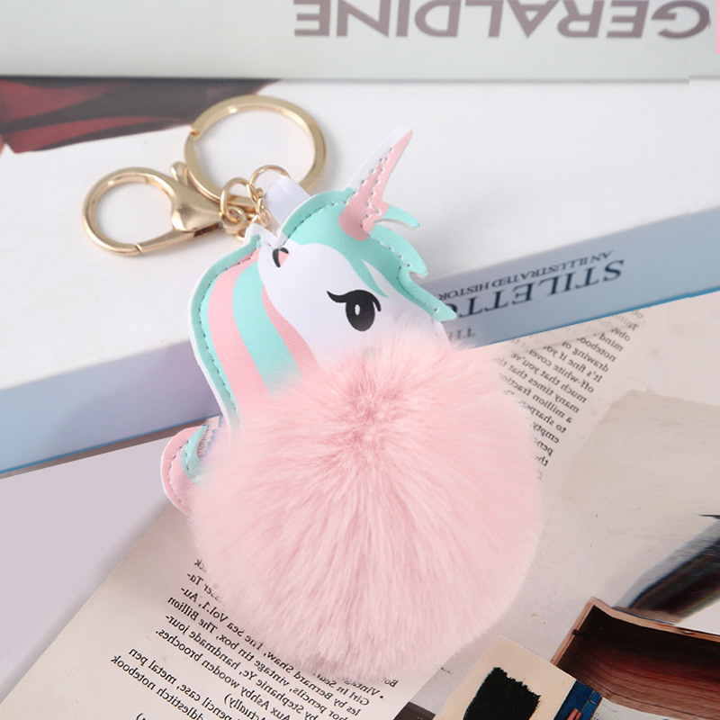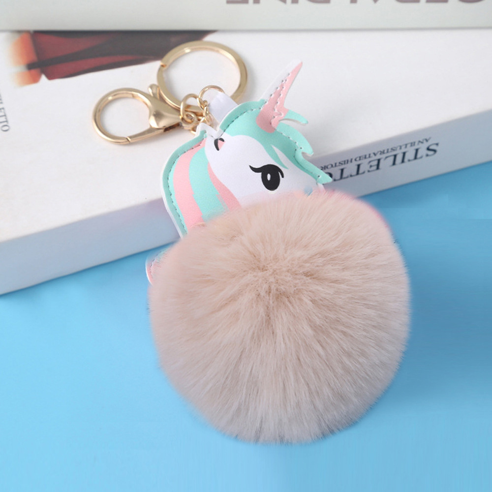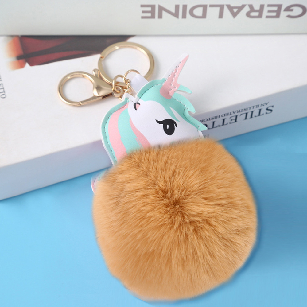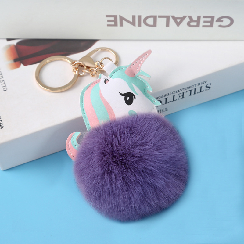 地摊货源PU彩色独角兽毛球钥匙扣 可爱包包吊饰仿獭兔毛书包挂件