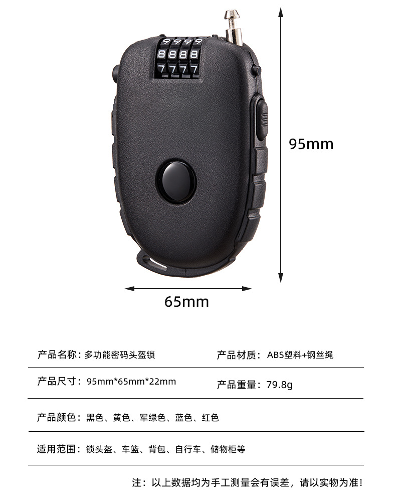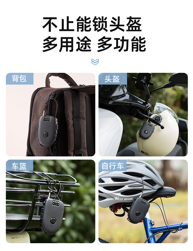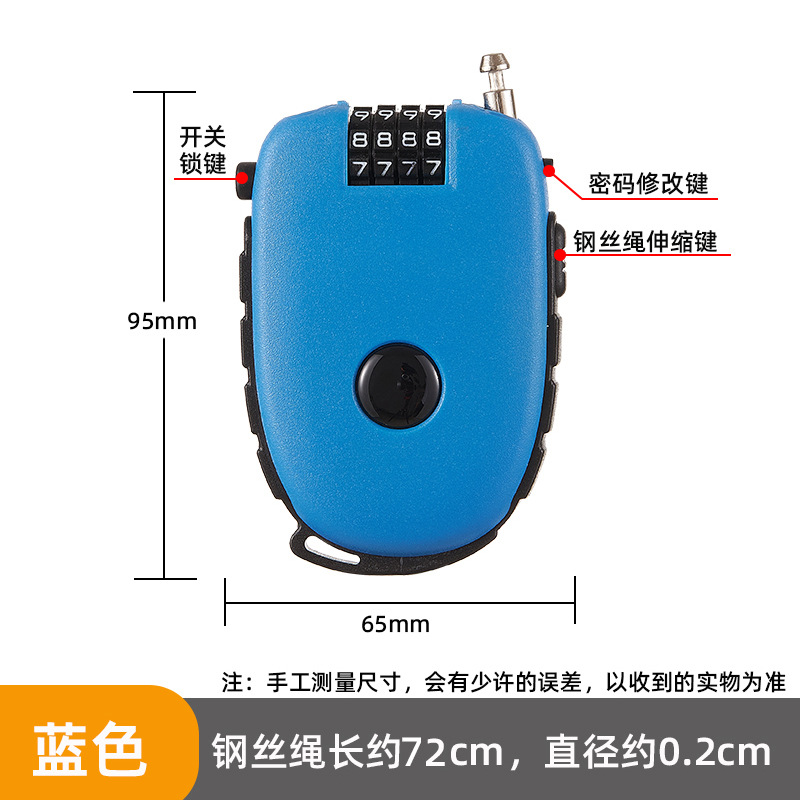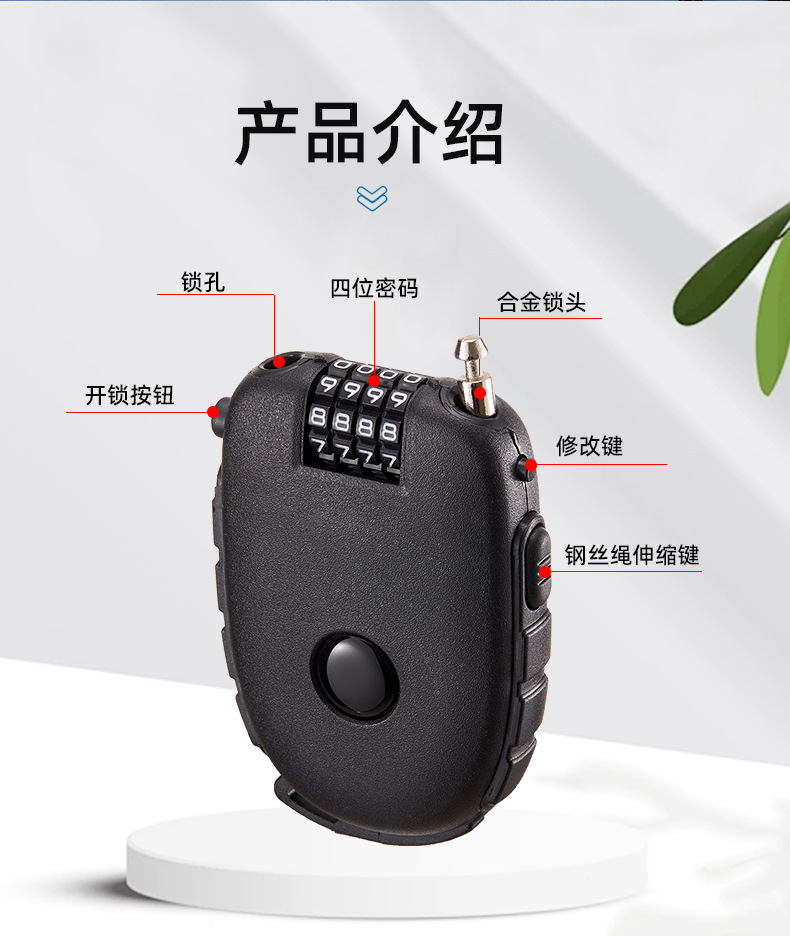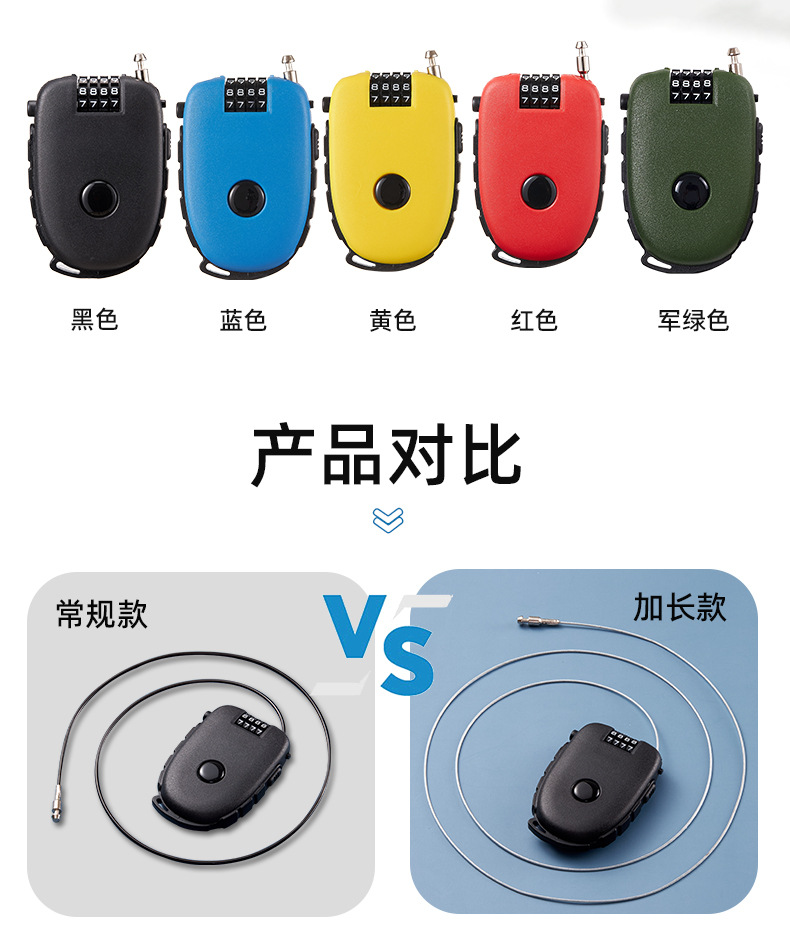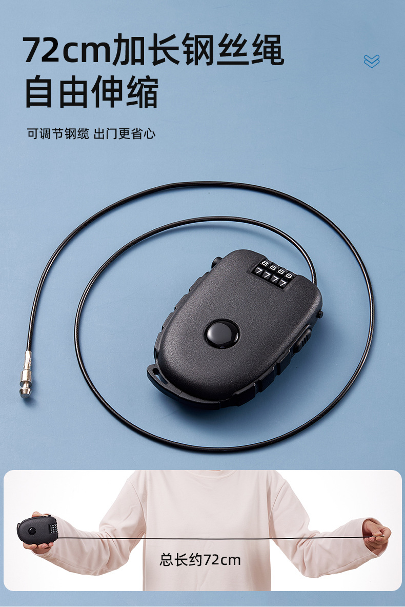 便携钢丝锁 通牛可拉伸钢丝头盔锁婴儿车锁随身宝如意钢丝便携锁