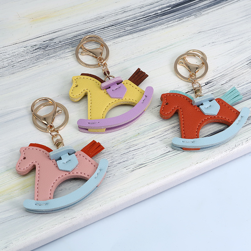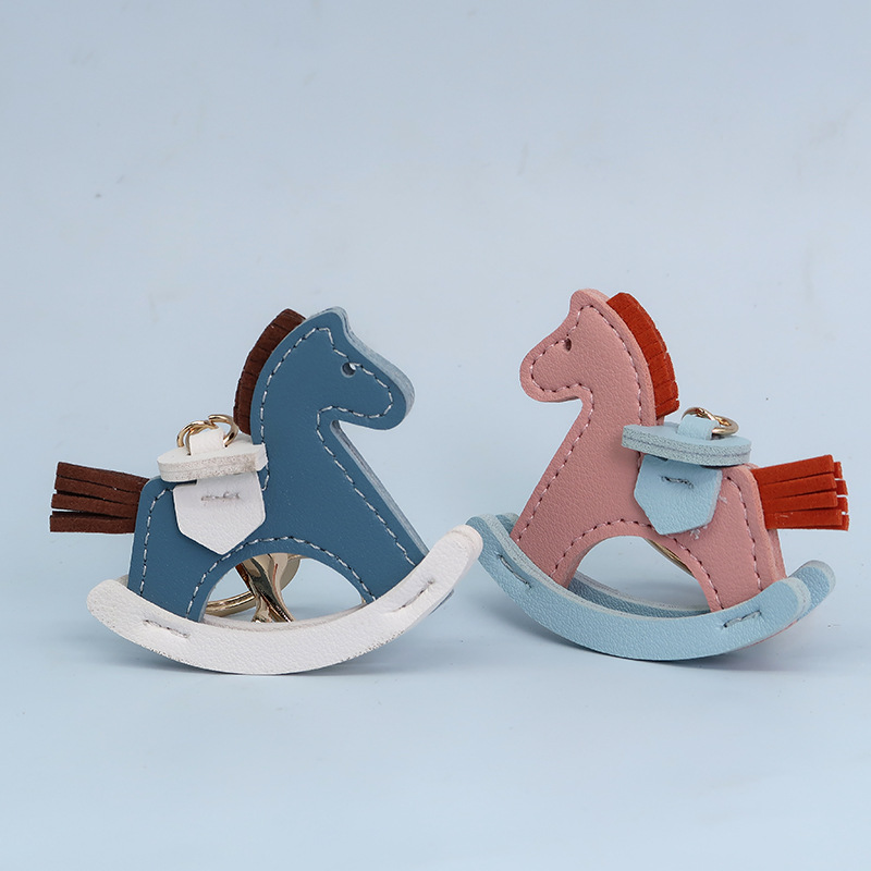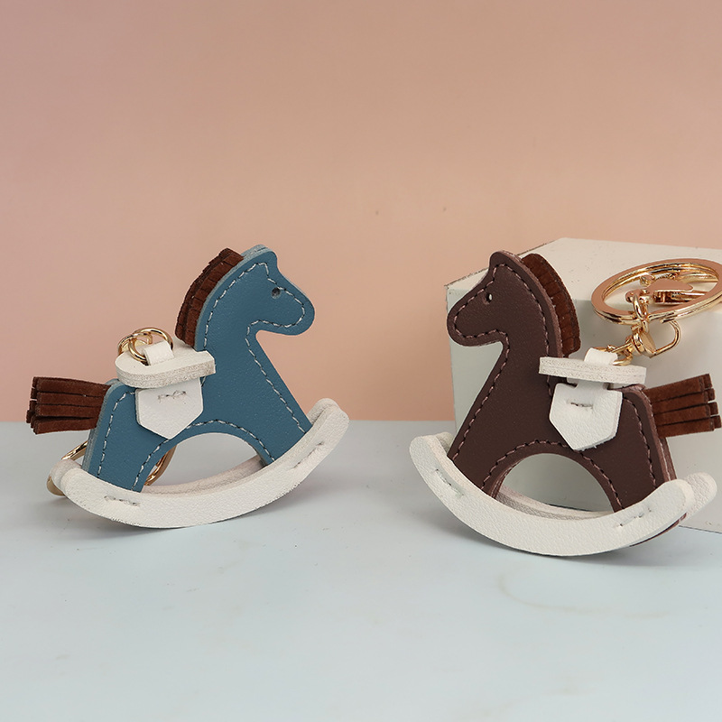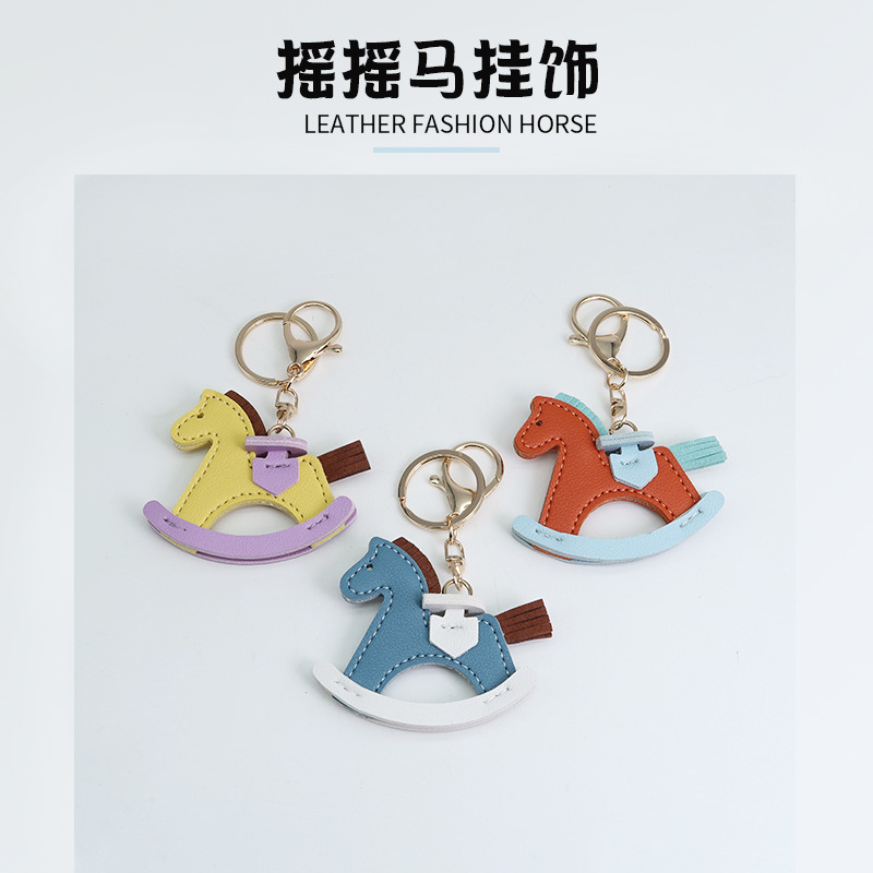 新款时尚摇摇小木马挂件手工创意 可爱皮质包包挂饰个性车载挂件