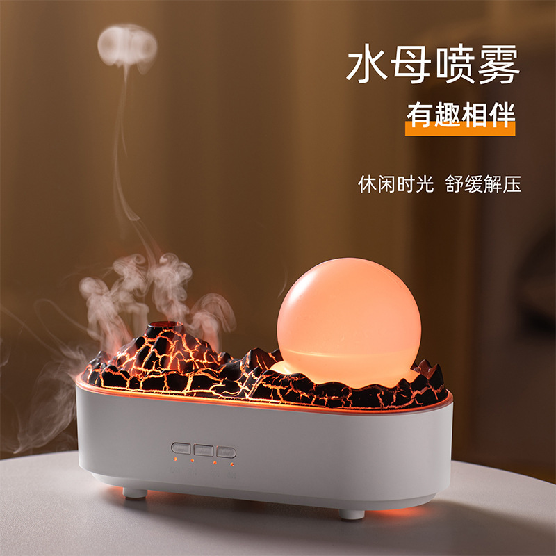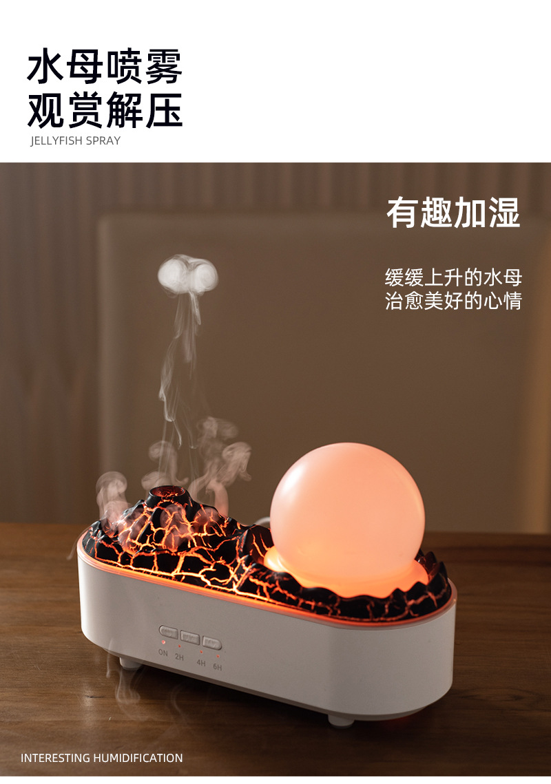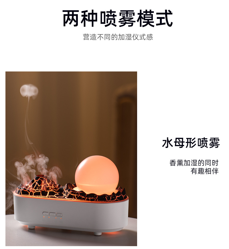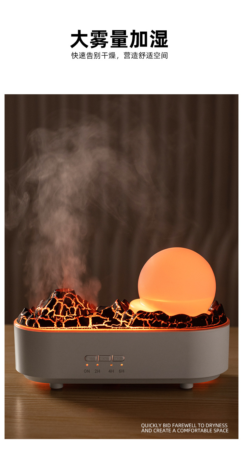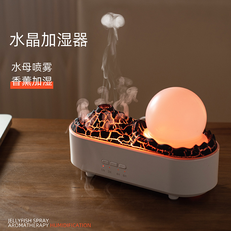 跨境新品火山水晶加湿器家用大雾量香薰机桌面创意摆件卧室小夜灯