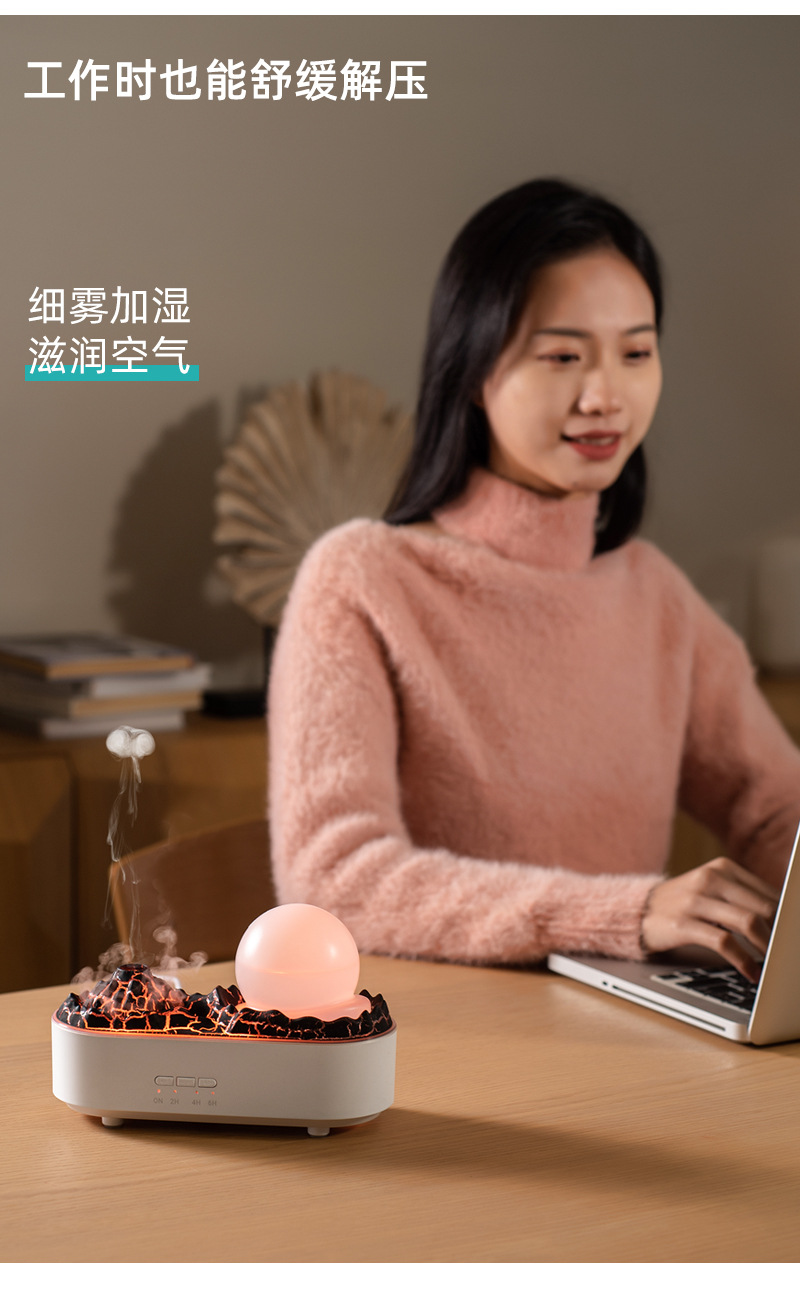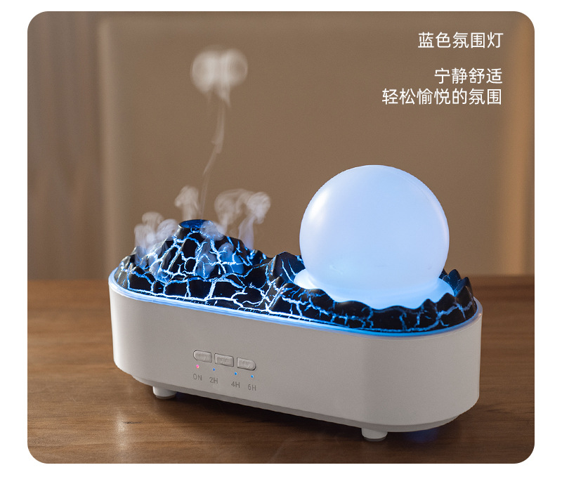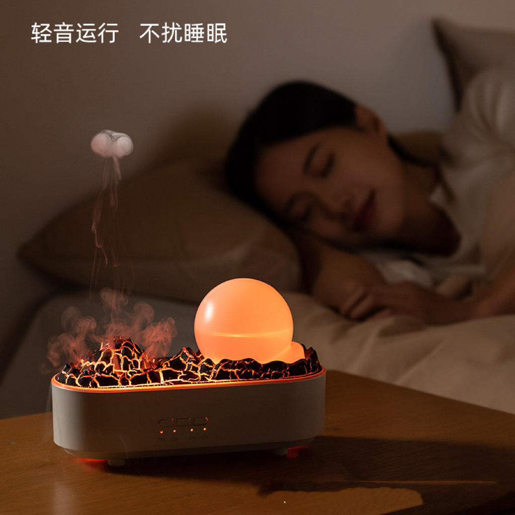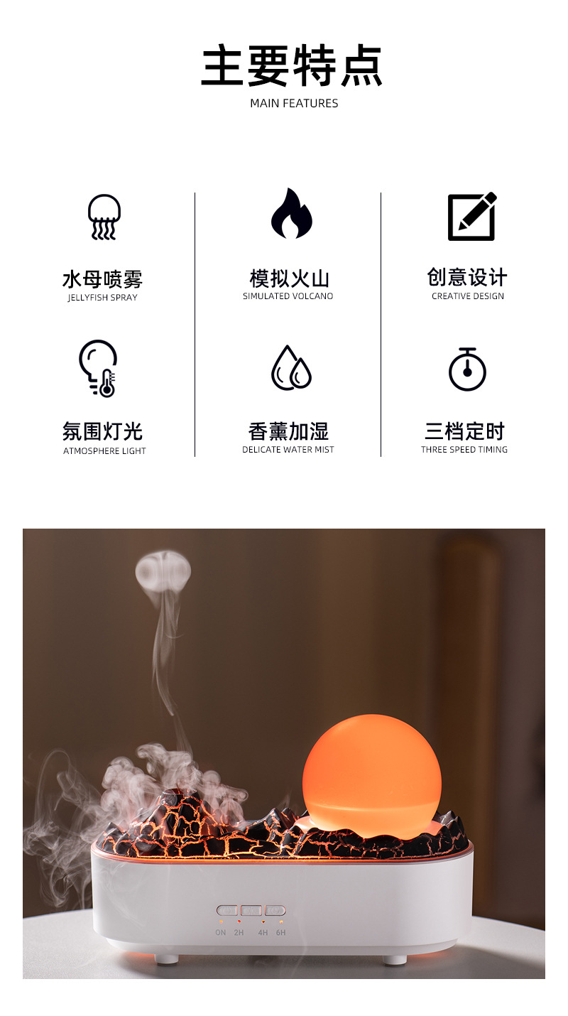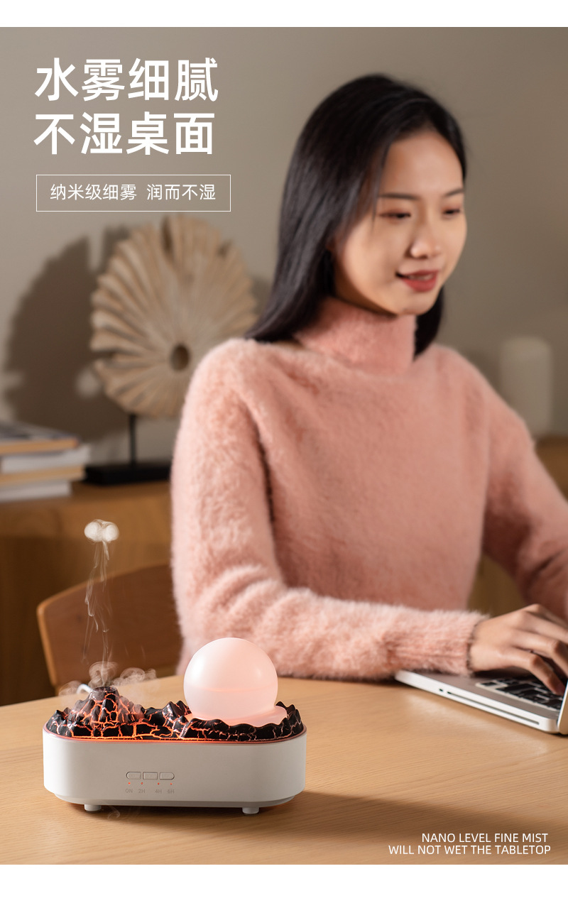 跨境新品火山水晶加湿器家用大雾量香薰机桌面创意摆件卧室小夜灯