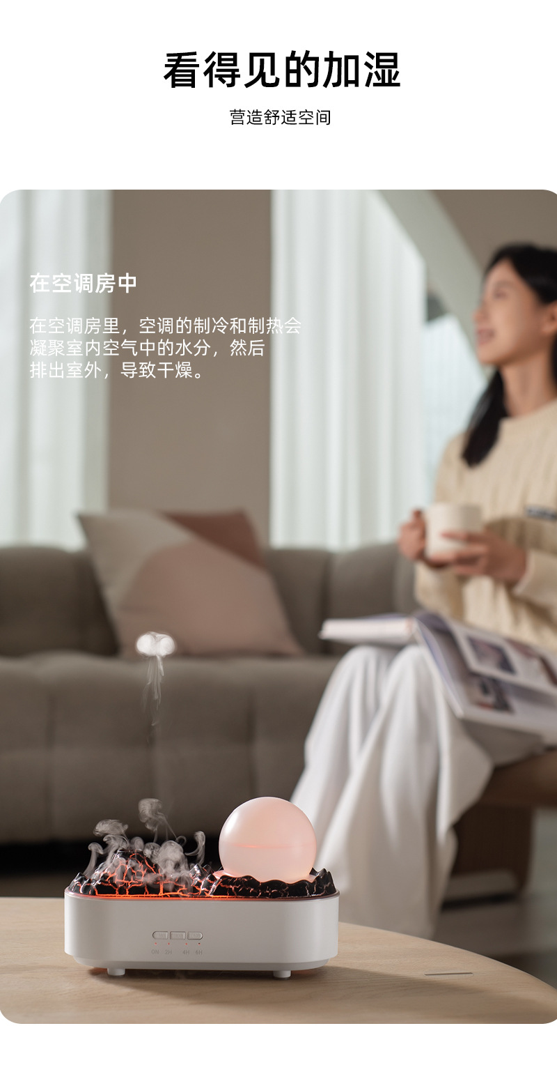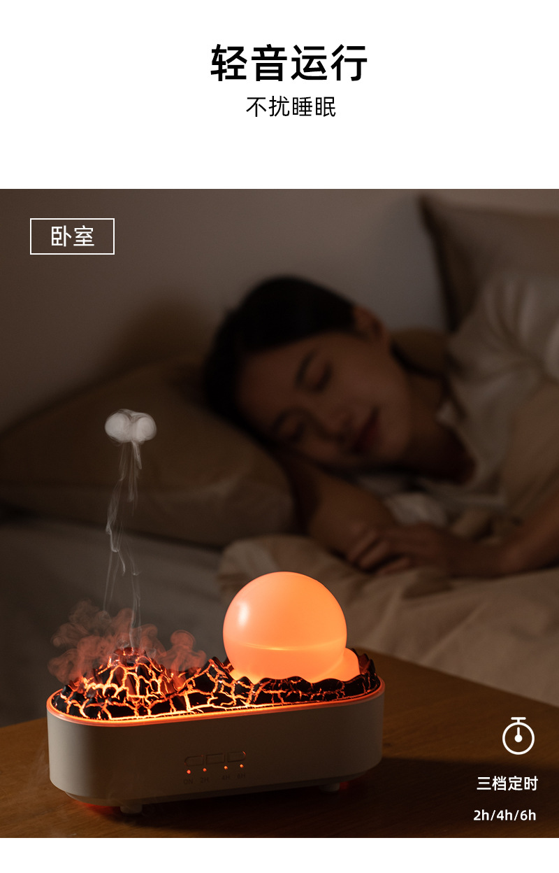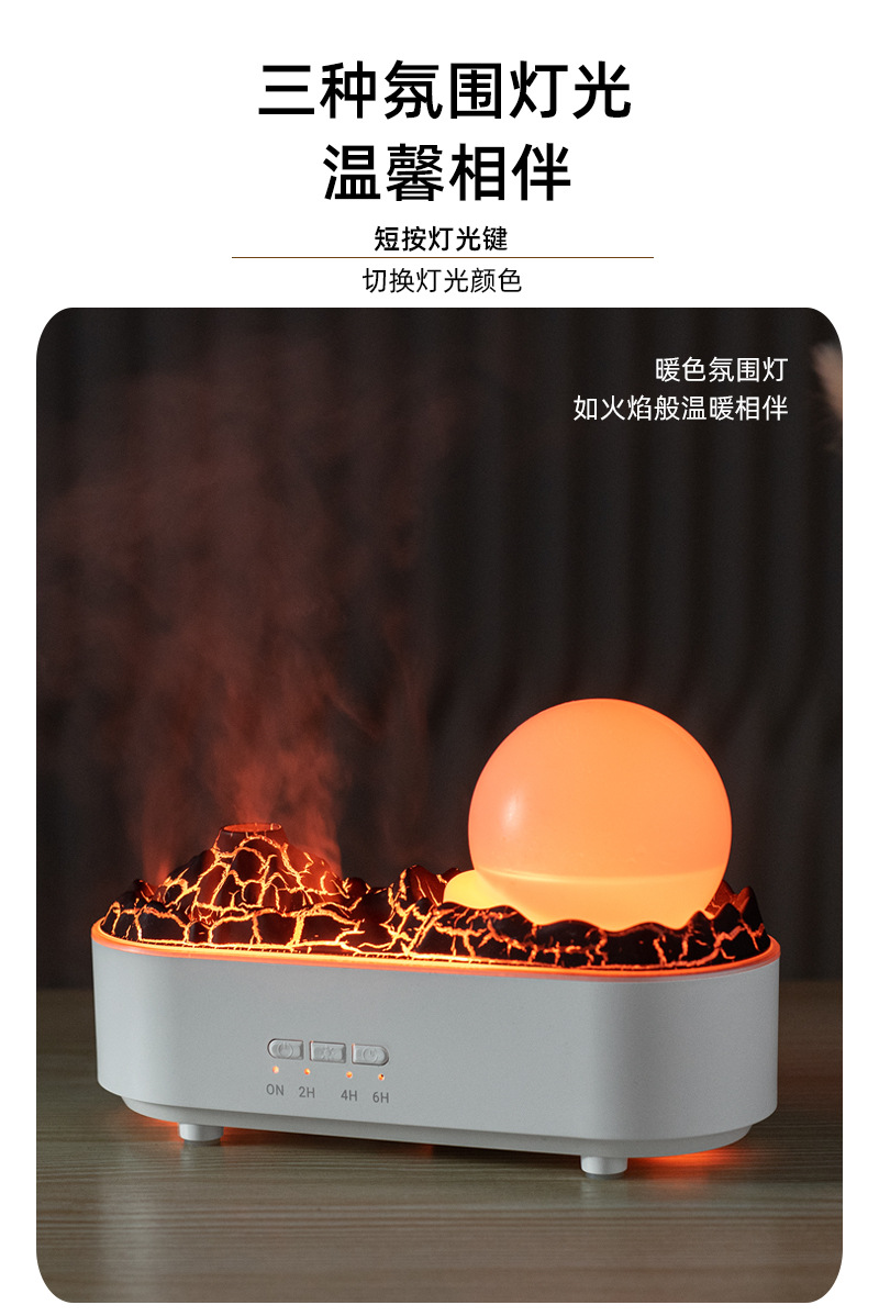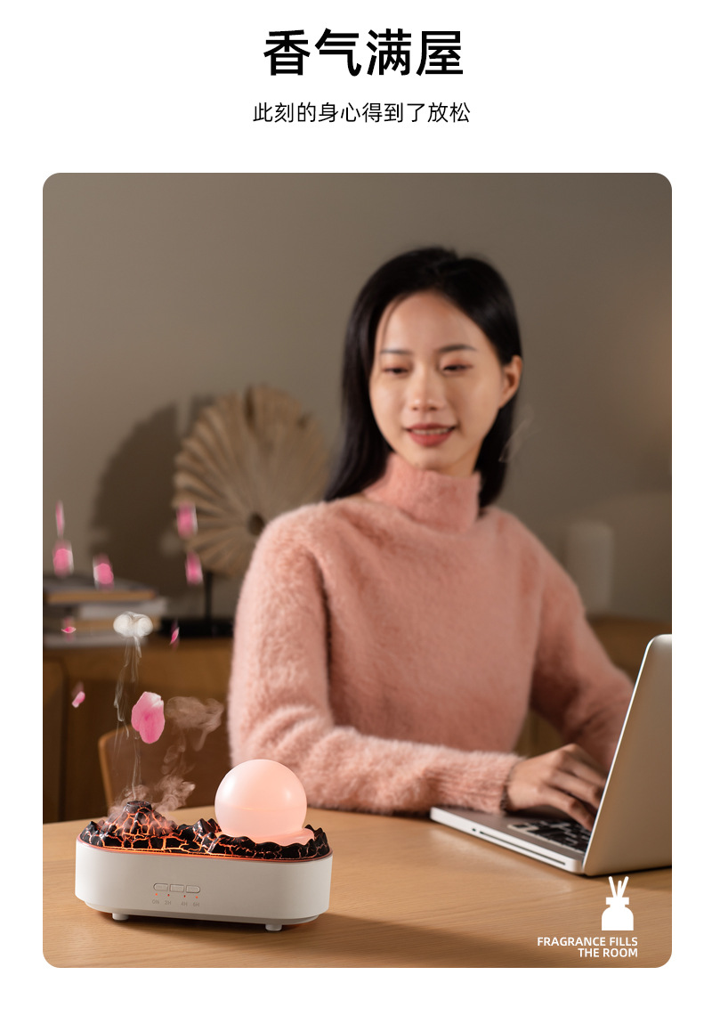 跨境新品火山水晶加湿器家用大雾量香薰机桌面创意摆件卧室小夜灯