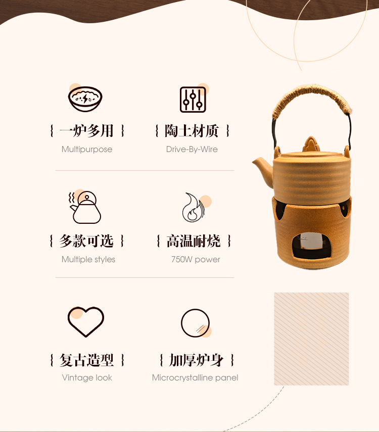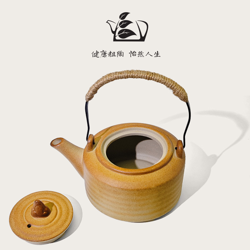粗陶泡茶壶耐烧提梁壶户外露营可明火蜡烛电陶炉温茶泡茶套装手作