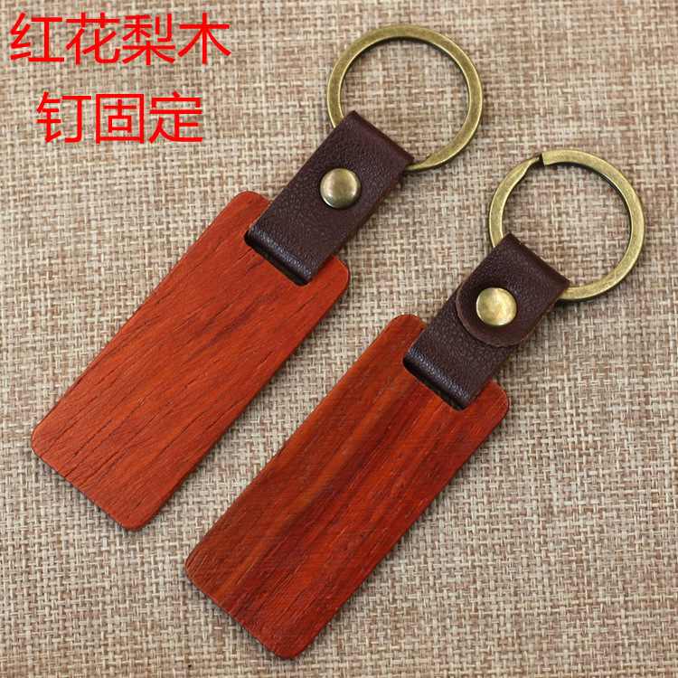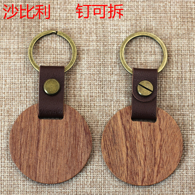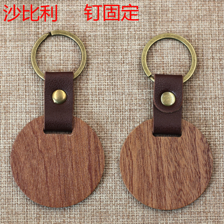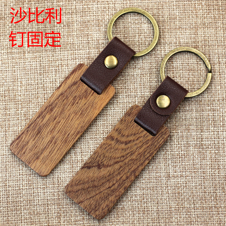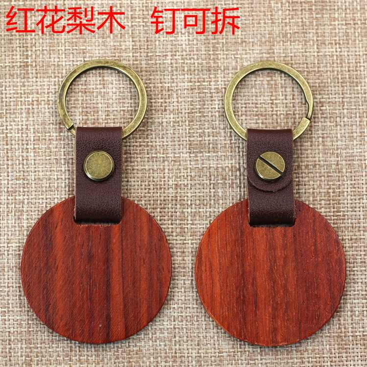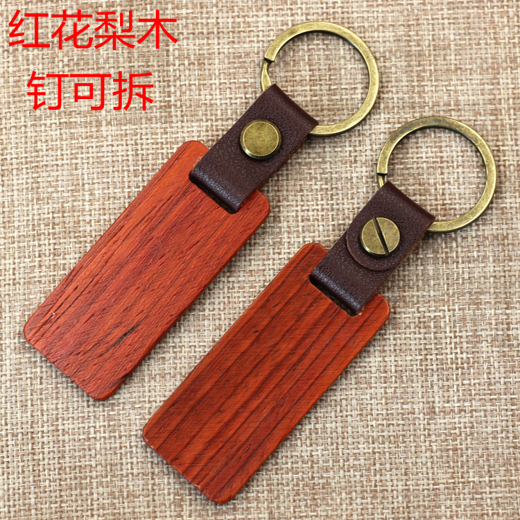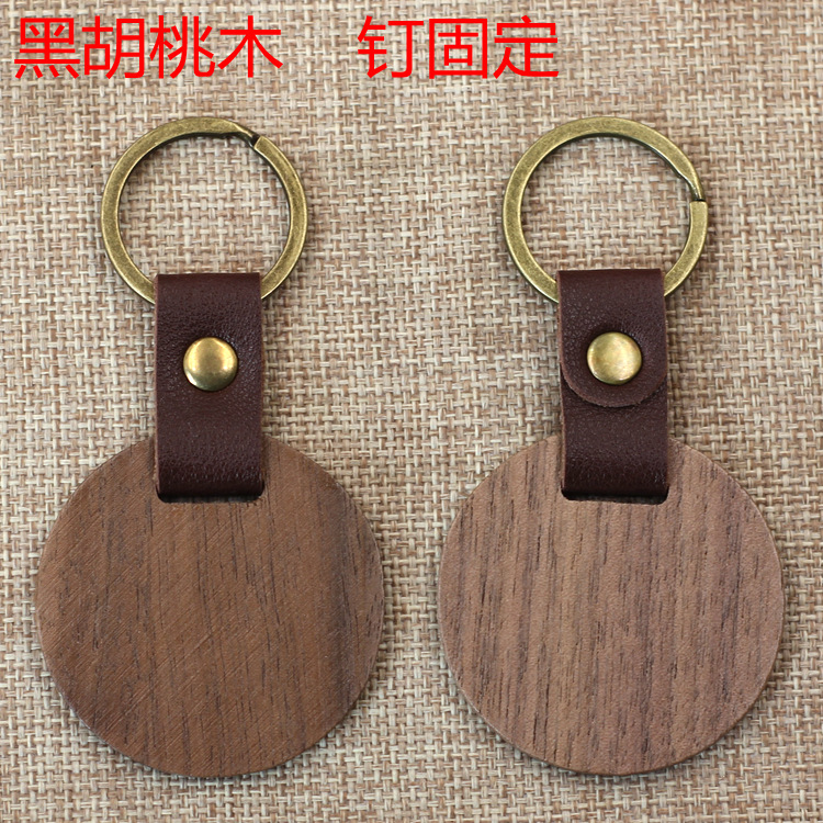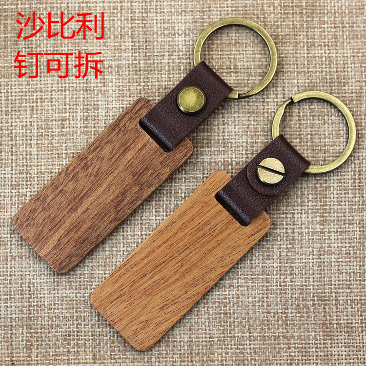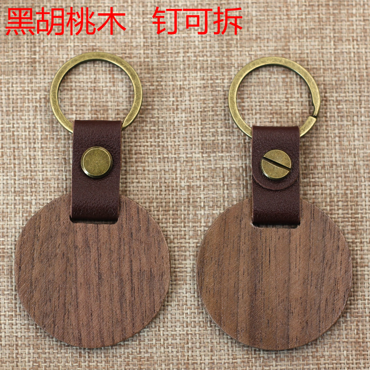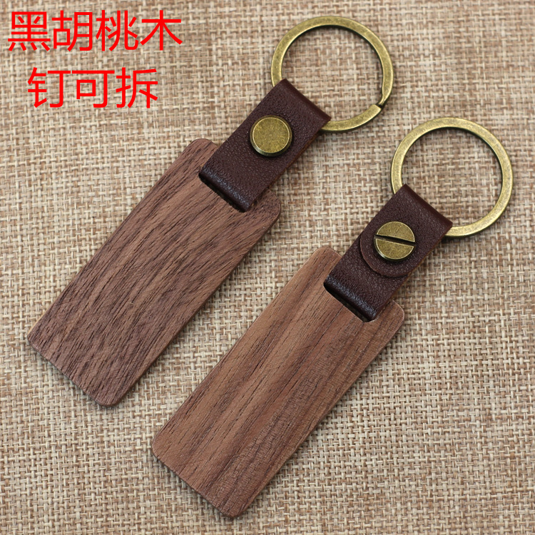 现货皮质榉木黑胡桃木木质钥匙扣雕刻logo原木花梨木头钥匙扣挂件