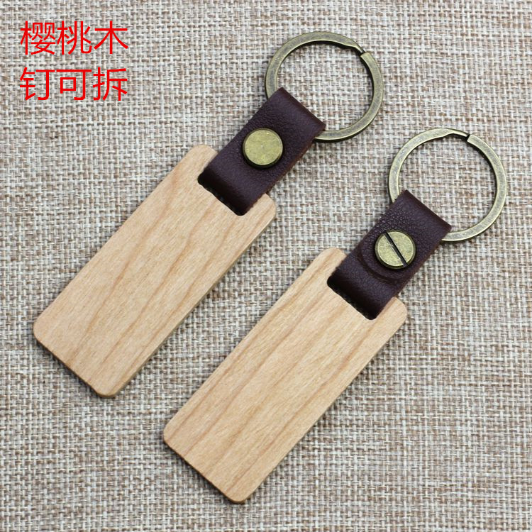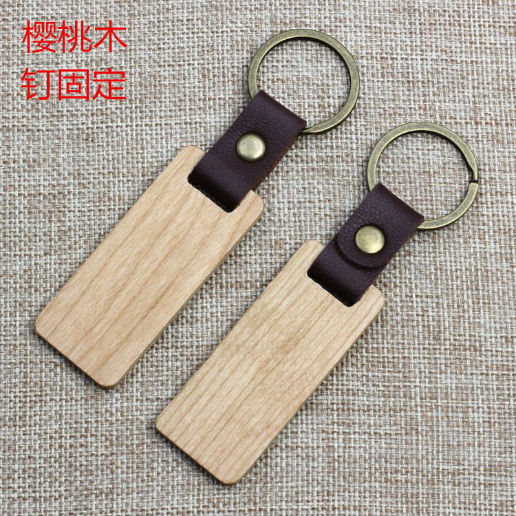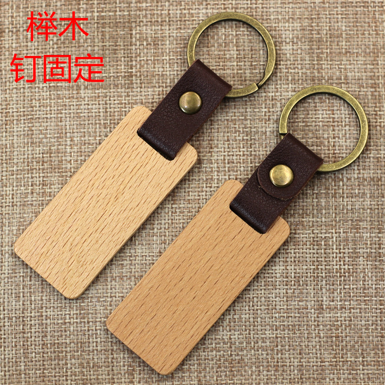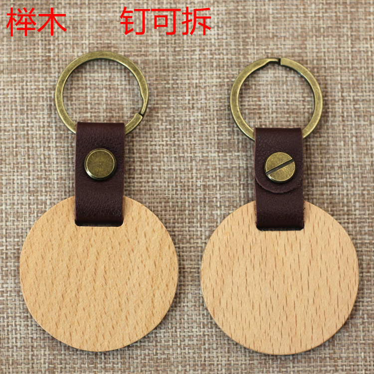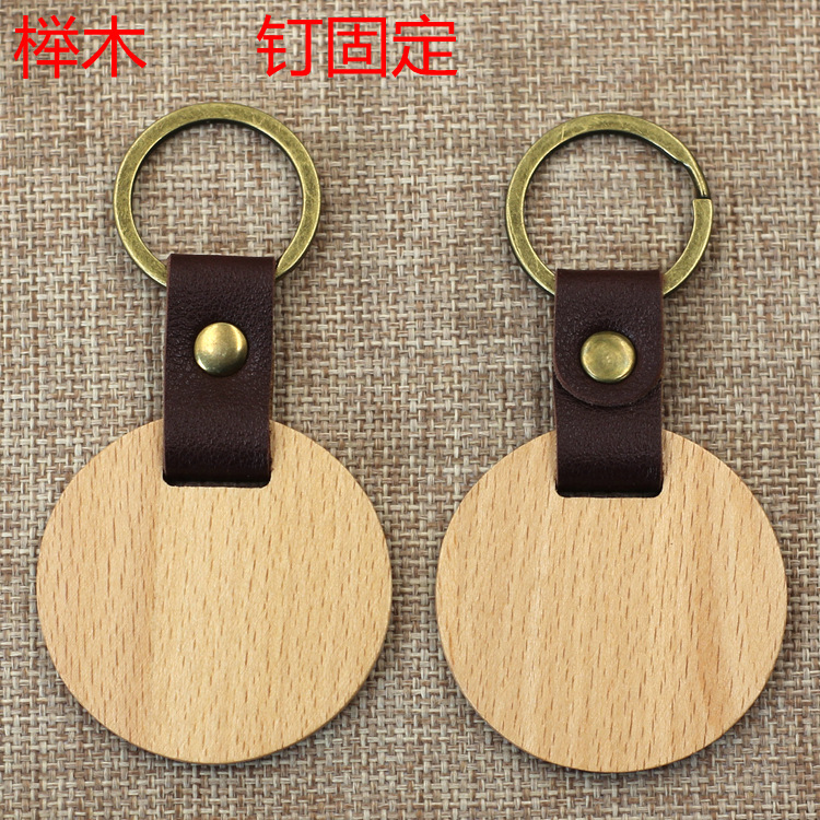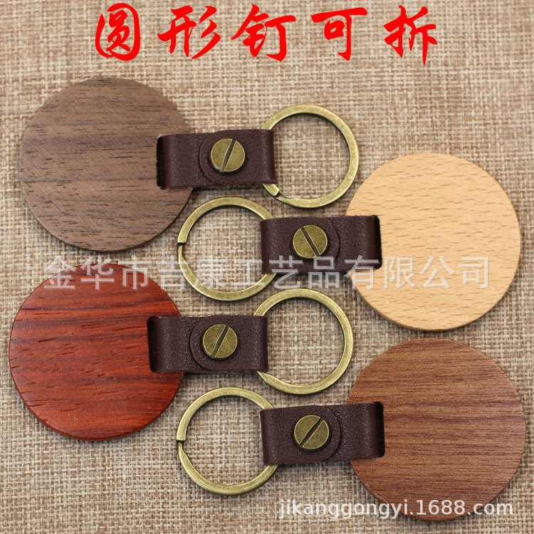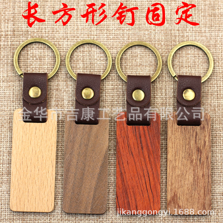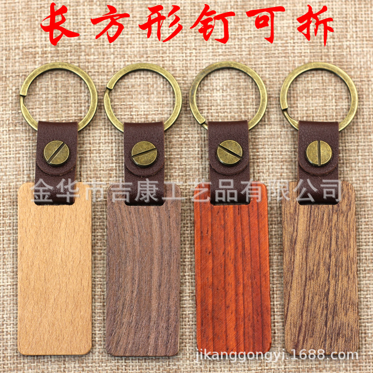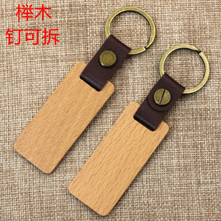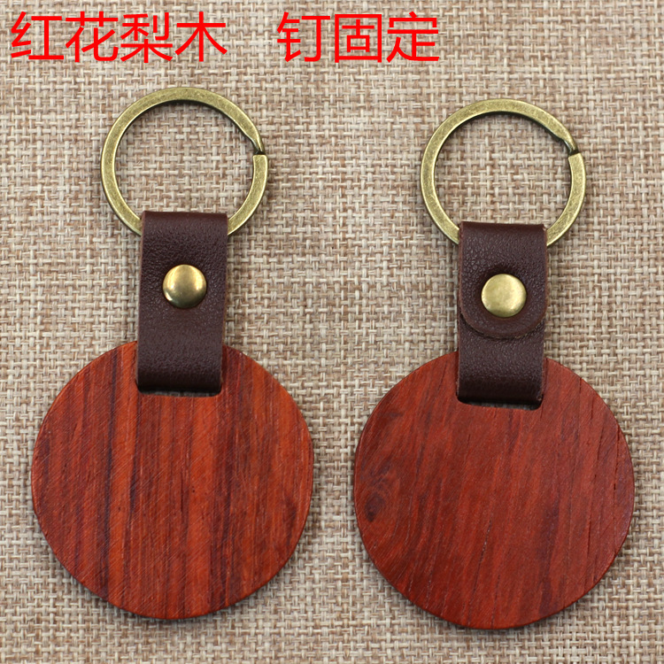 现货皮质榉木黑胡桃木木质钥匙扣雕刻logo原木花梨木头钥匙扣挂件