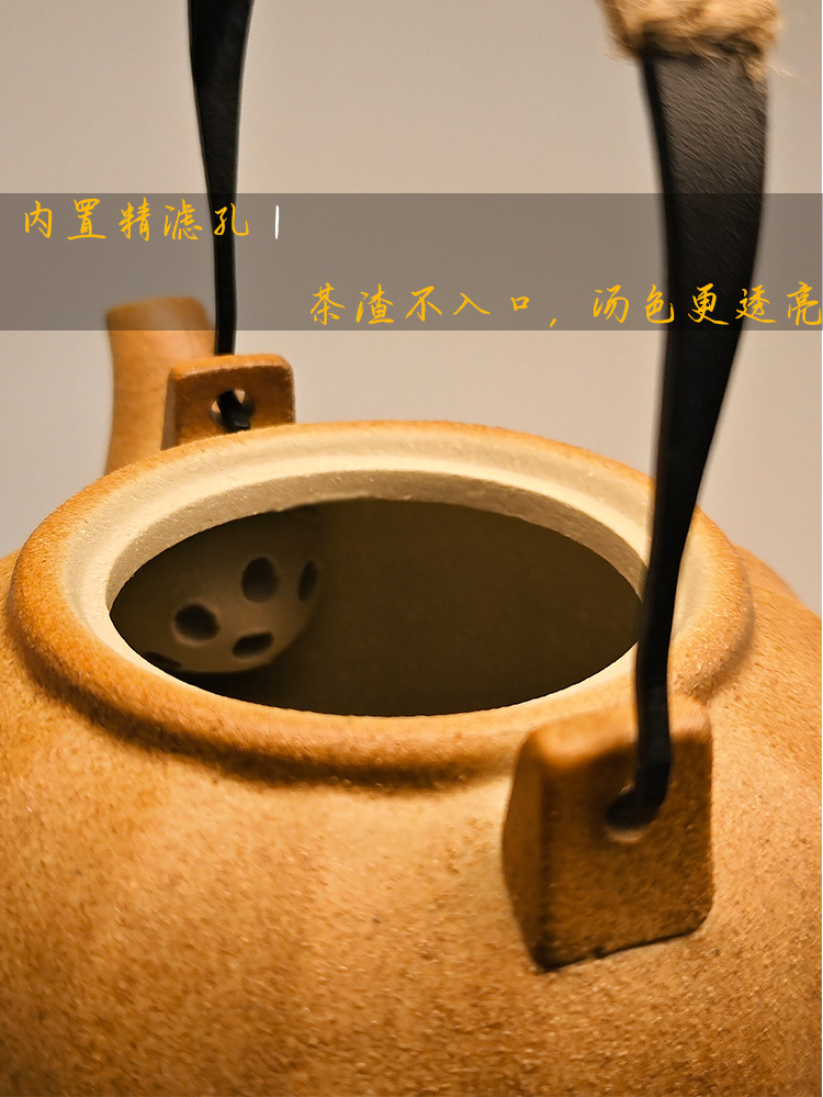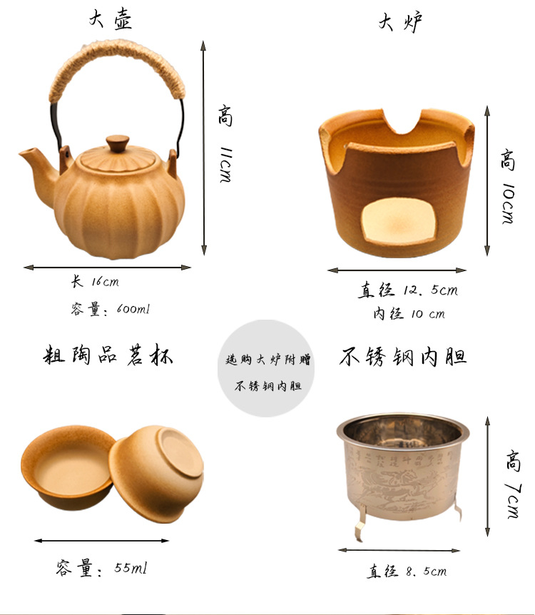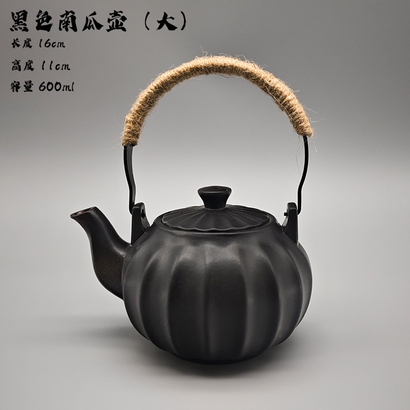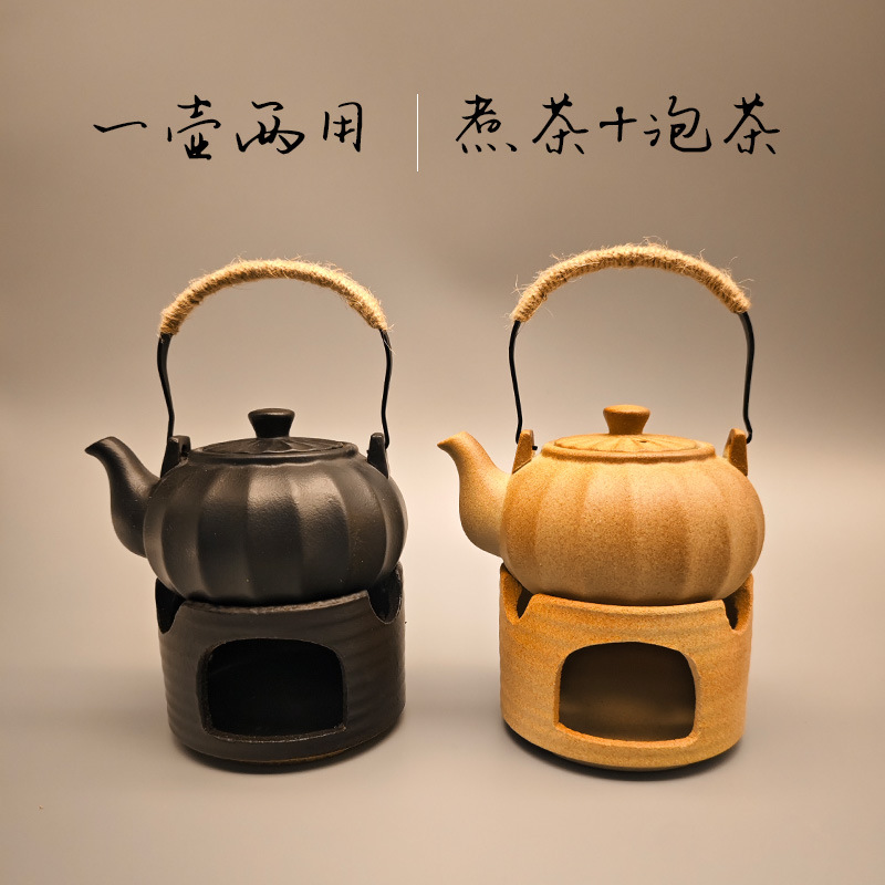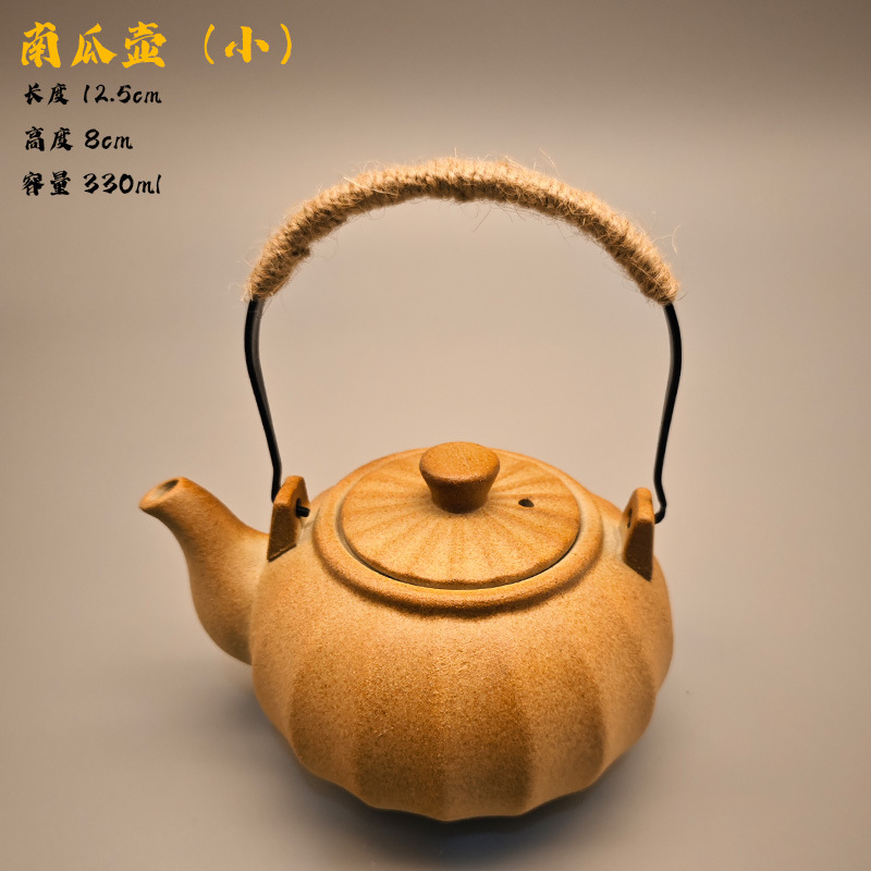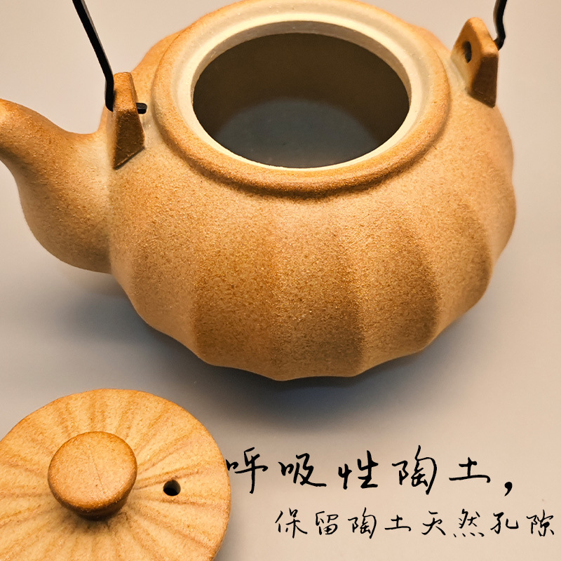 古风南瓜提梁壶粗陶茶具套装陶瓷功夫茶具简约办公泡茶壶茶杯柴烧
